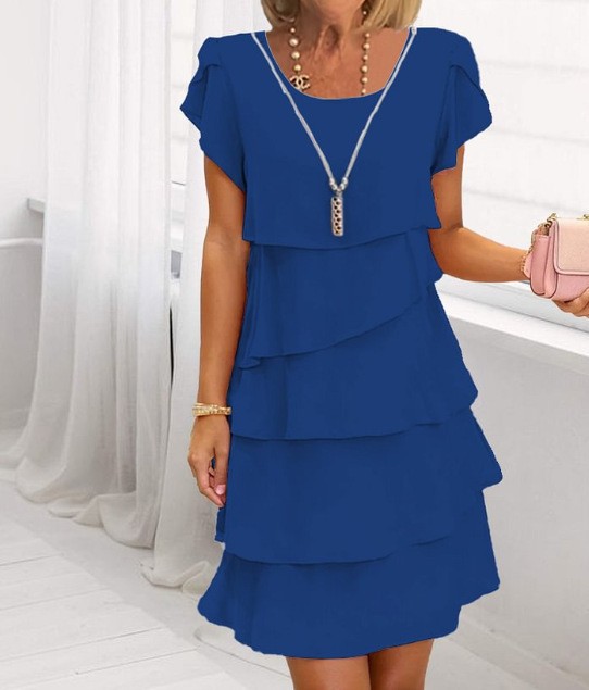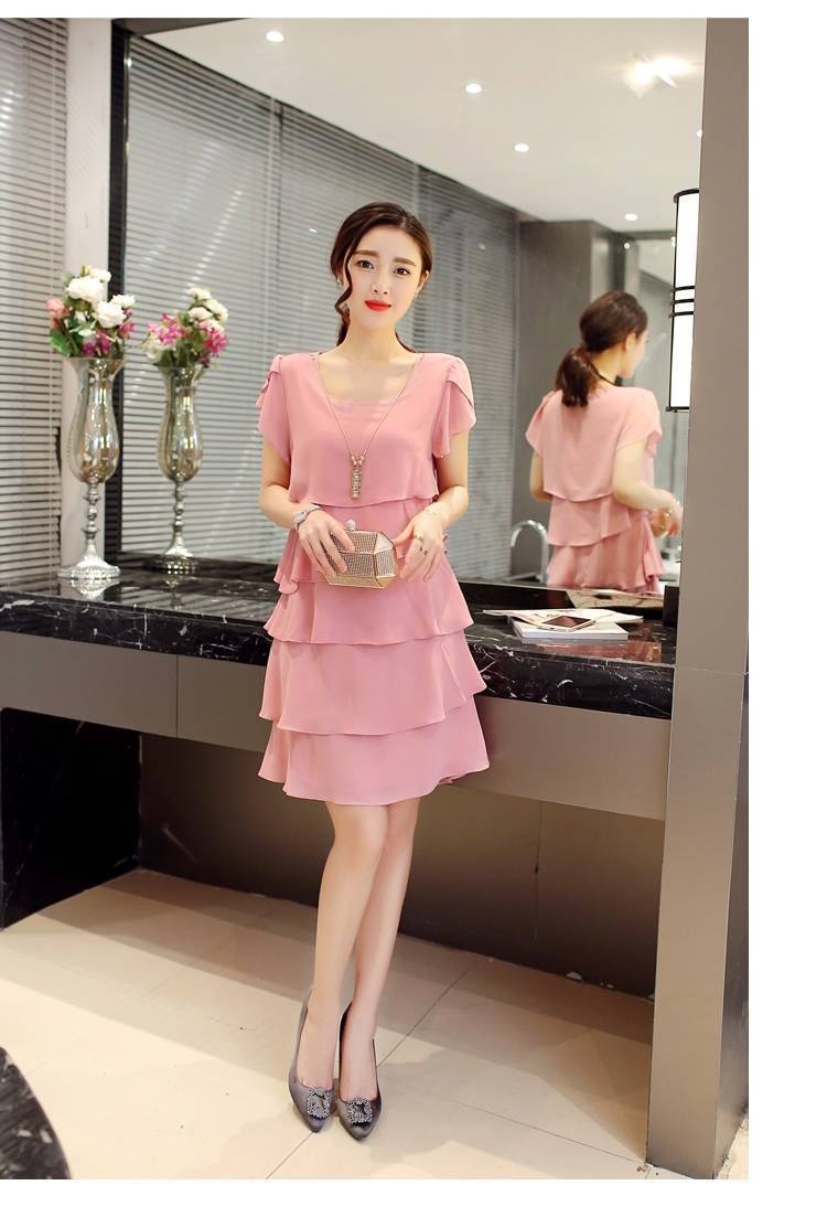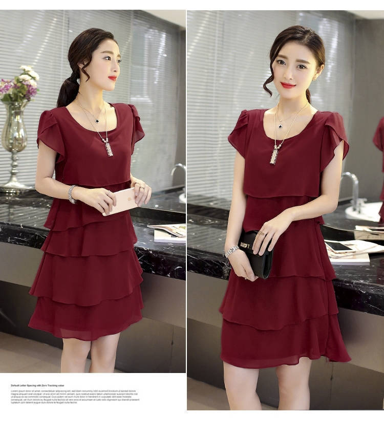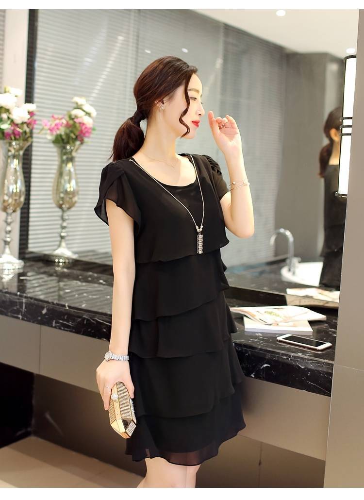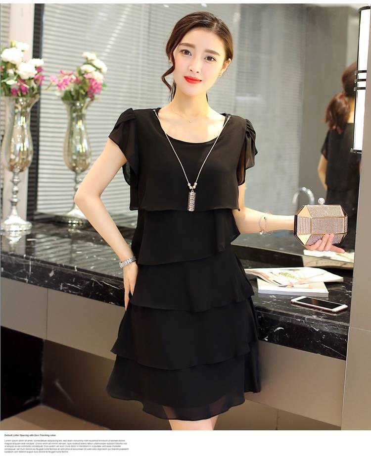 쉬폰 셔츠 원피스 여성의 2025 여름 새로운 여성복 디자인 센스 느슨한 배 커버 우아한 짧은 소매 케이크 스커트스토어 가기