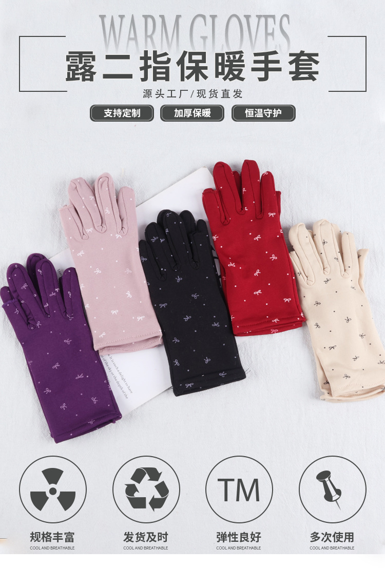 가을 겨울 방한 장갑, 벨벳 안감으로 따뜻함 유지, 두 손가락 노출, 내구성, 댄스, 작업, 내마모성, 사이클링, 신지 단모 장갑