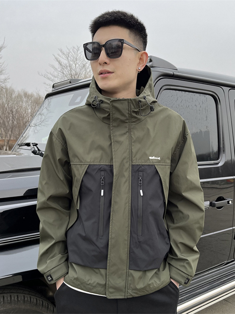 2024 새로운 봄과 가을 후드 재킷 남자의 명암 컬러 스티칭 카키 작업복 재킷 트렌디 브랜드 올매치 충전 재킷스토어 가기