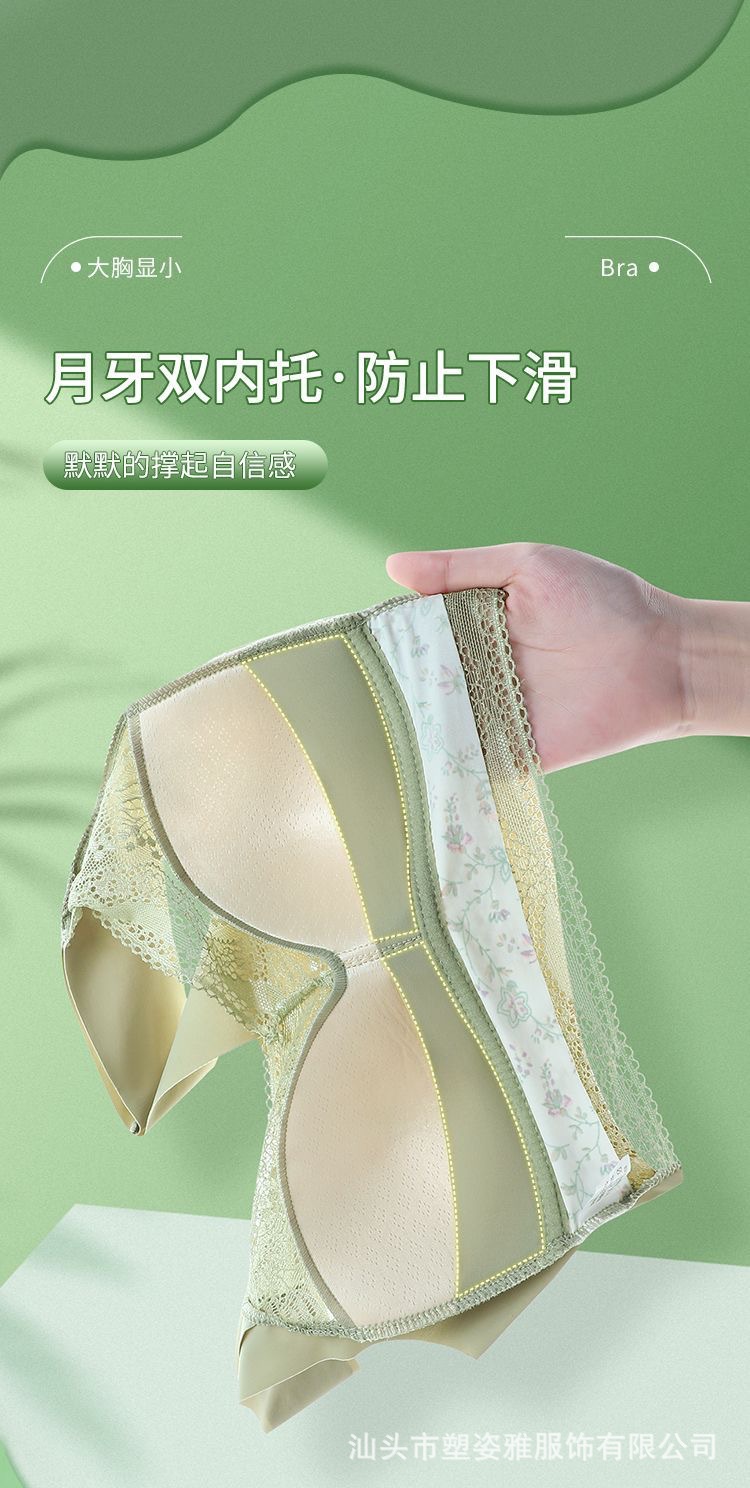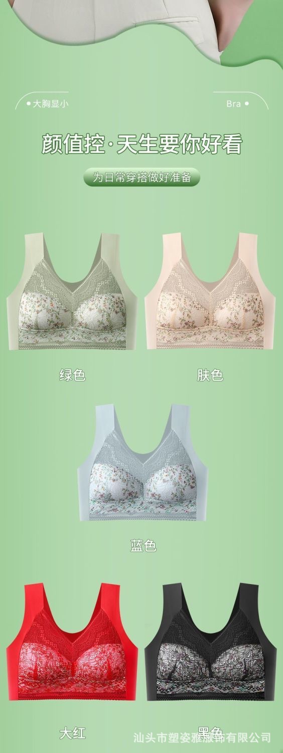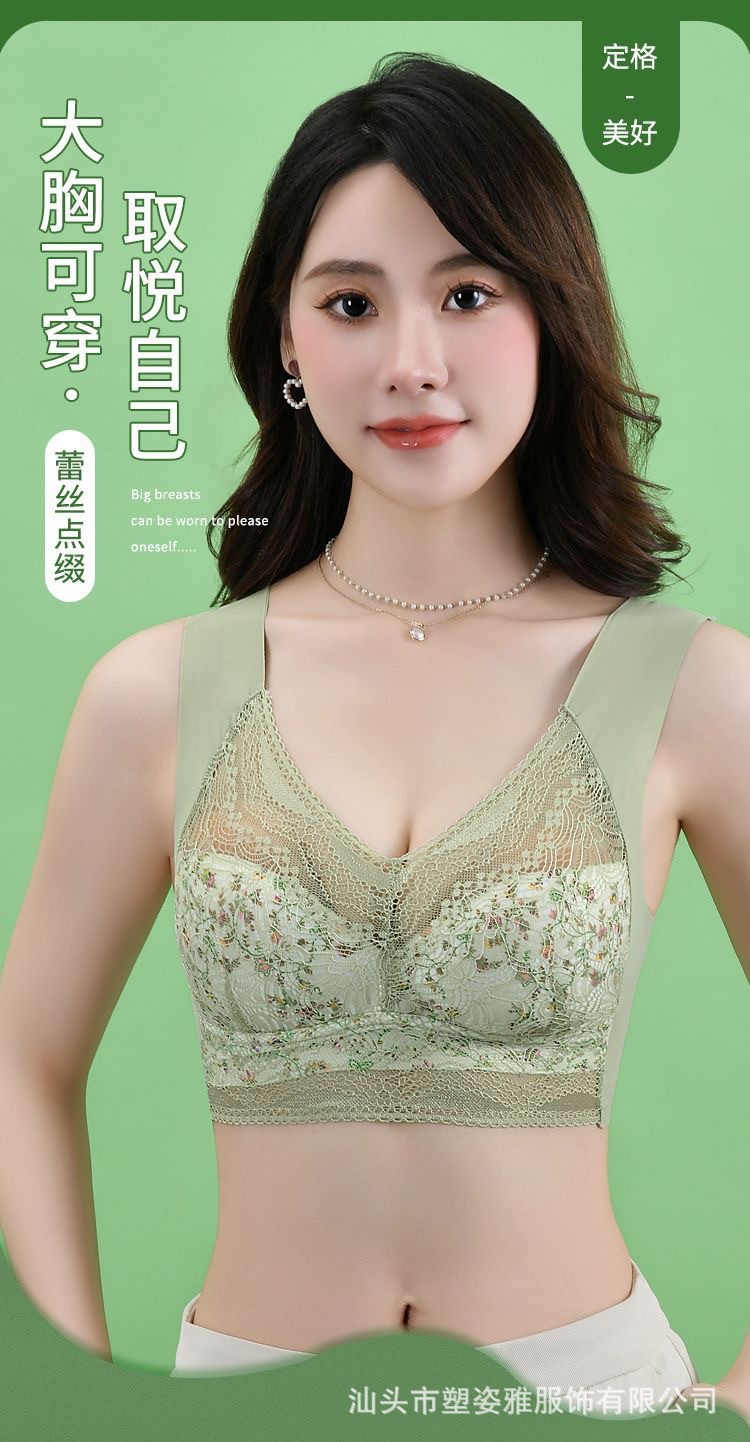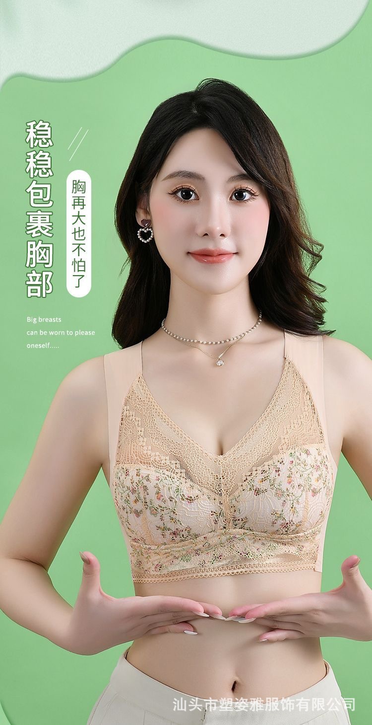 Traceless Ice Silk Floral Beautiful Back Bra 플러스 사이즈 200 진 원피스 스트랩리스 속옷 얇은 큰 가슴 작은 브래지어