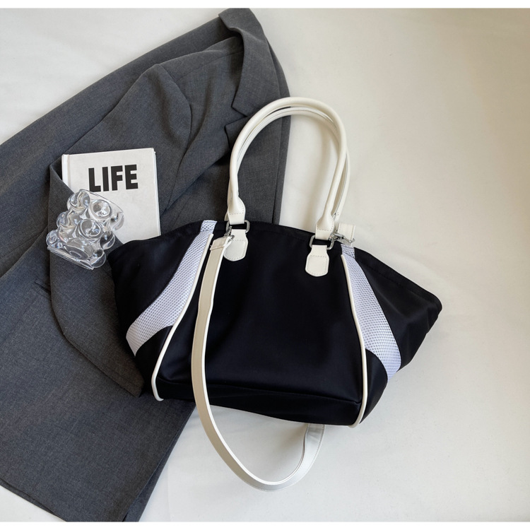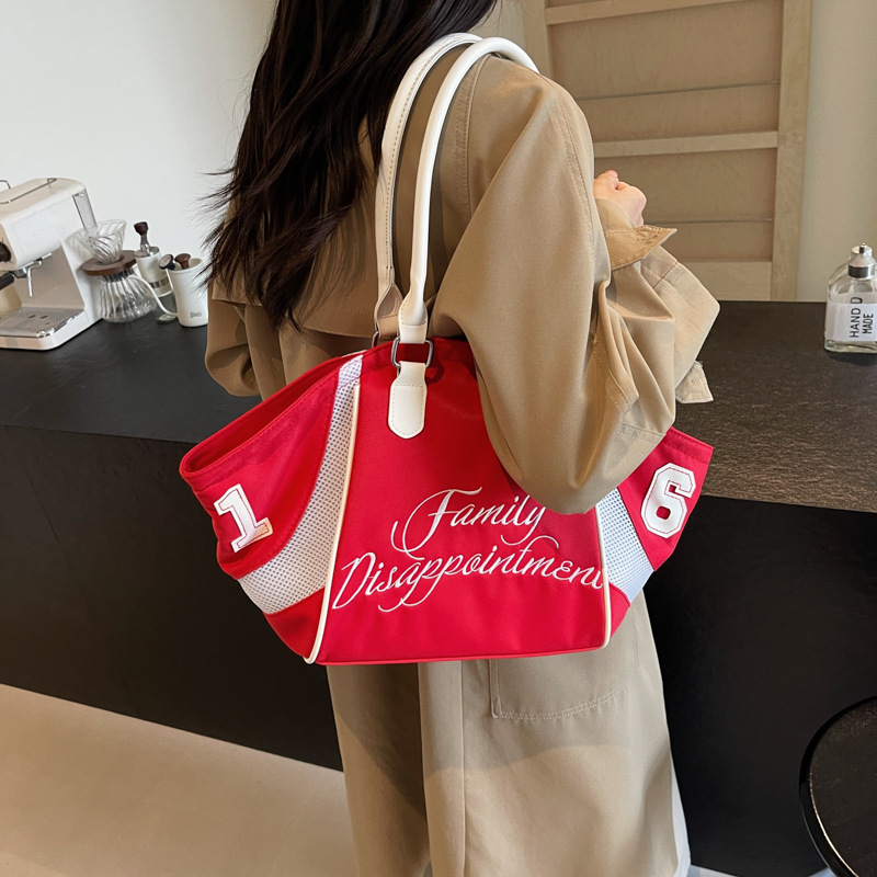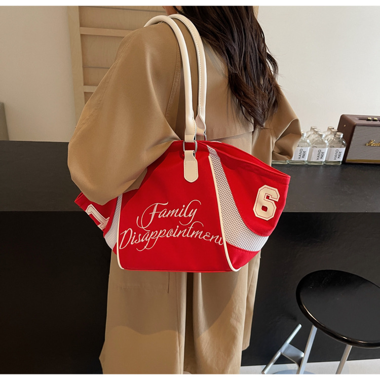 한국 틈새 대용량 편지 자수 레드 캔버스 토트 백 통근 어깨 캐주얼 언더암 가방 스포츠 스타일