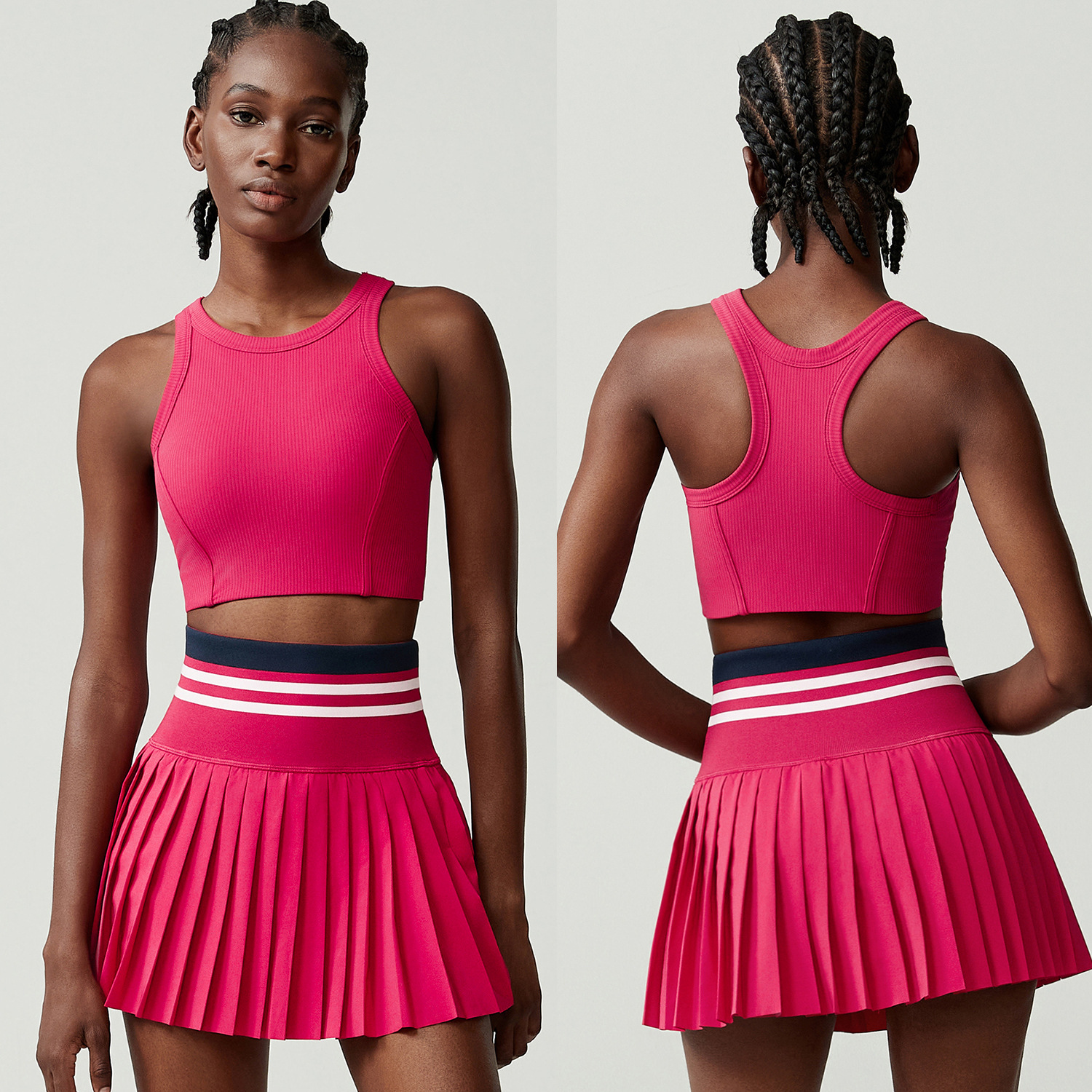 여성용 크로스보더 스포츠 피트니스 요가복 세트, 노출방지, 빠른 건조, 투피스 세트, 배드민턴 및 테니스 의류스토어 가기