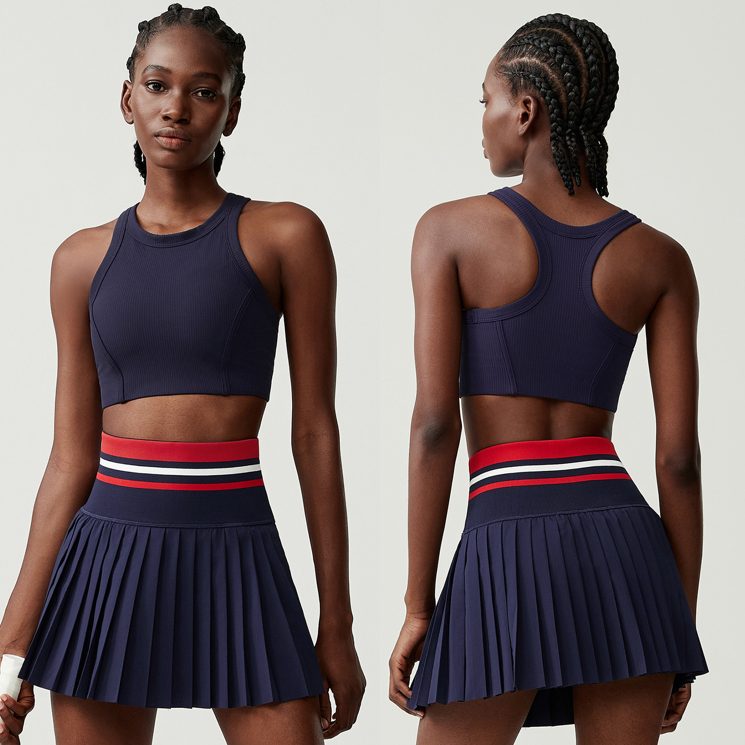 여성용 크로스보더 스포츠 피트니스 요가복 세트, 노출방지, 빠른 건조, 투피스 세트, 배드민턴 및 테니스 의류