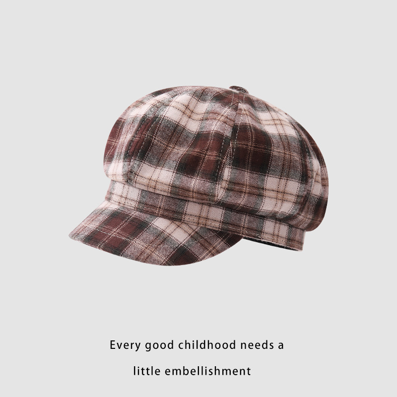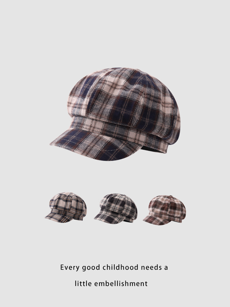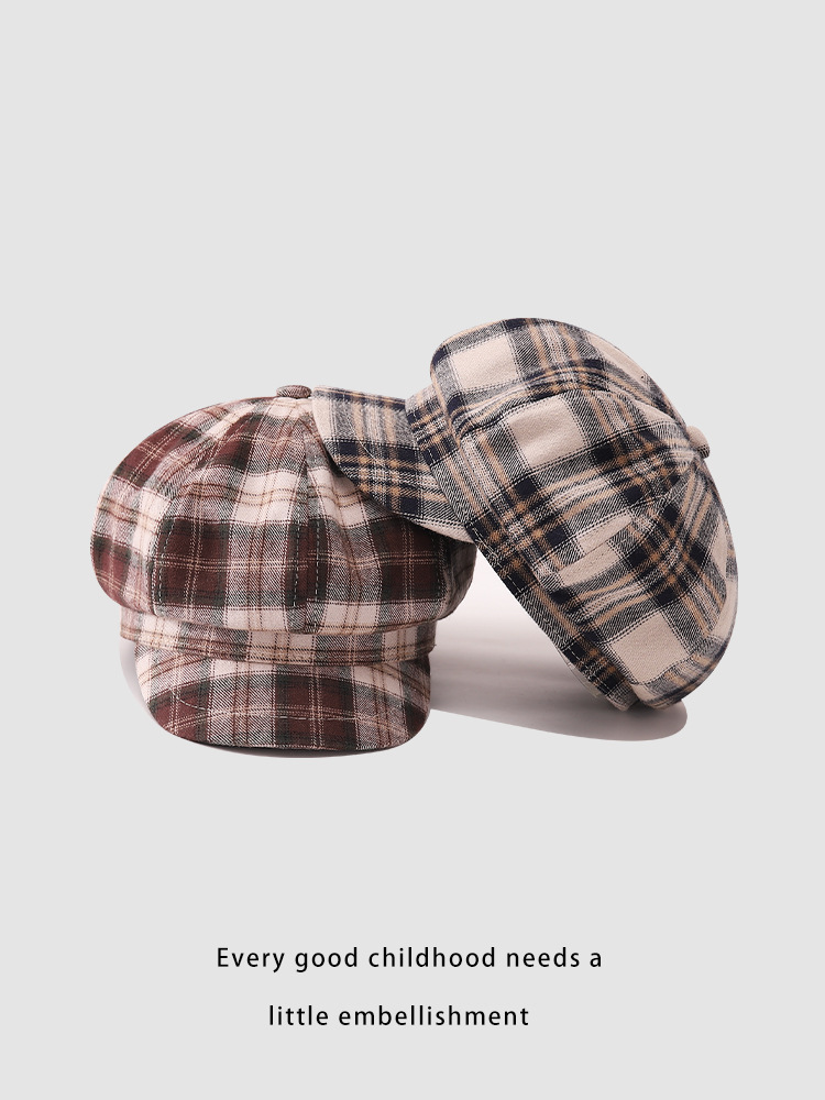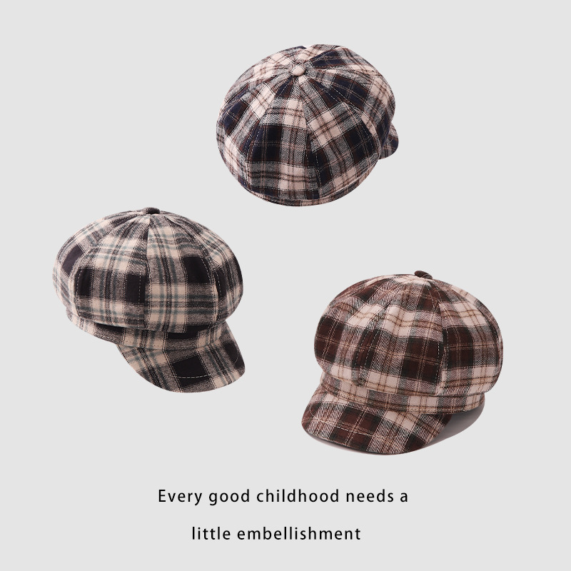 어린이 베레 봄과 가을 한국 스타일 격자 무늬 패션 팔각형 모자 새로운 스타일 일본식 레트로 모자 소년 소녀