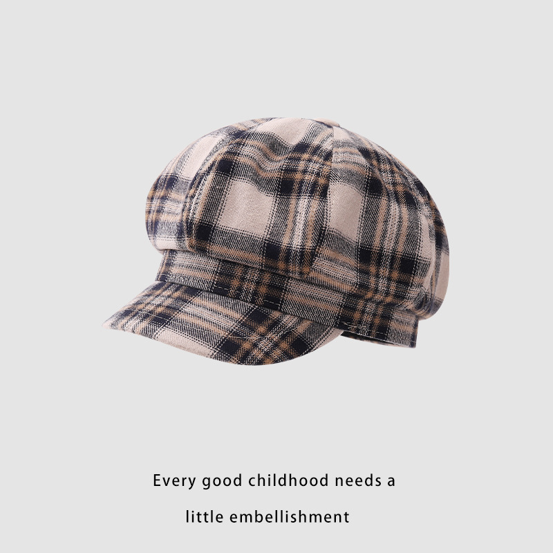 어린이 베레 봄과 가을 한국 스타일 격자 무늬 패션 팔각형 모자 새로운 스타일 일본식 레트로 모자 소년 소녀스토어 가기