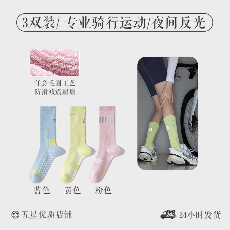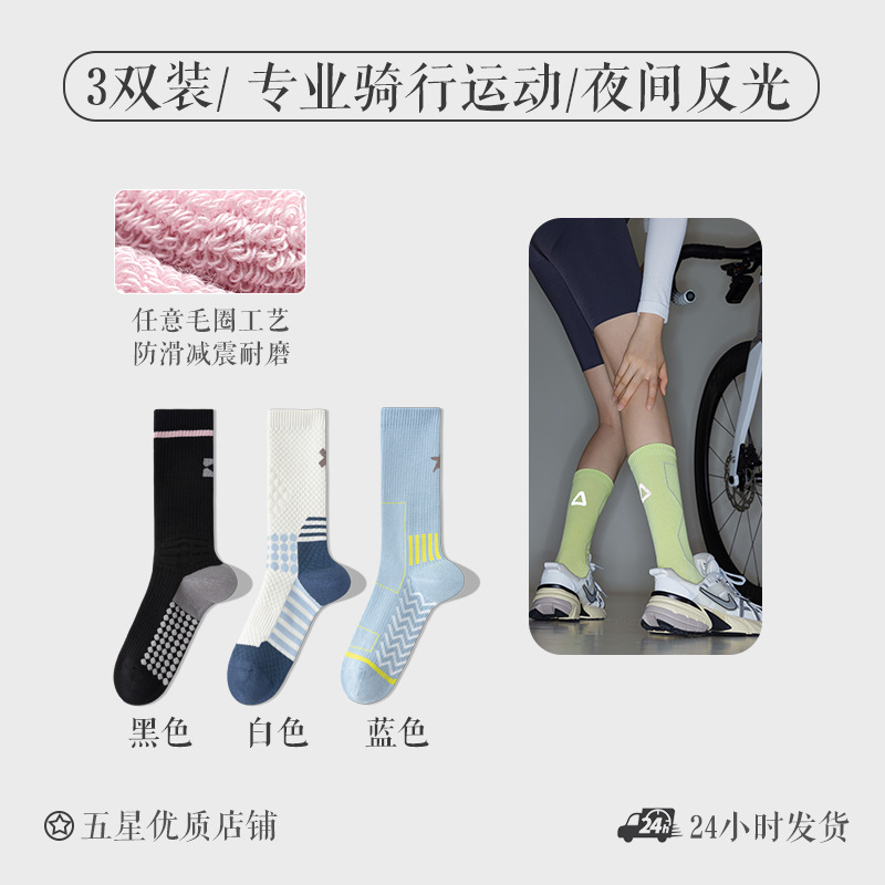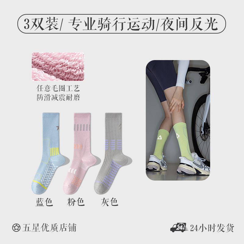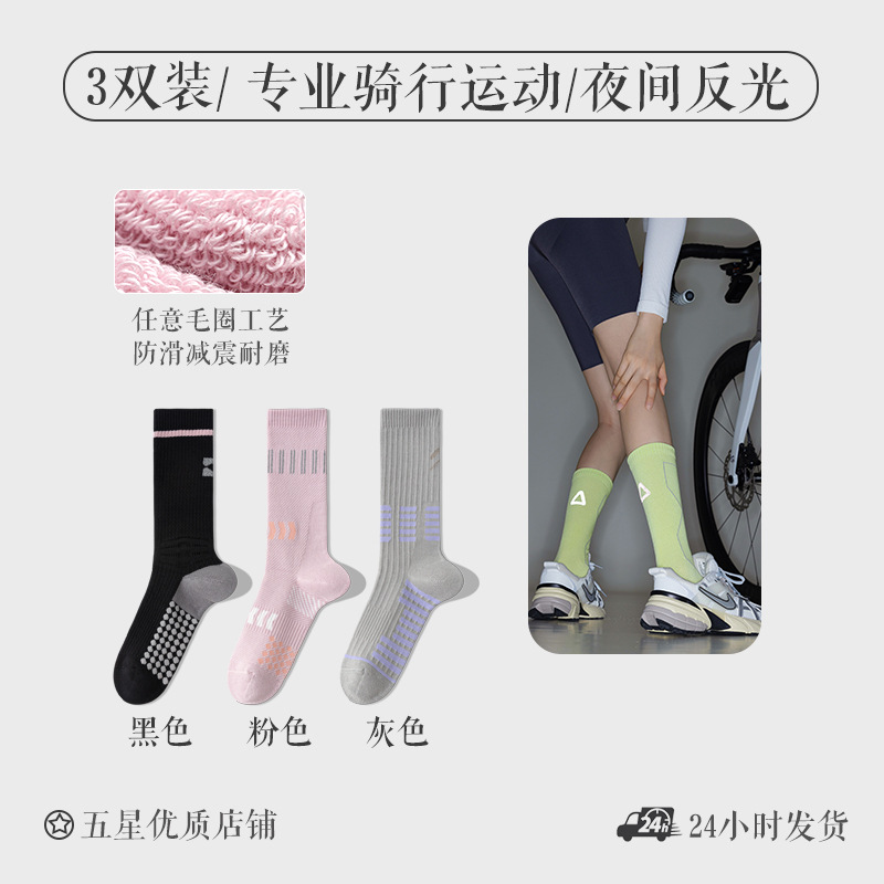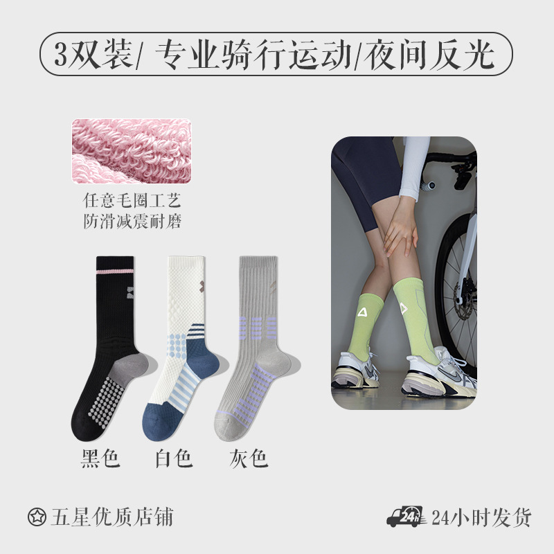 프로 스포츠 사이클링 양말 어린이 중간 길이 양말 밤 반사 피트니스 타월 바닥 스타킹 마이크로 압력 미끄럼 방지 양말스토어 가기