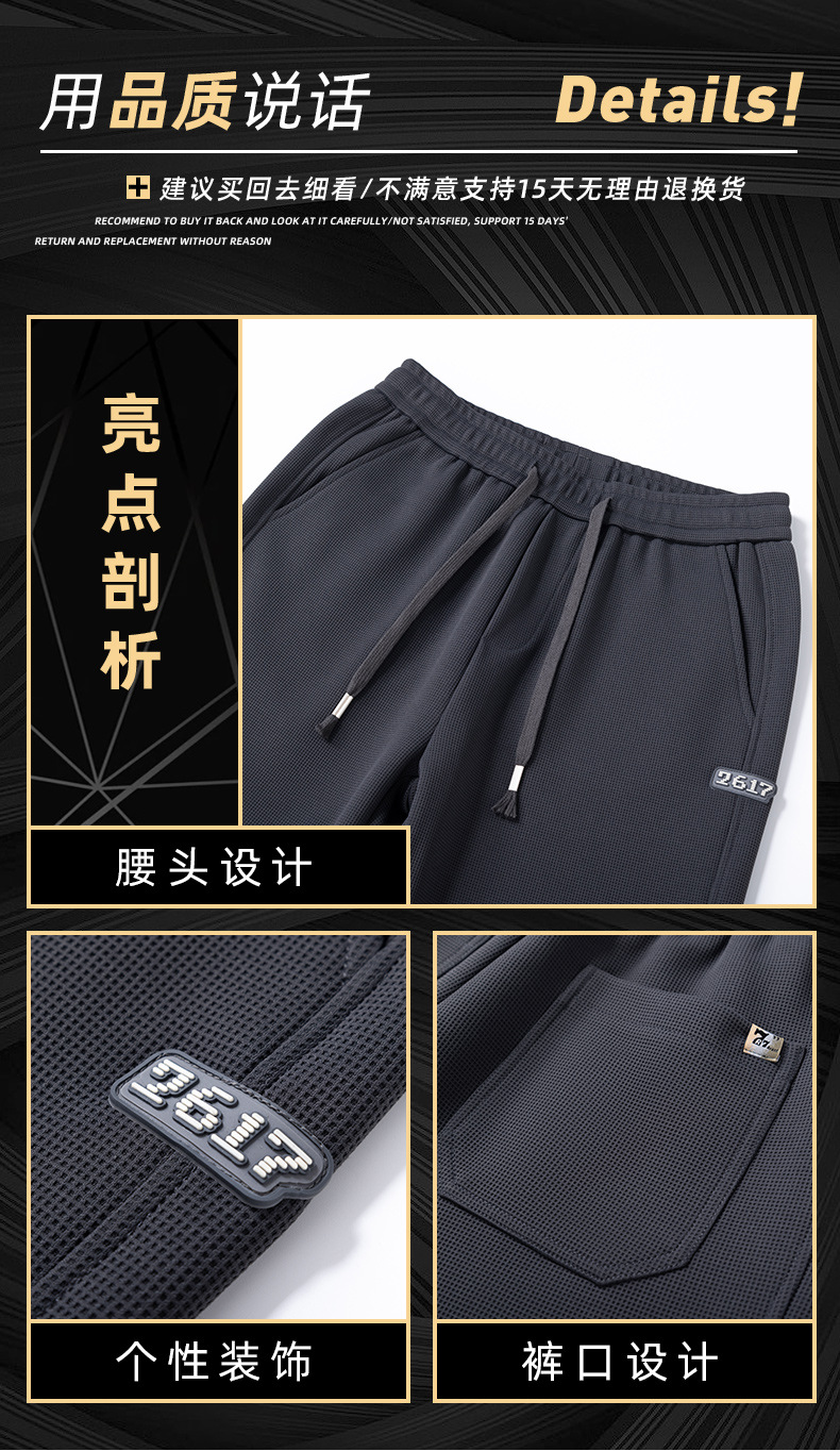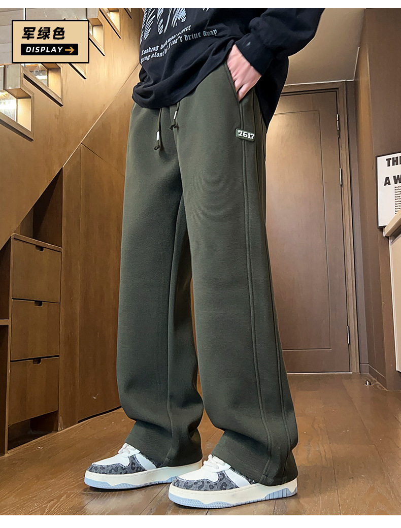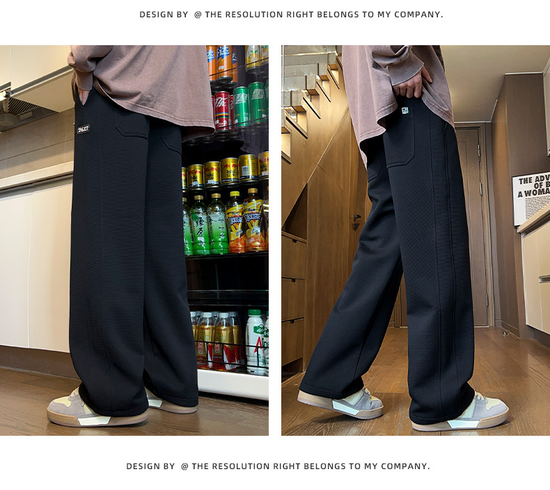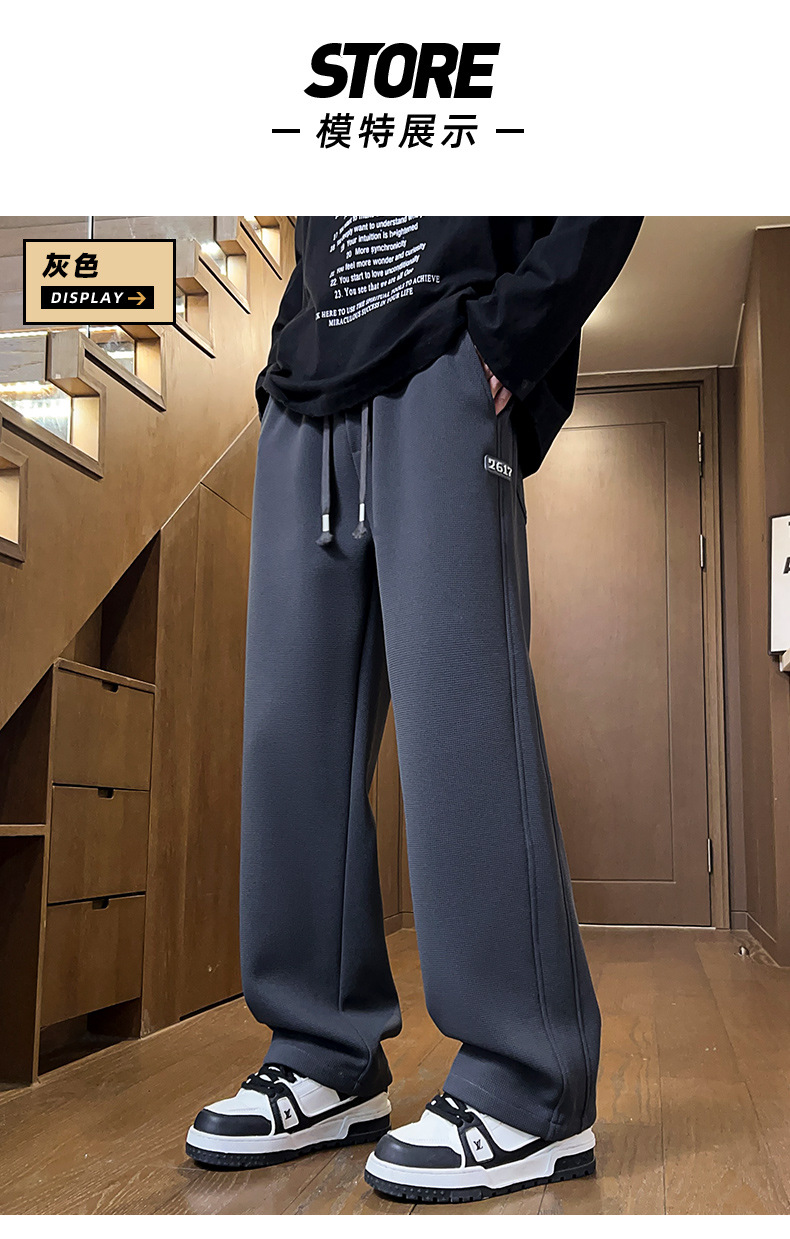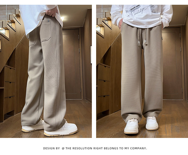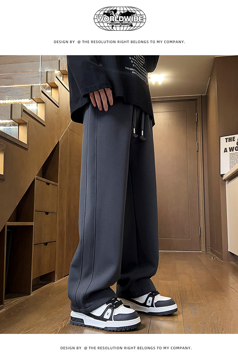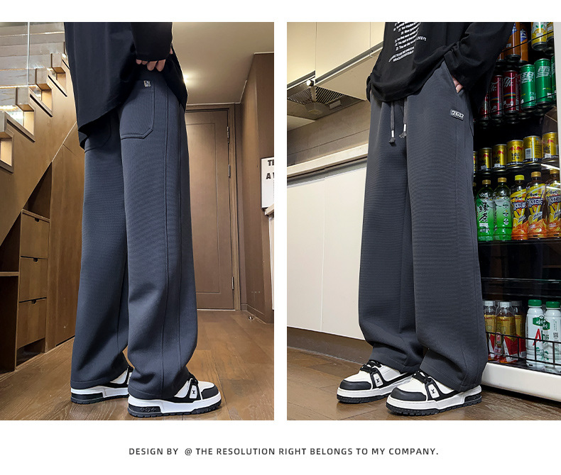남성용 스포츠 팬츠 봄 가을 와플 블랙 팬츠 남성용 고급스러운 드레이프 바닥 길이 팬츠 스트레이트 캐주얼 롱 팬츠스토어 가기