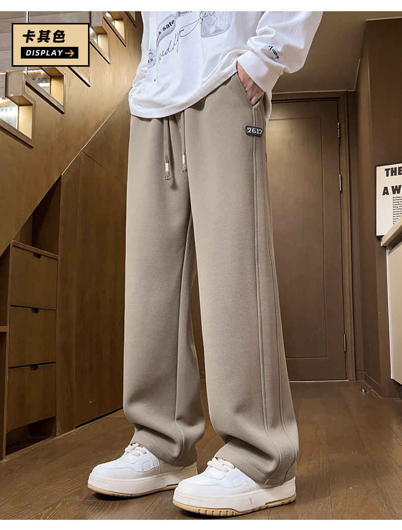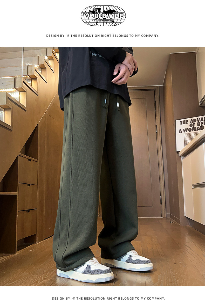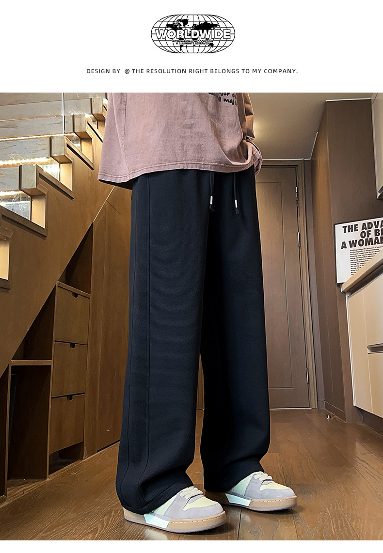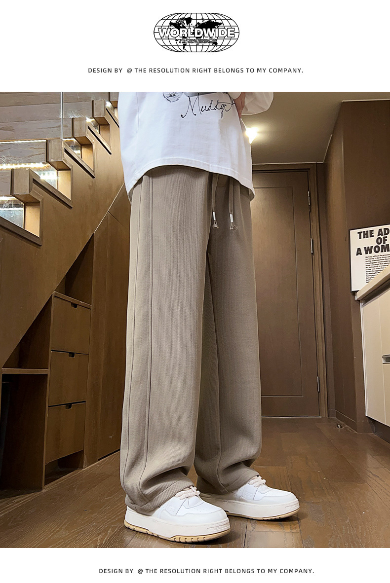 남성용 스포츠 팬츠 봄 가을 와플 블랙 팬츠 남성용 고급스러운 드레이프 바닥 길이 팬츠 스트레이트 캐주얼 롱 팬츠