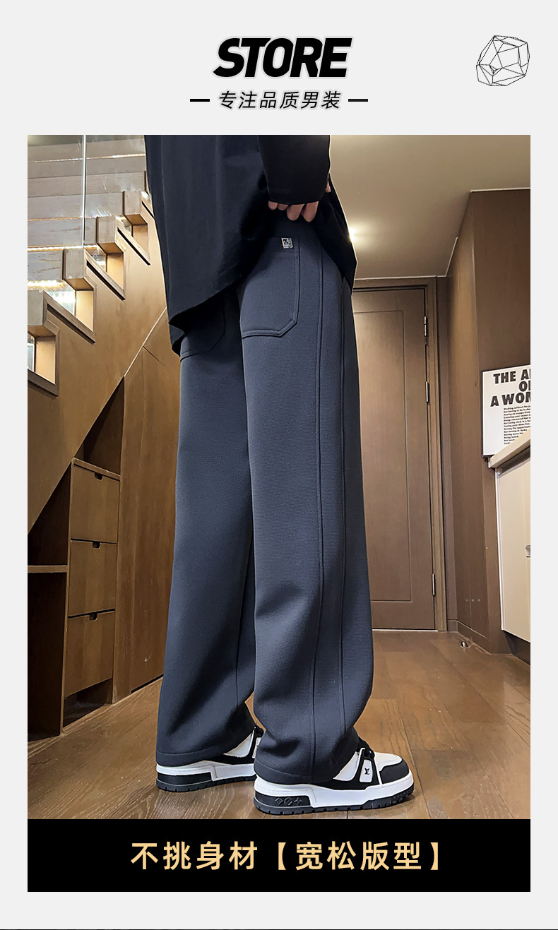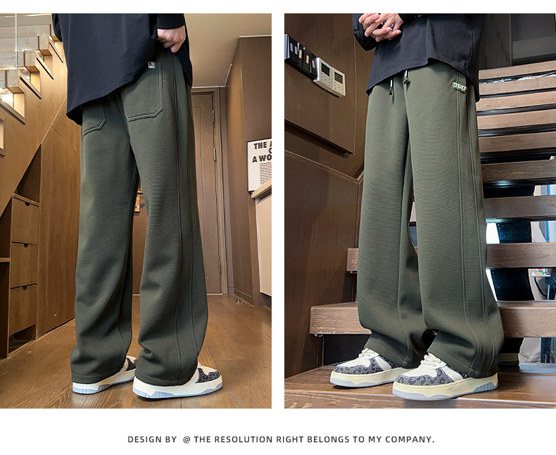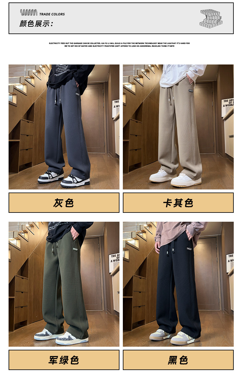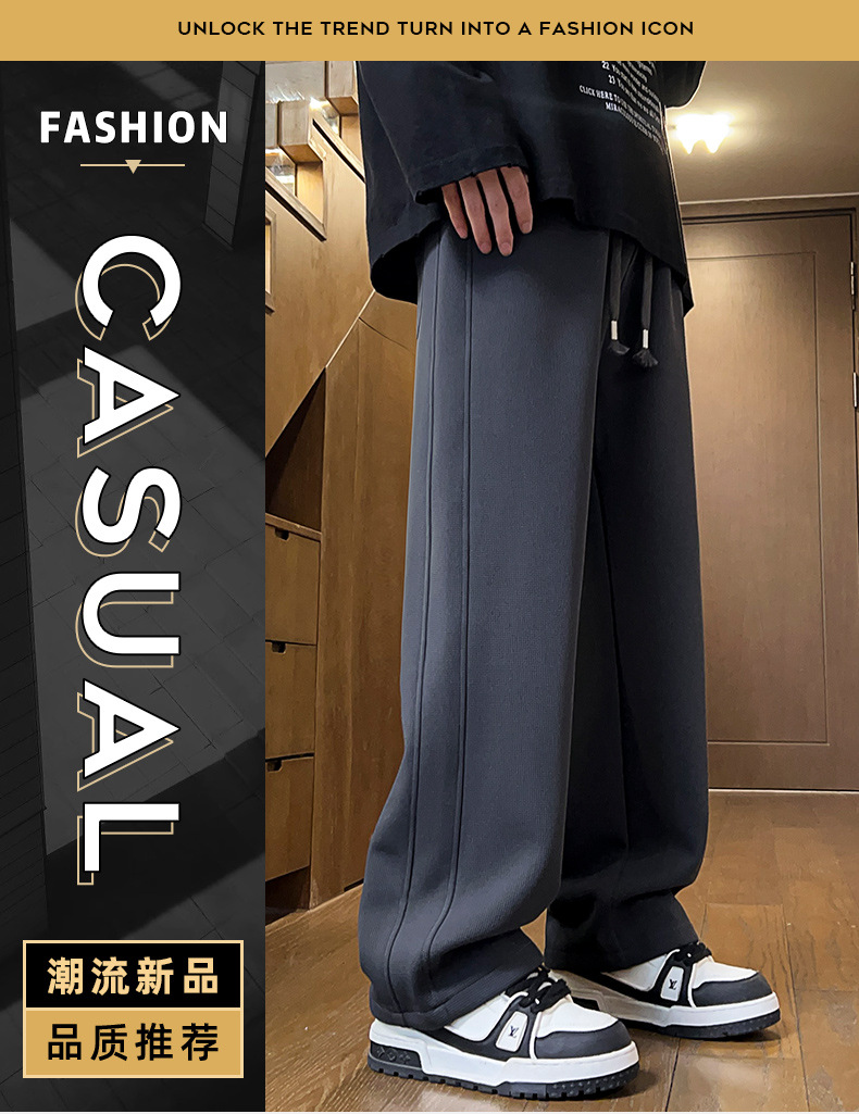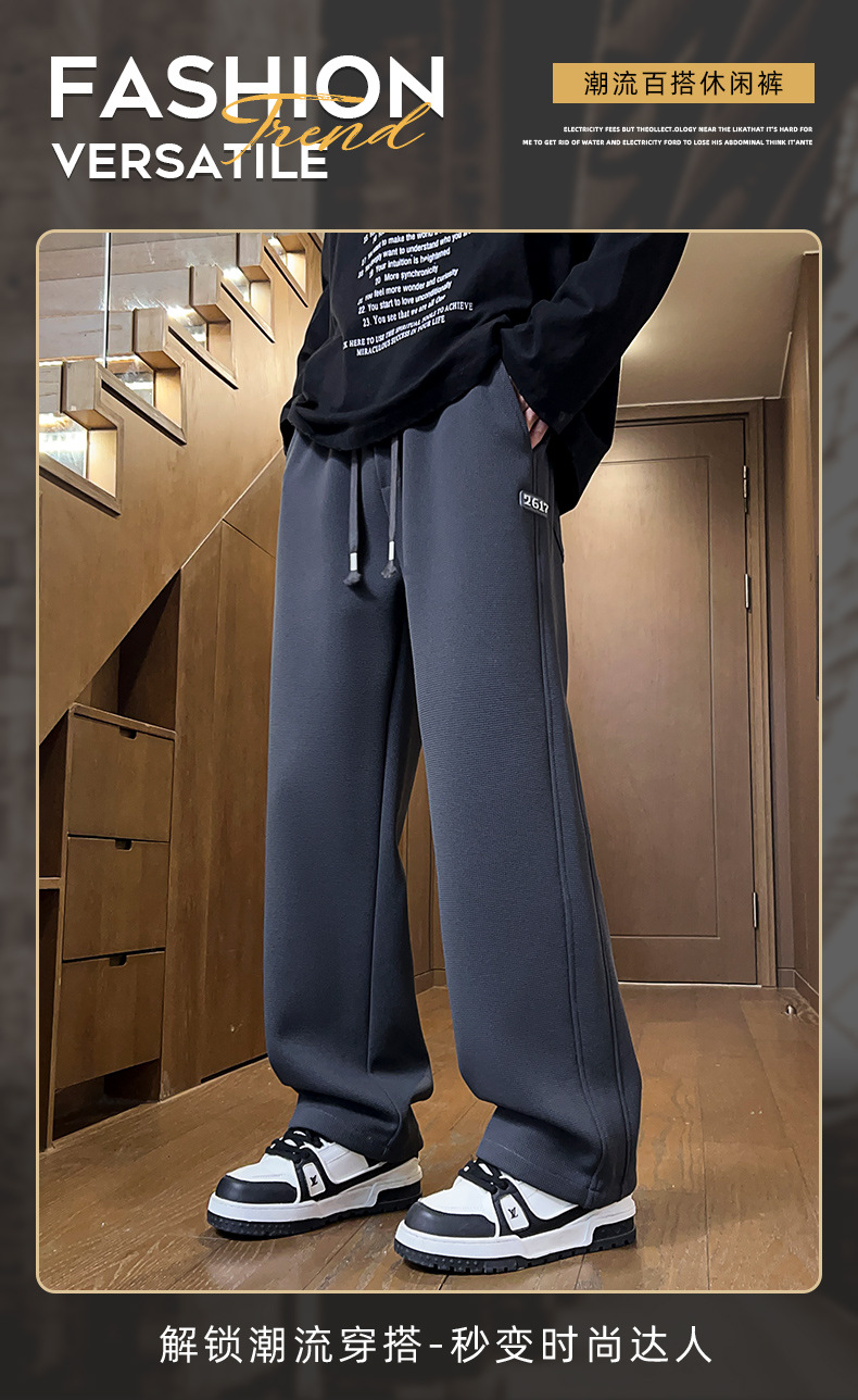 남성용 스포츠 팬츠 봄 가을 와플 블랙 팬츠 남성용 고급스러운 드레이프 바닥 길이 팬츠 스트레이트 캐주얼 롱 팬츠