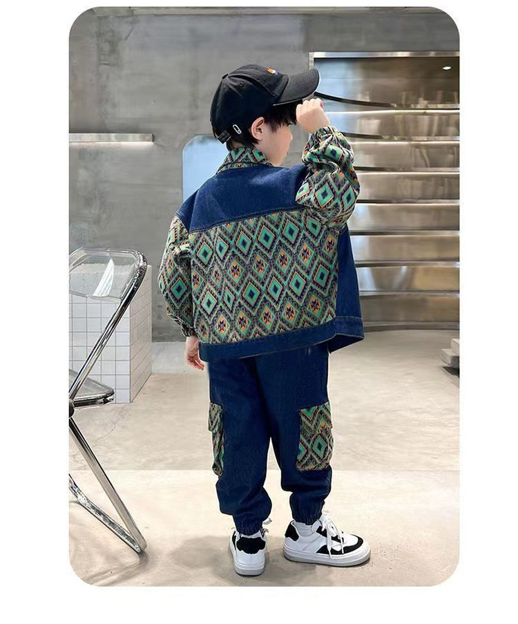소년 데님 세트 어린이 봄 바느질 데님 코트 아기의 명암 한국식 봄과 가을 투피스 세트