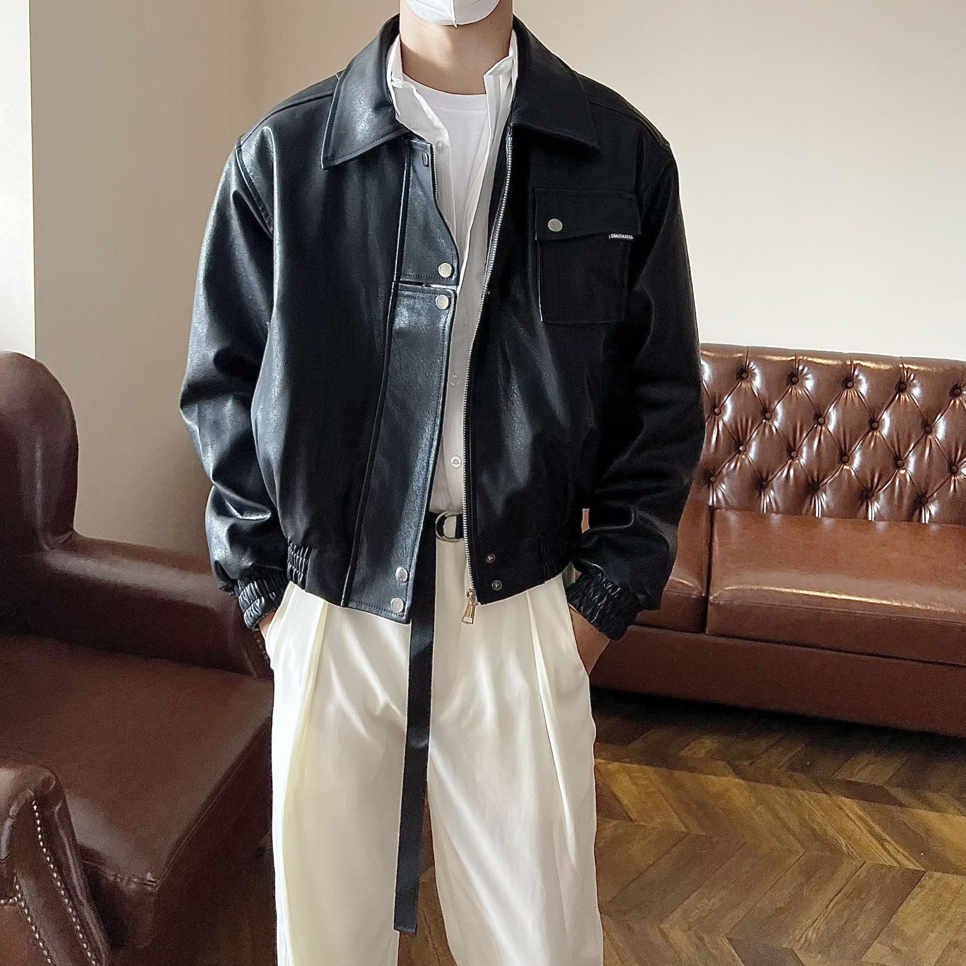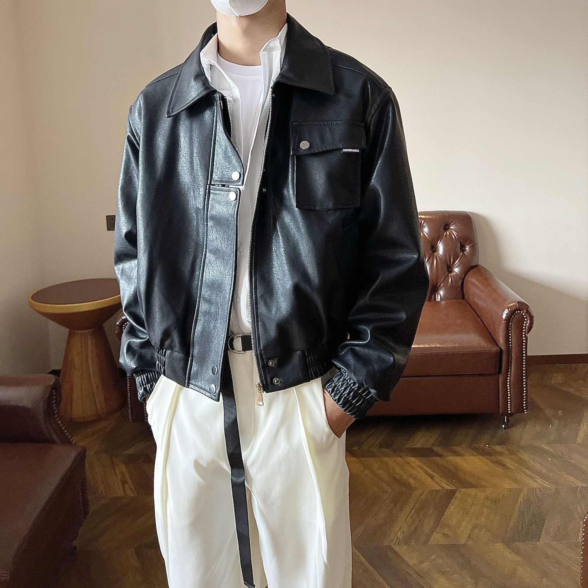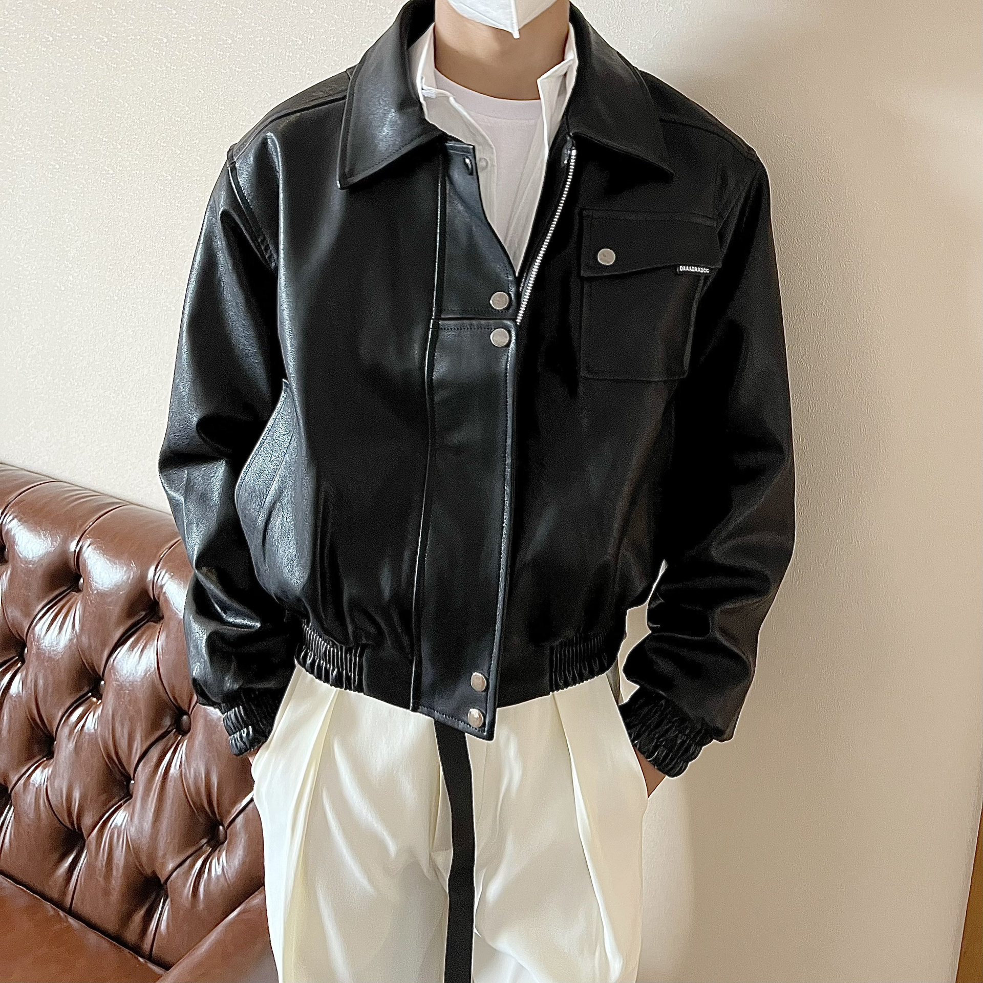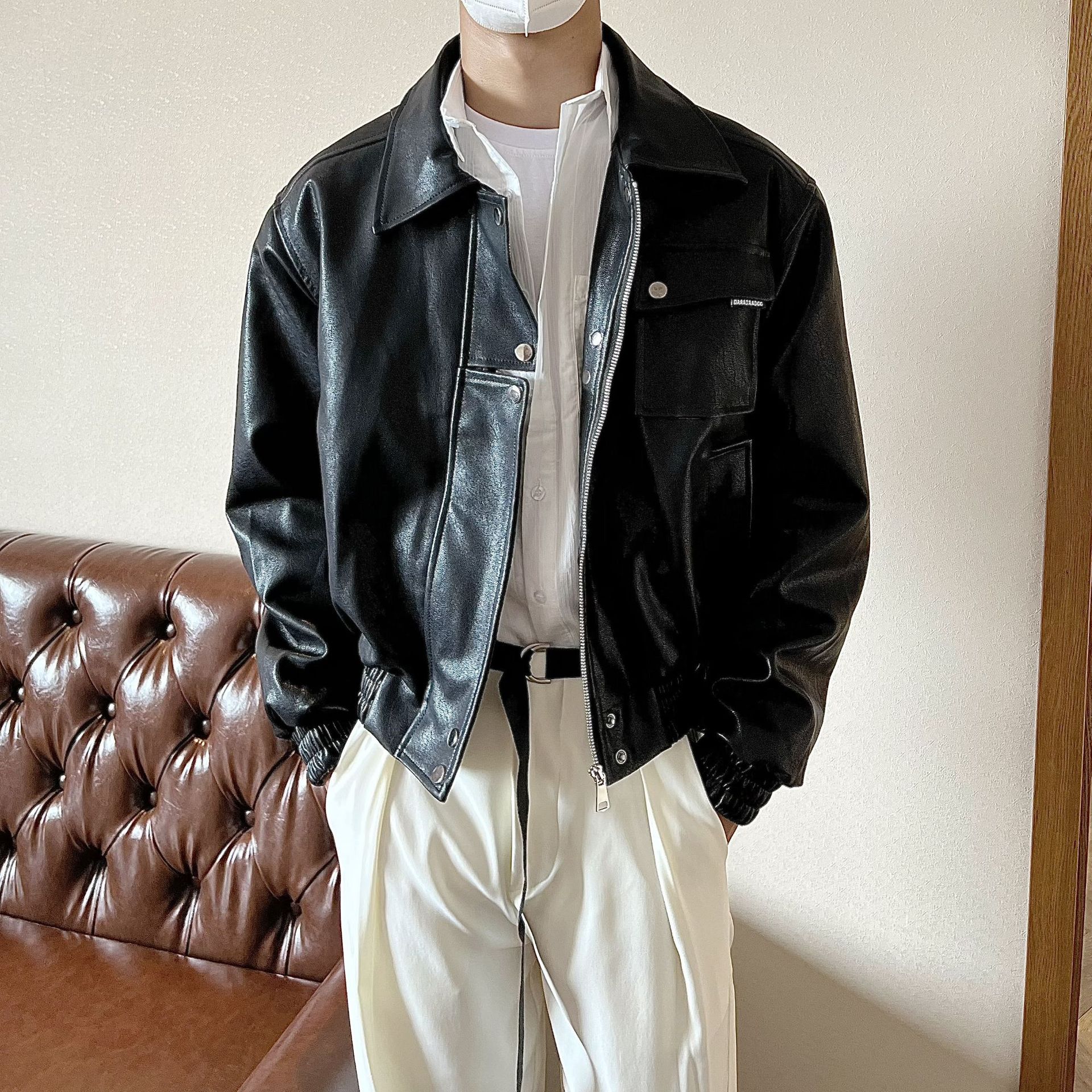 가을 한국 스타일 간단한 하이 엔드 블랙 PU 가죽 자켓 남자 복고풍 잘 생긴 자전거 옷 캐주얼 재킷 트렌디스토어 가기