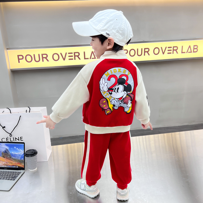 남자 아기의 가을 착용 세트 2024 새로운 어린이 만화 카디건 투피스 세트 소년 대외 무역 스포츠 아동복