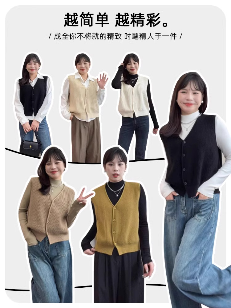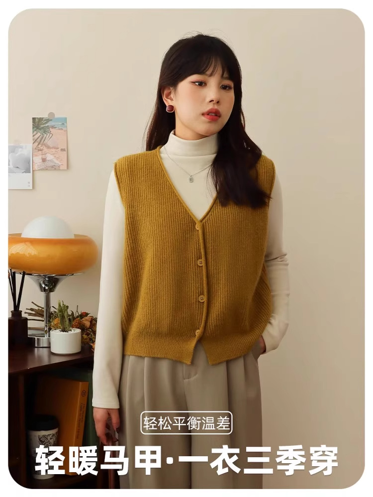 브이넥 니트 스웨터 조끼 코트 조끼 여성용 아우터 카디건 2025 가을 신작 레이어드 조끼 탑스토어 가기