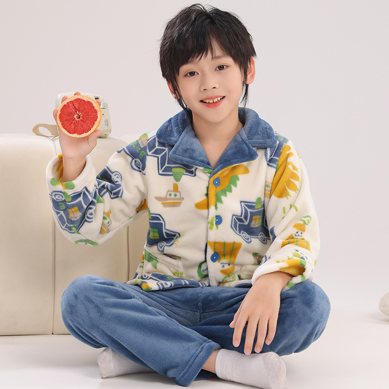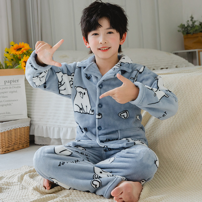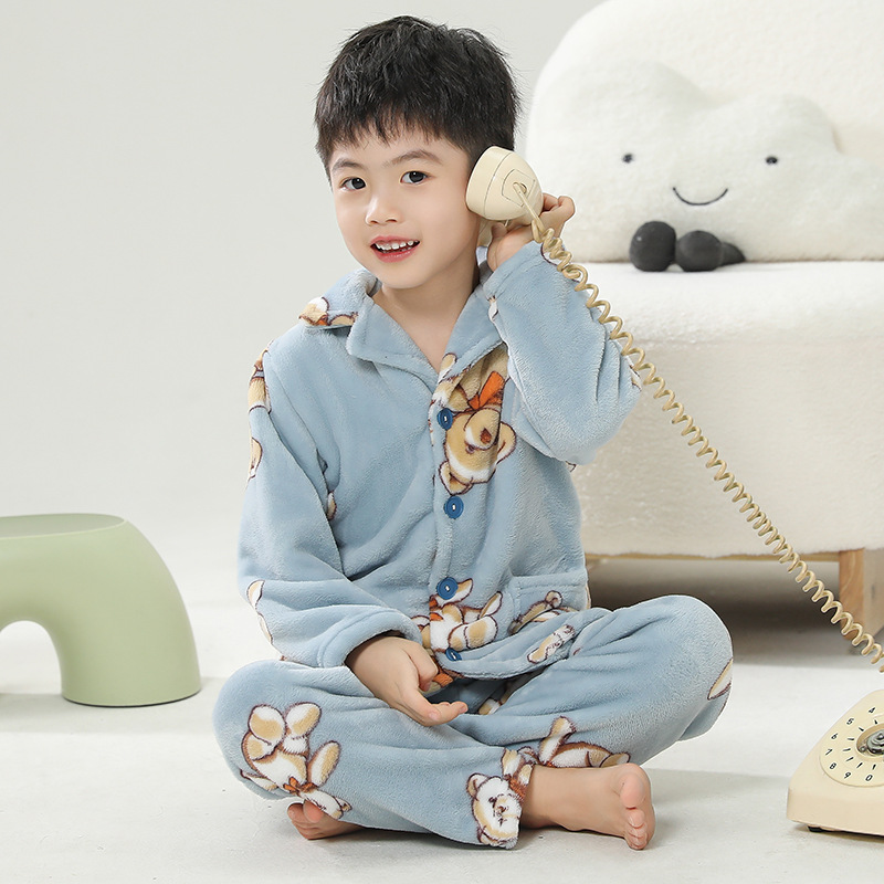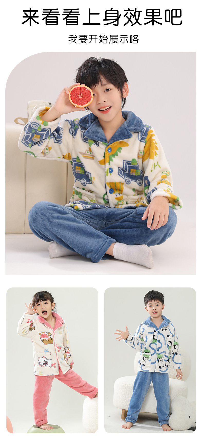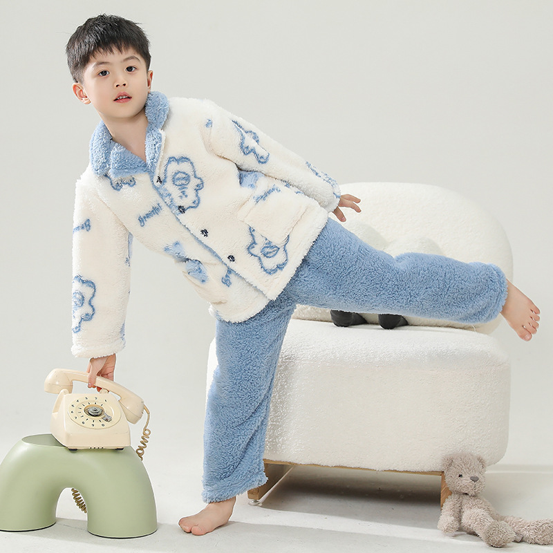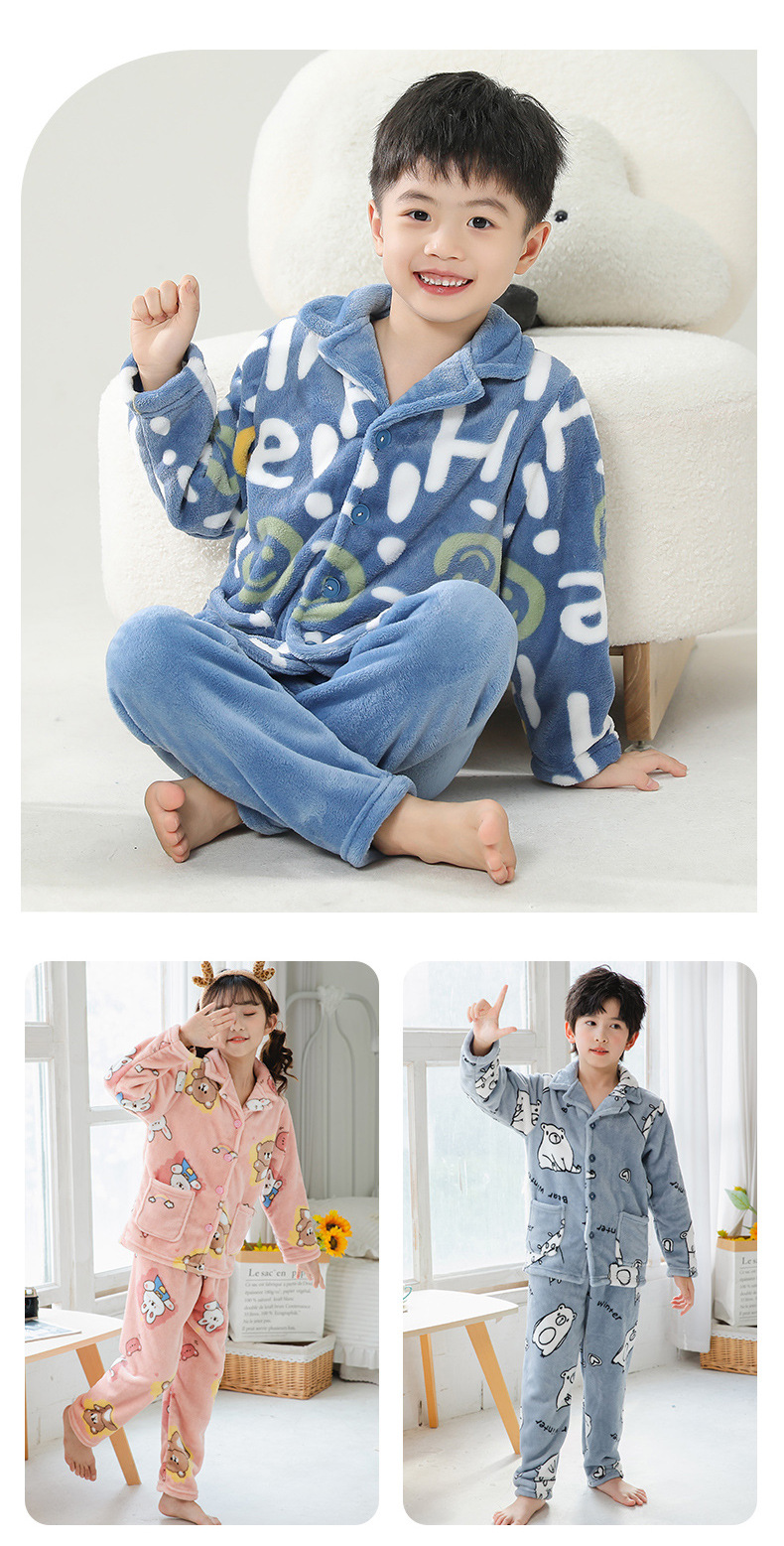 어린이 플란넬 잠옷 가을, 겨울 소년 두꺼운 가을 스타일 소년과 소녀 아기 가정 의류 세트 가을 의류스토어 가기