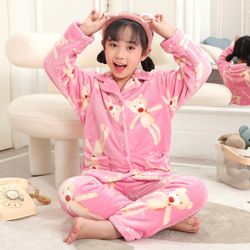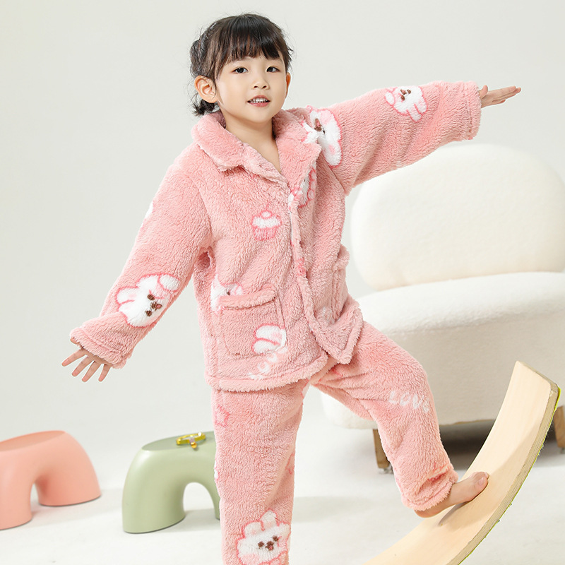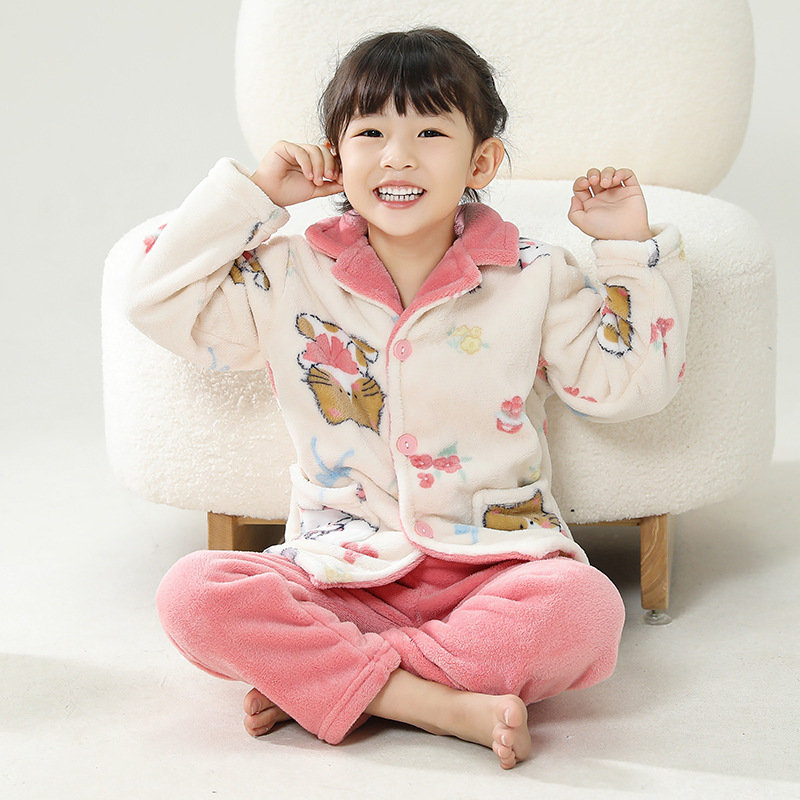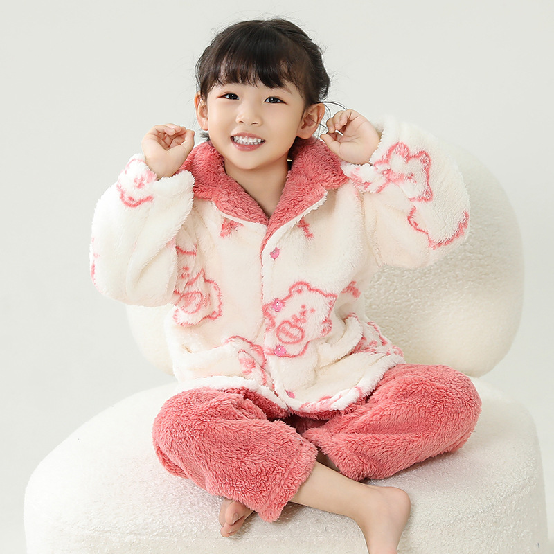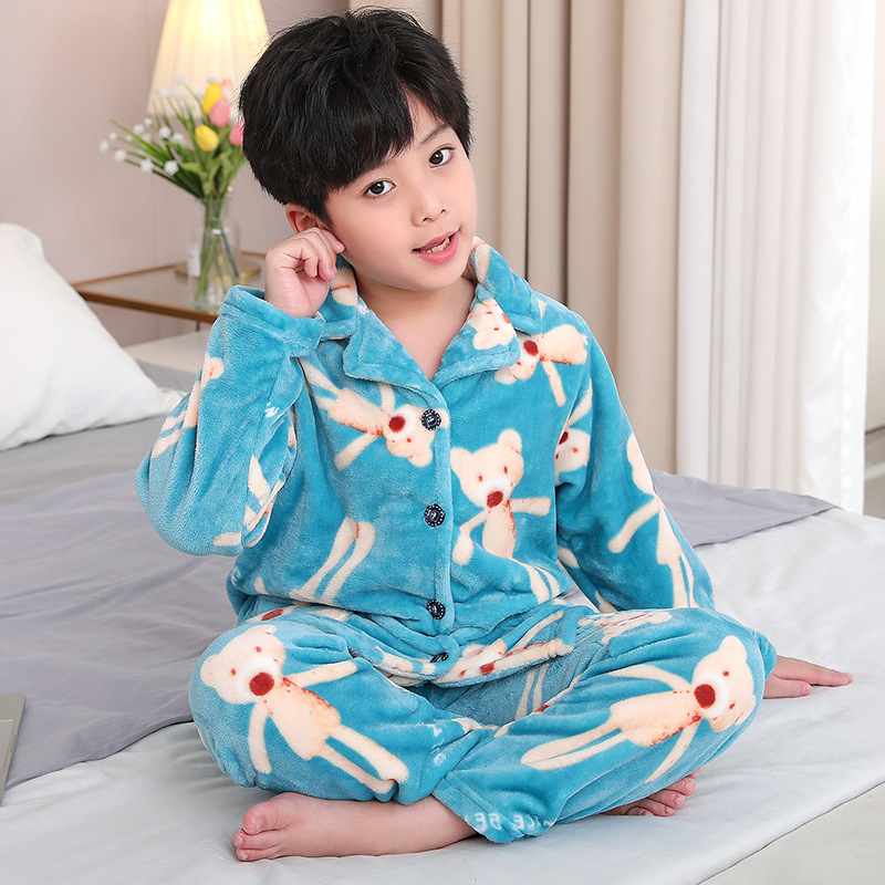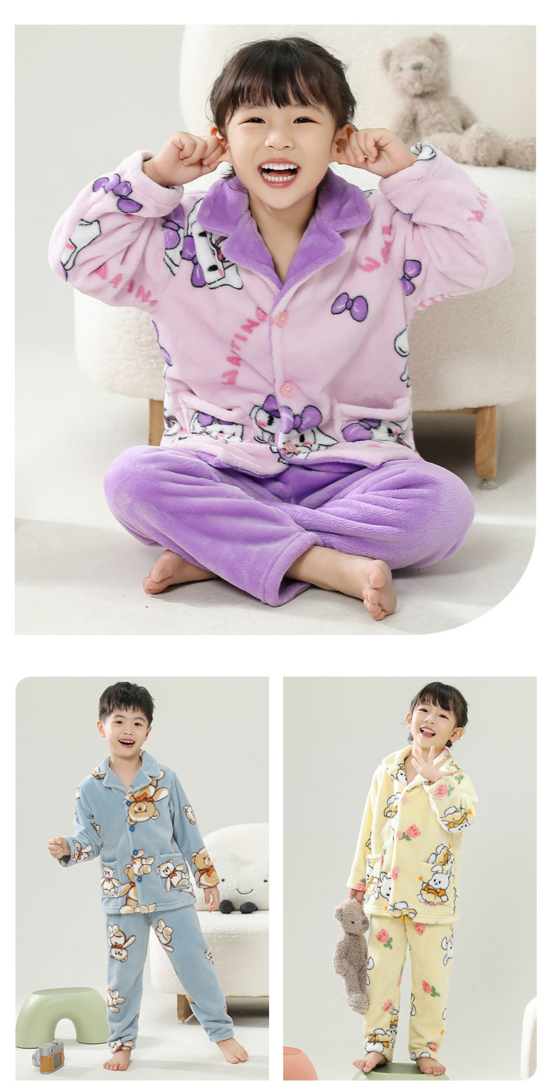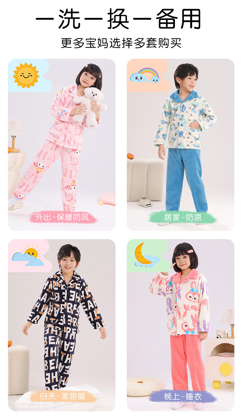 어린이 플란넬 잠옷 가을, 겨울 소년 두꺼운 가을 스타일 소년과 소녀 아기 가정 의류 세트 가을 의류스토어 가기