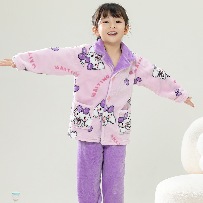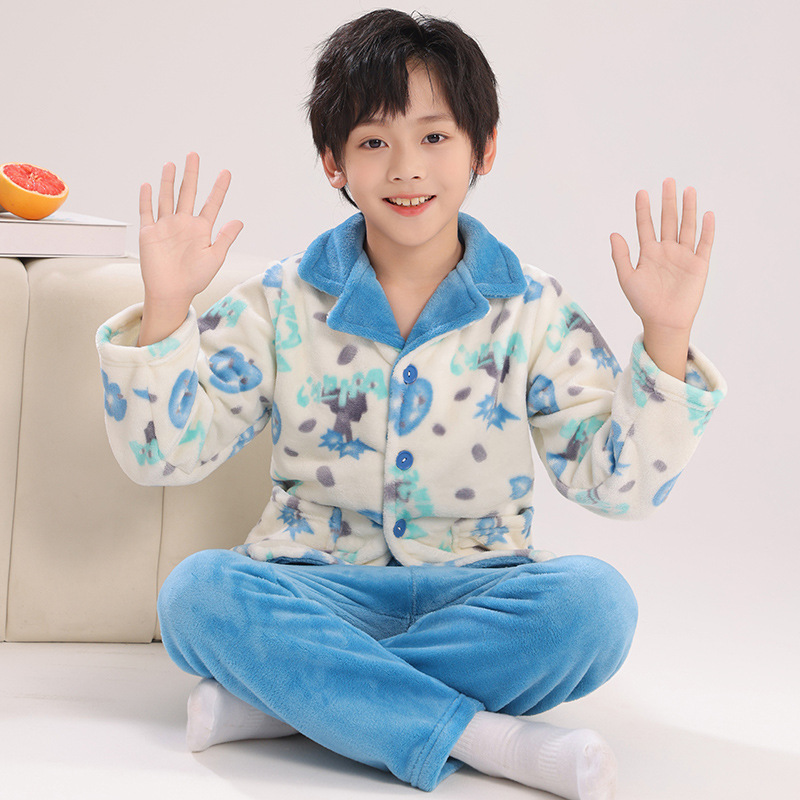 어린이 플란넬 잠옷 가을, 겨울 소년 두꺼운 가을 스타일 소년과 소녀 아기 가정 의류 세트 가을 의류
