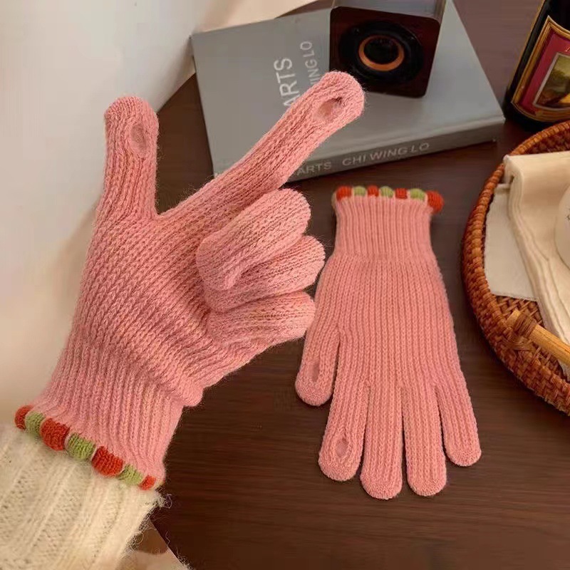 니트 울 장갑, 벨벳 안감, 두꺼운 여성용 겨울 방한 장갑, 사이클링용 손가락 없는 터치스크린 장갑, 도매스토어 가기