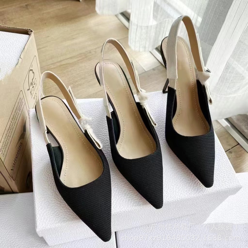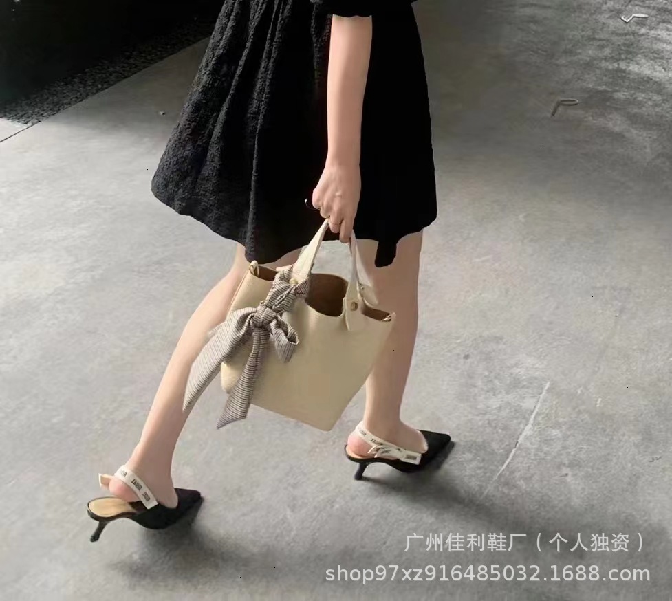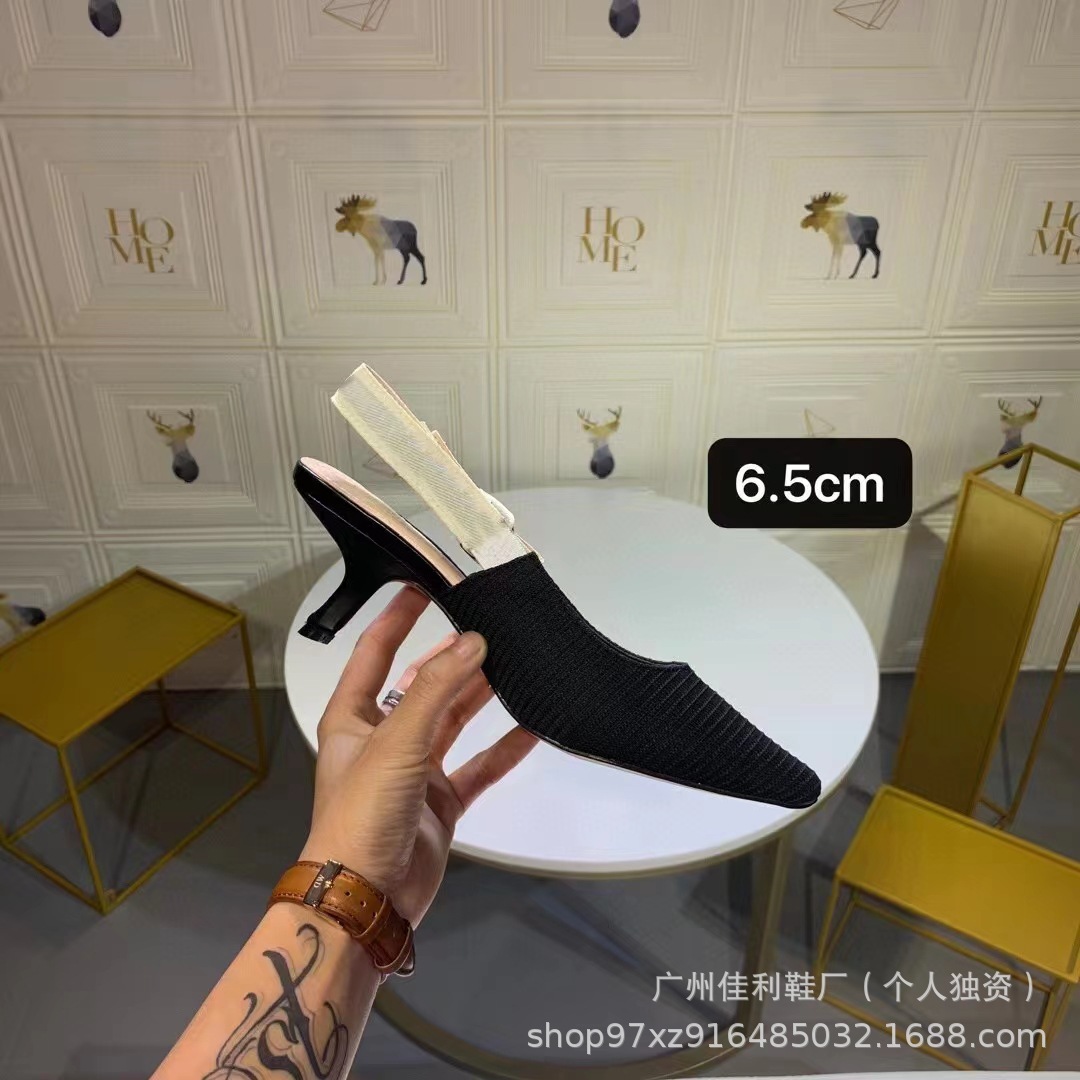 유럽 역 D 홈 높은 버전 고양이 굽 샌들 여자 올 매치 마스터 밴드 싱글 슈즈 스트라이프 뾰족한 하이힐 여성 기질