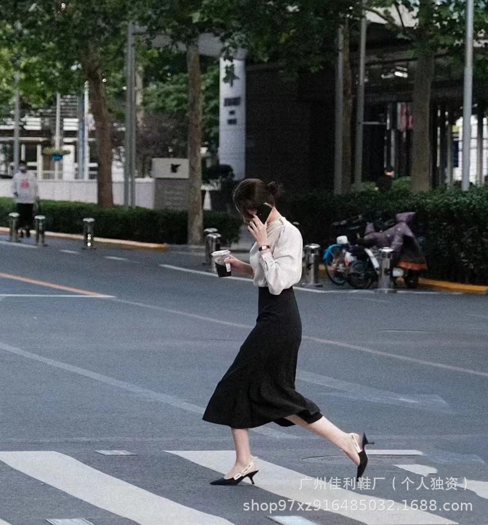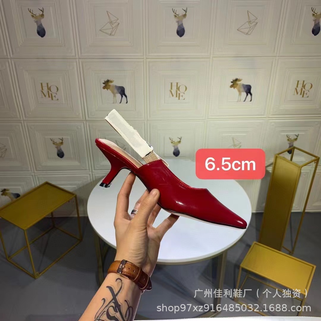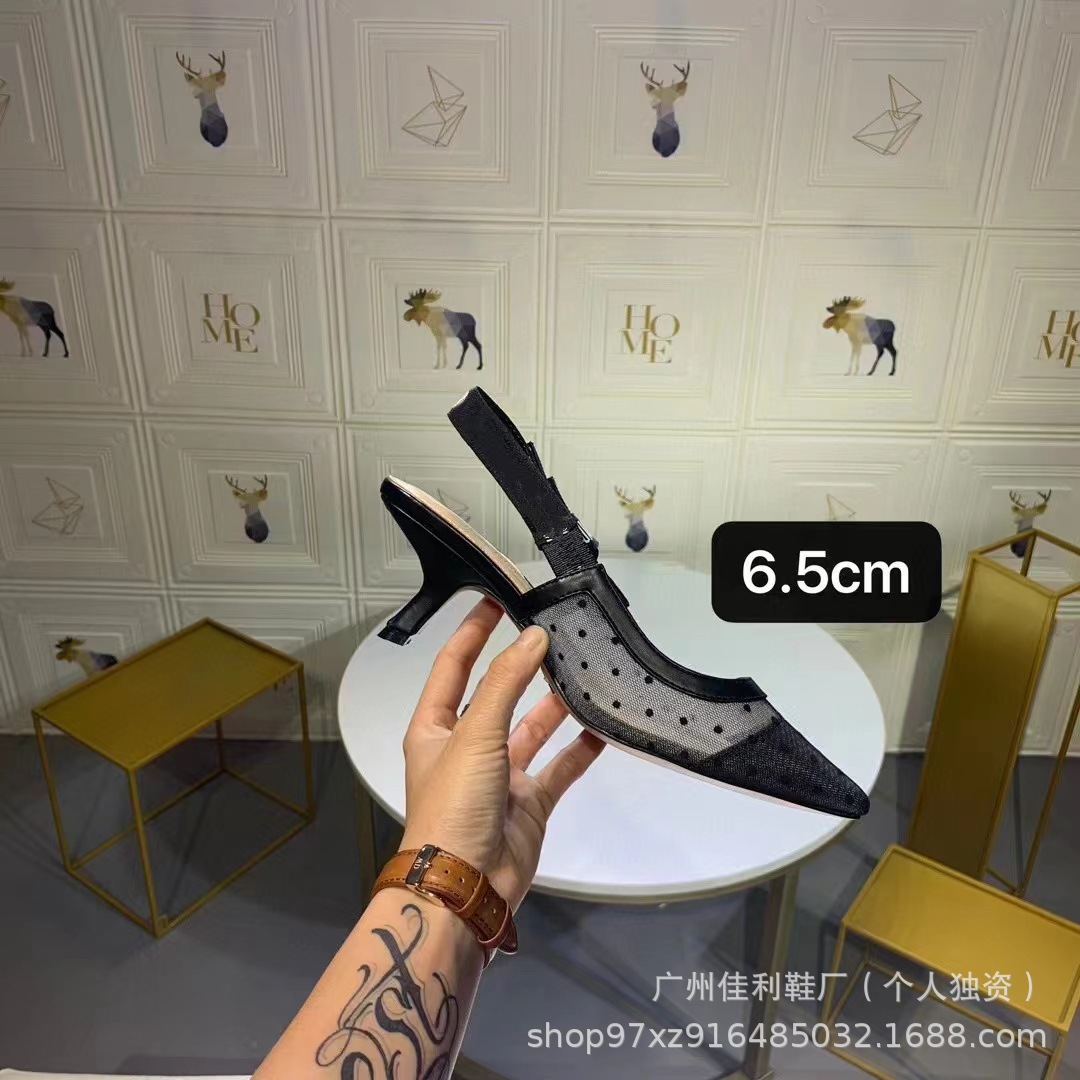 유럽 역 D 홈 높은 버전 고양이 굽 샌들 여자 올 매치 마스터 밴드 싱글 슈즈 스트라이프 뾰족한 하이힐 여성 기질