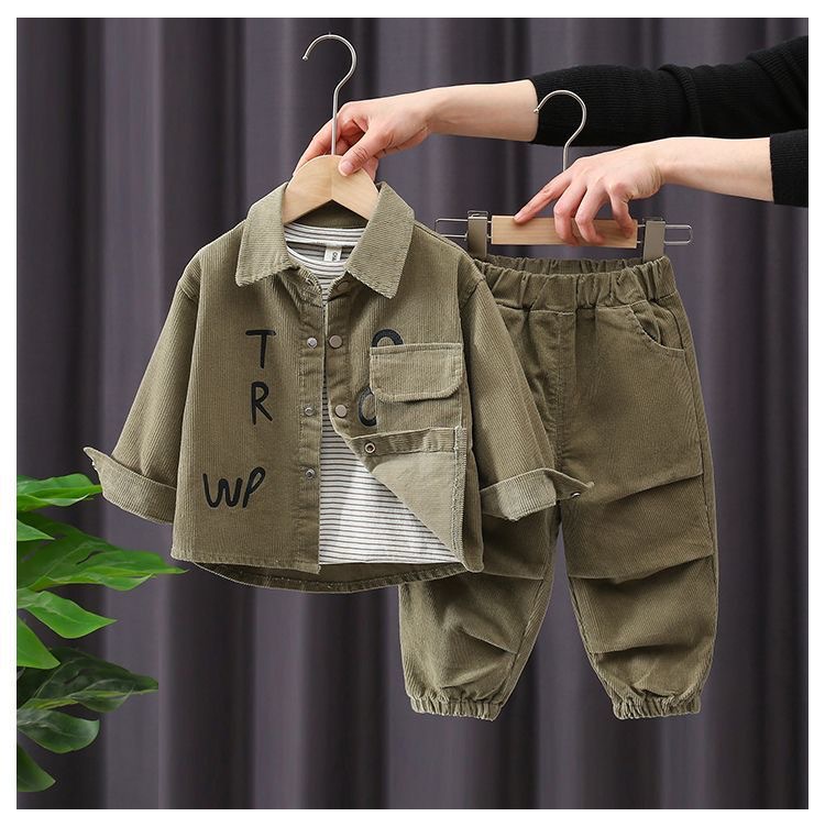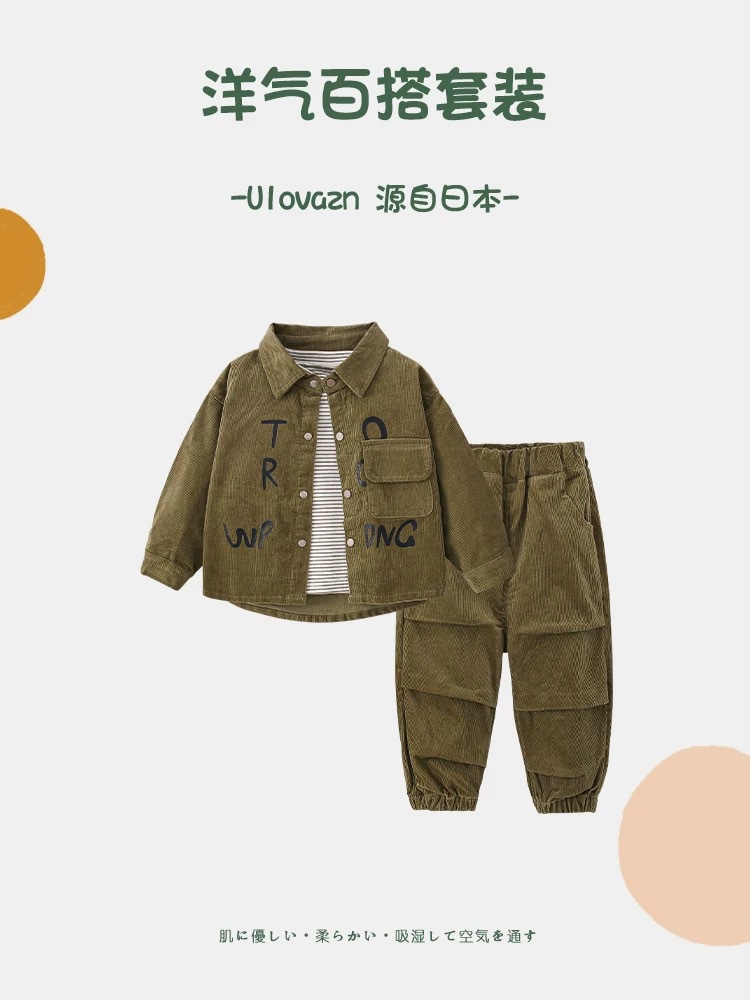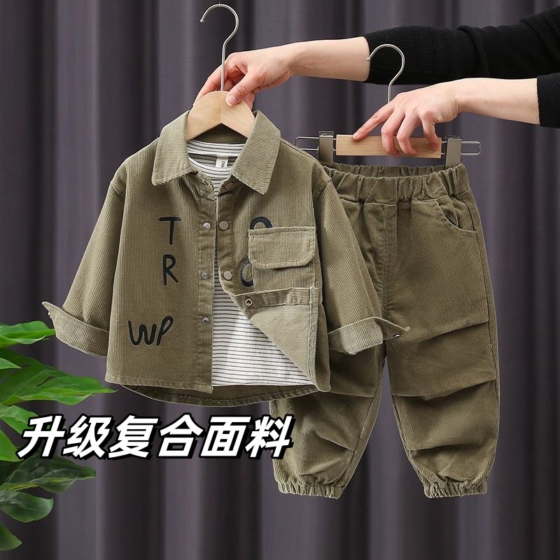 남아 가을 의류 세트 2026 신상 아동용 봄 가을 긴팔 셔츠 남아 코듀로이 투피스 세트 베이비 트렌디