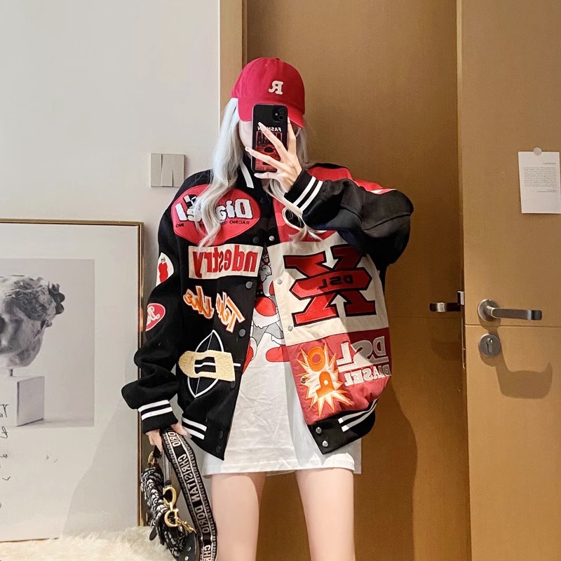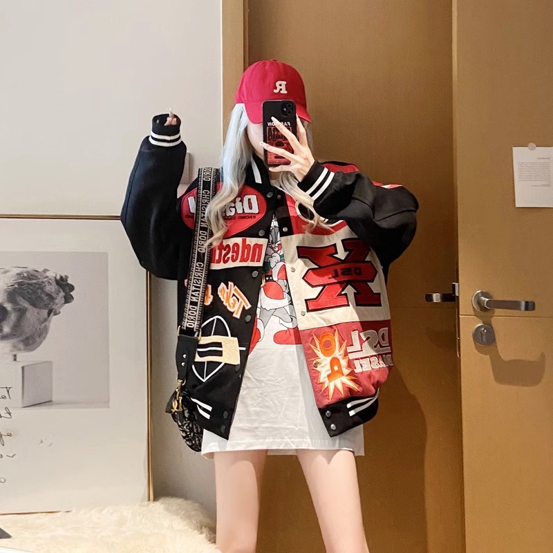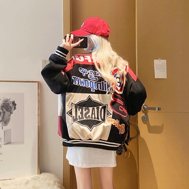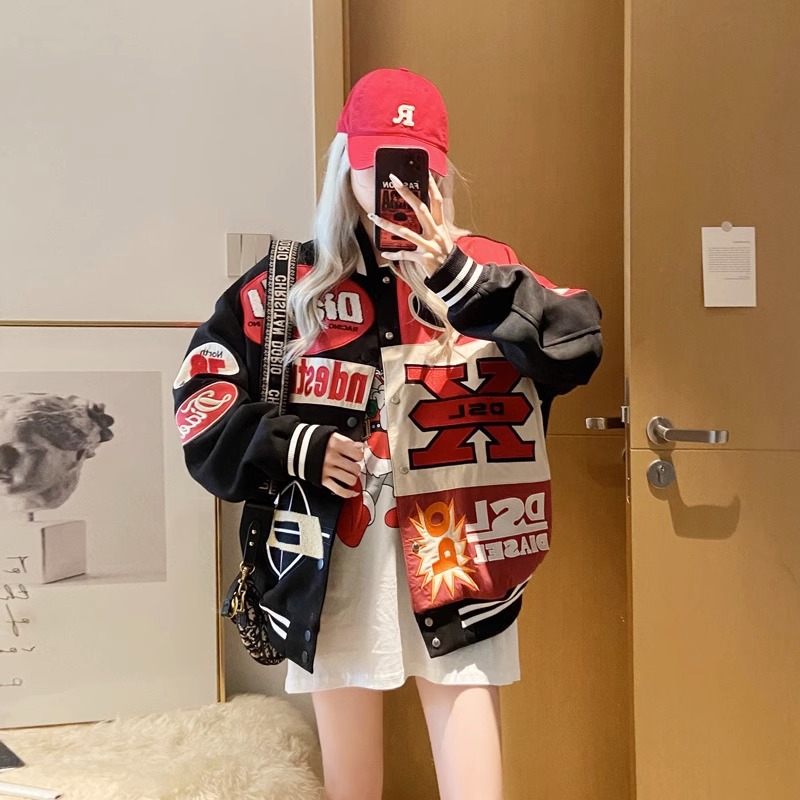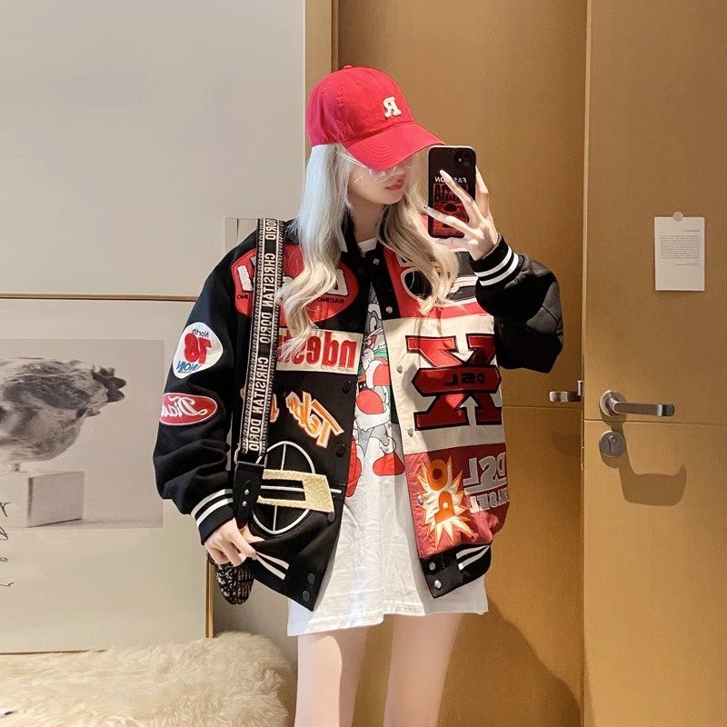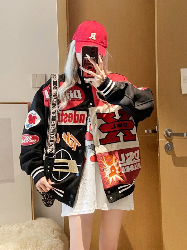 2024 새로운 야구 세트 비행사 재킷 코트 여성의 봄과 가을 느슨한 봄 미국 스타일 유행 브랜드 오토바이 봄과 가을스토어 가기