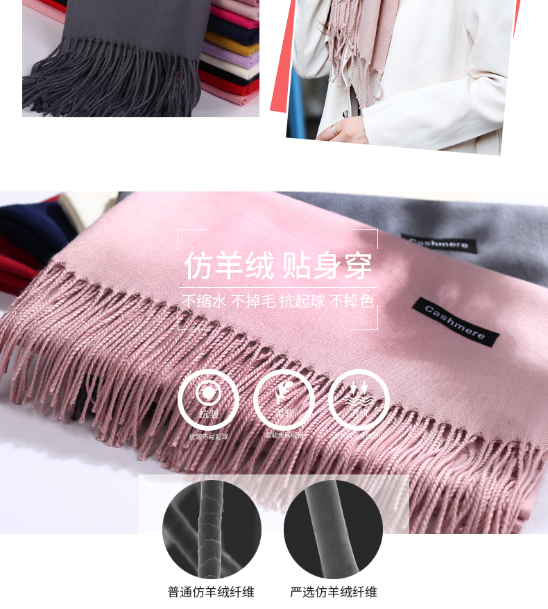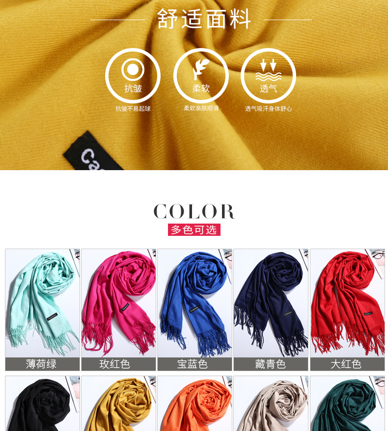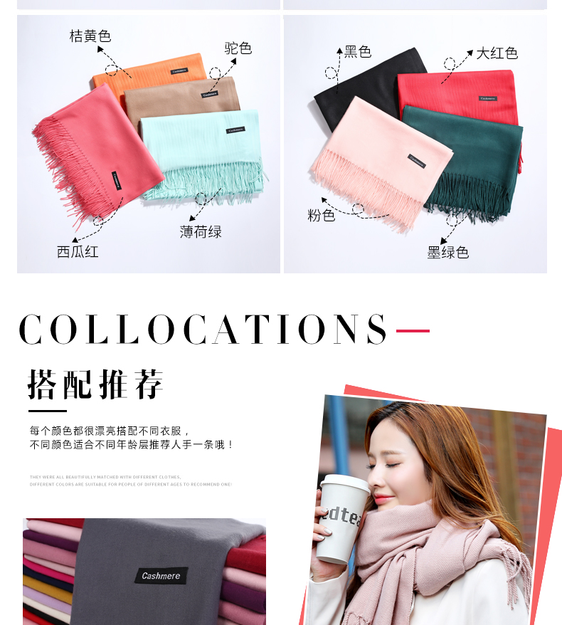 새로운 캐시미어 스카프 두꺼운 단색 술 긴 목 여성의 가을과 겨울 선물 따뜻한 학생 목도리
