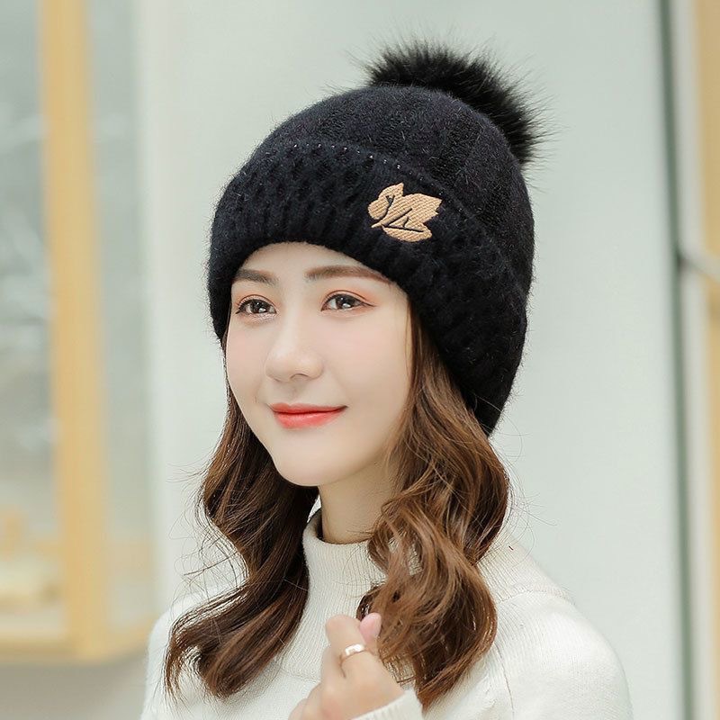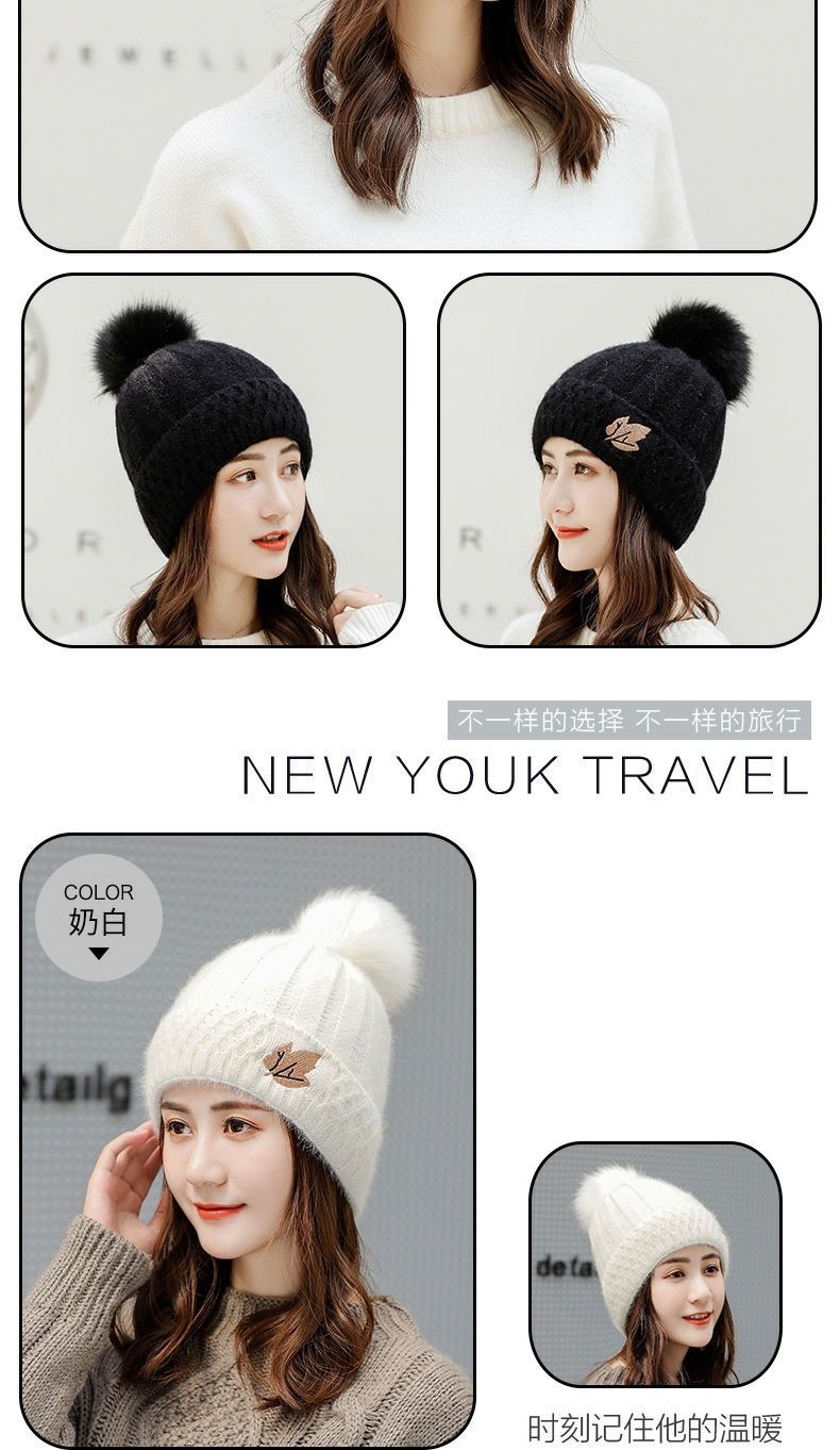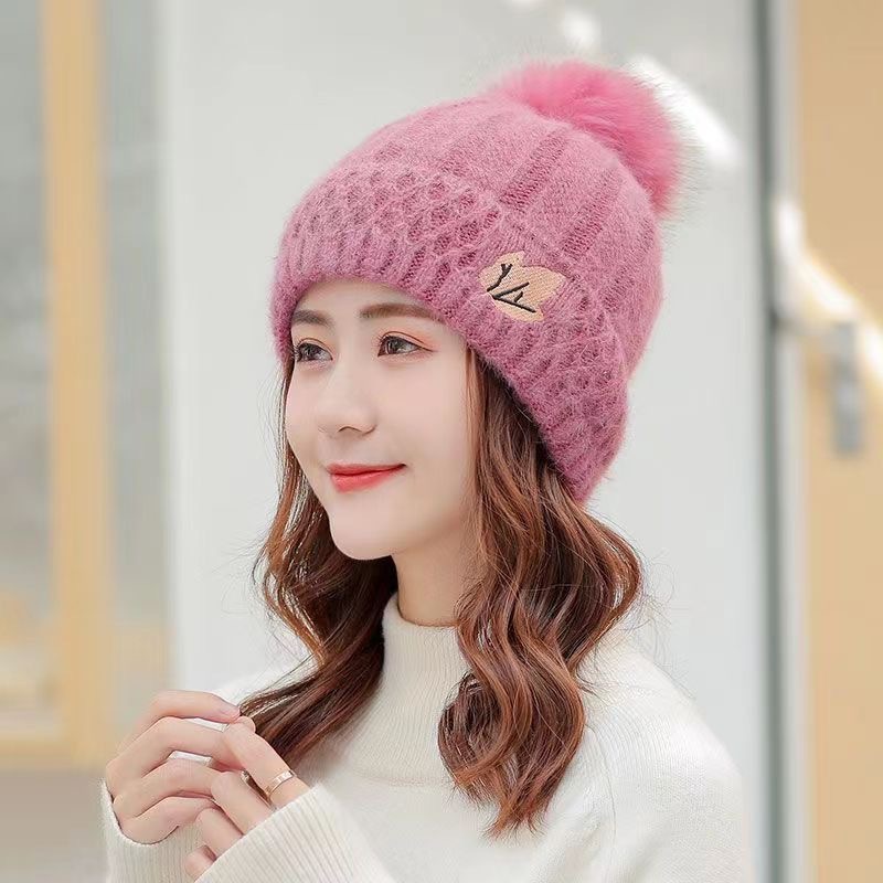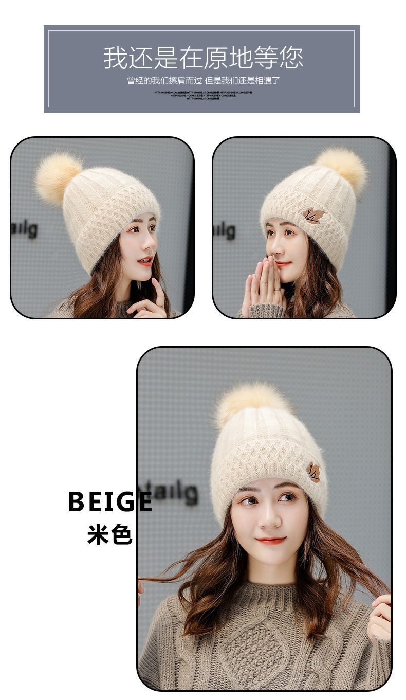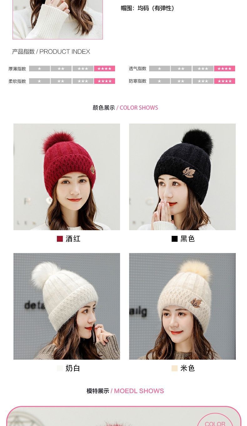 • 冬季韩版毛线帽子女士加绒加厚围脖妈妈骑车保暖防寒针织护耳潮帽