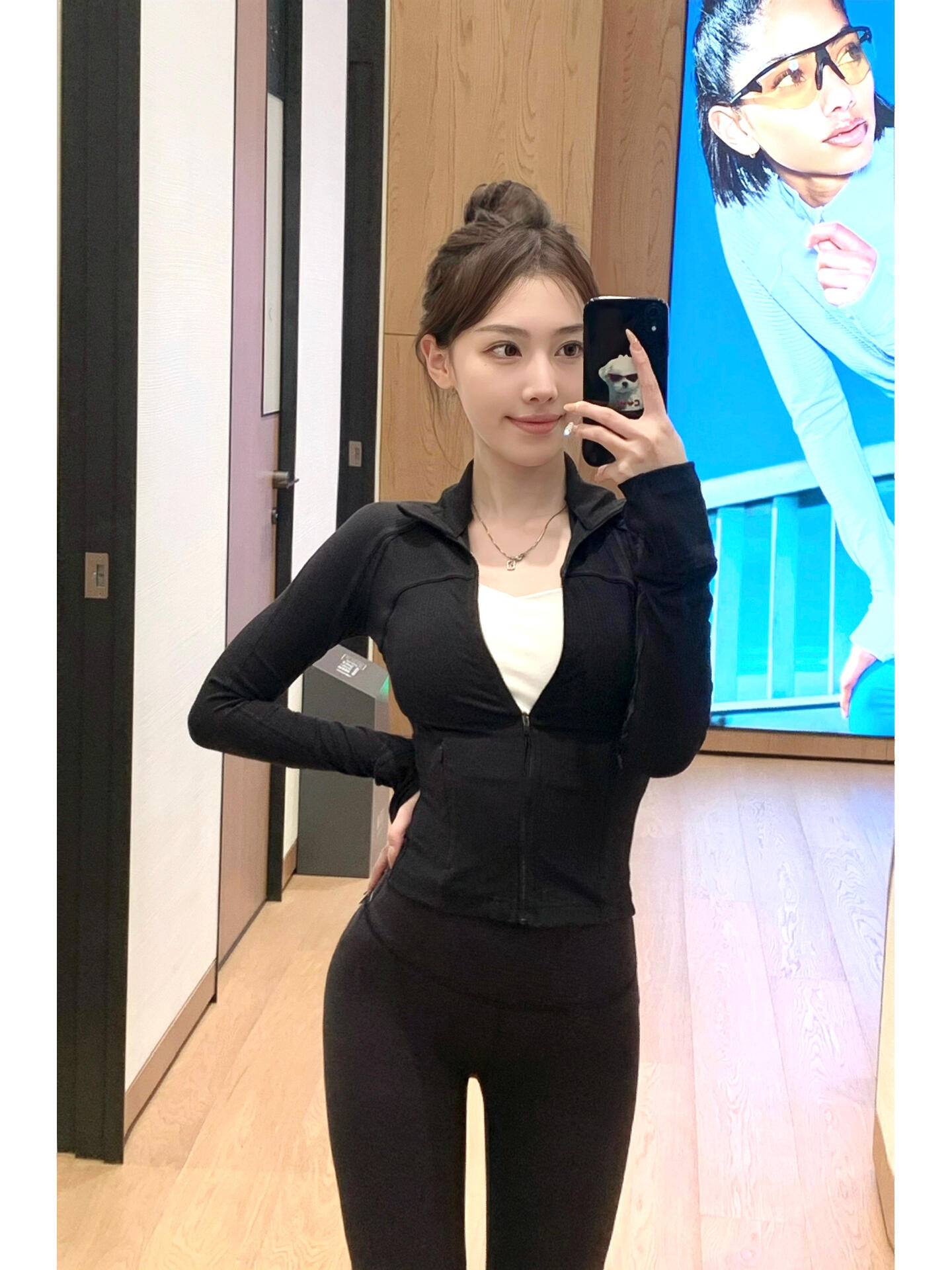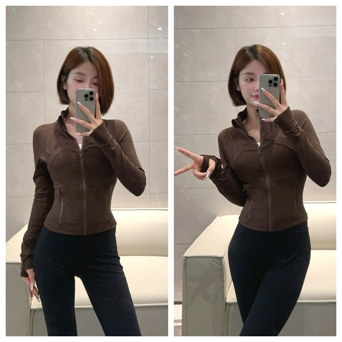 Lulu 정의 자른 일반 짧은 스포츠 재킷 요가 스포츠 캐주얼 슬림 핏 재킷