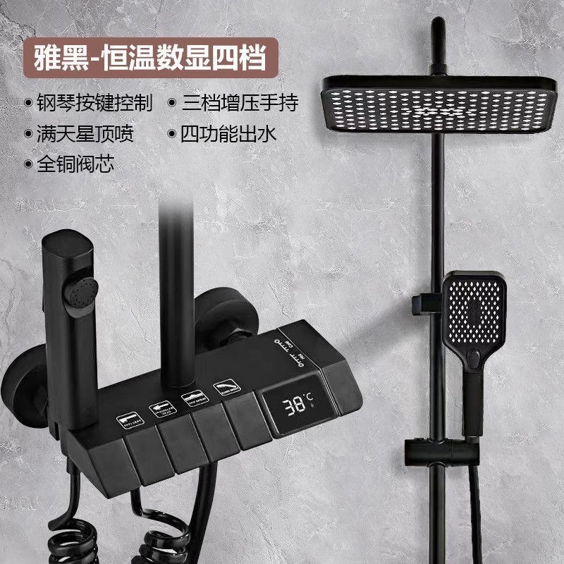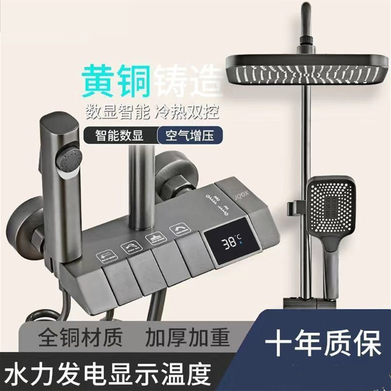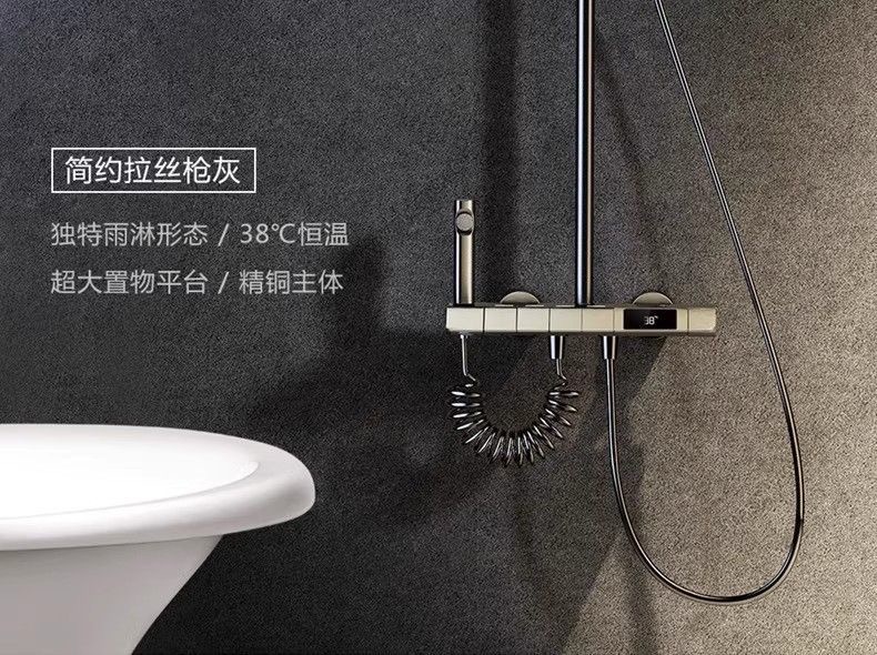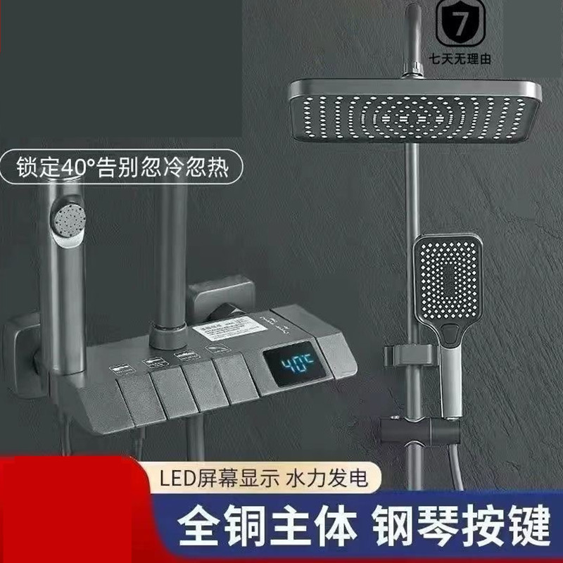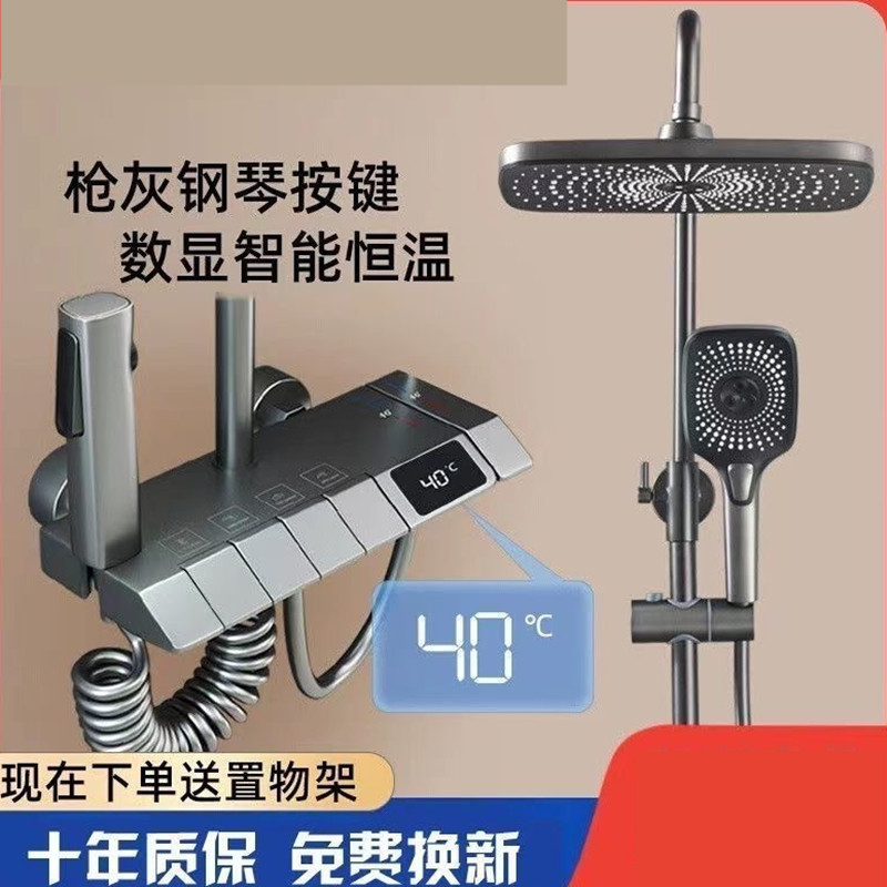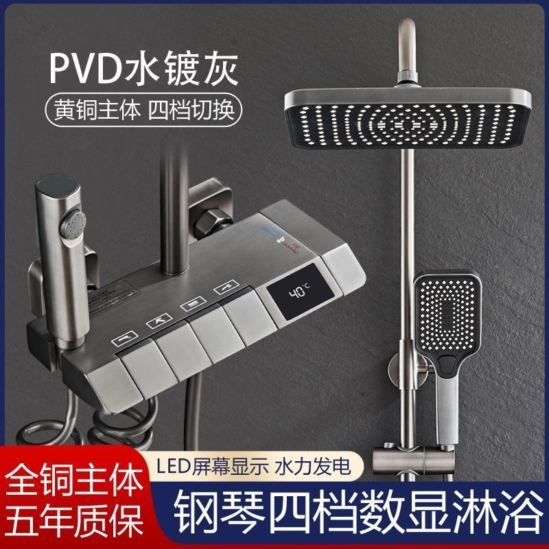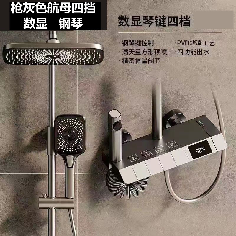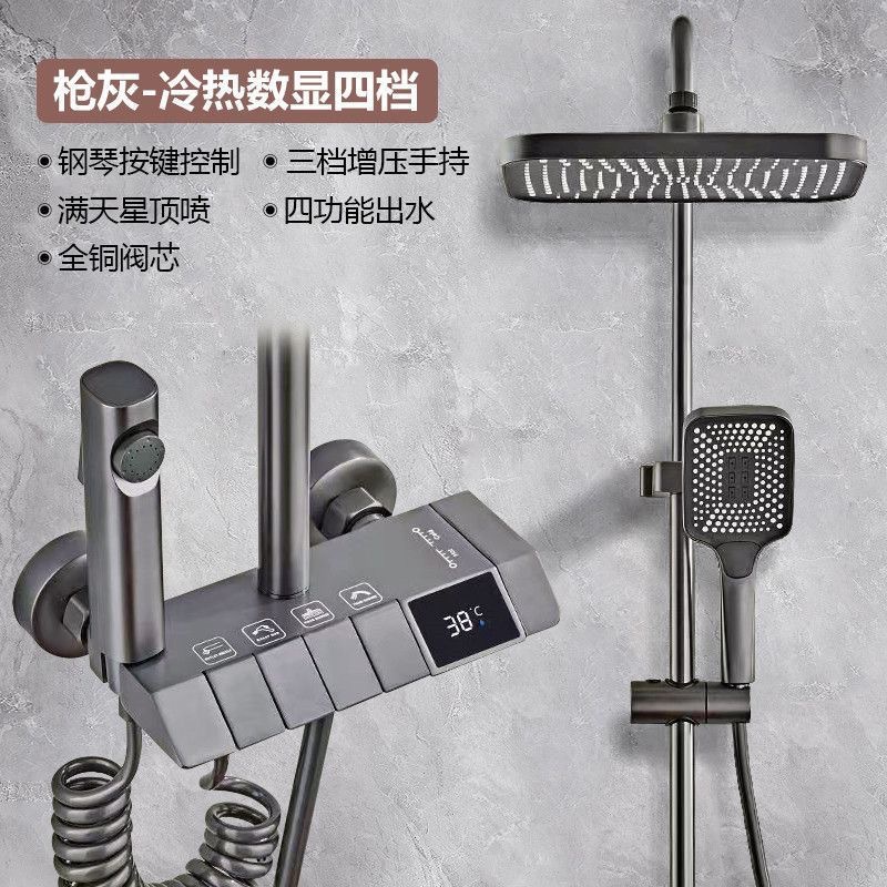 피아노 4 단계 샤워 세트 황동 과급 비 벽 총 회색 욕실 샤워 화장실 온도 조절기 샤워스토어 가기