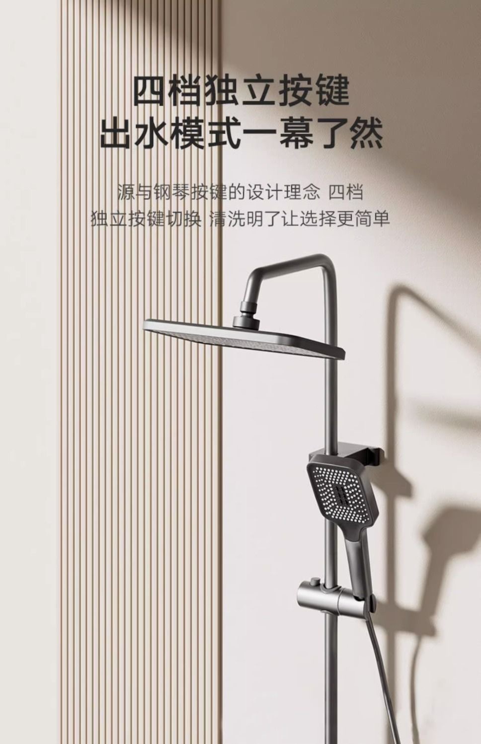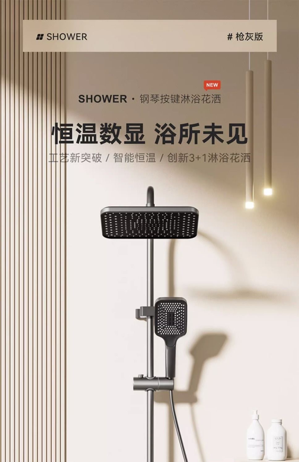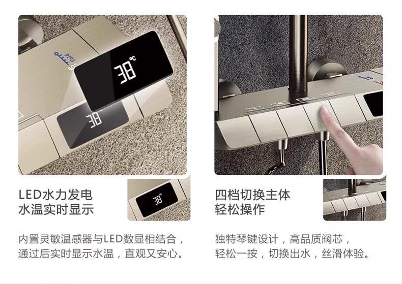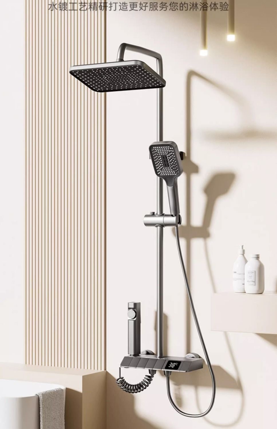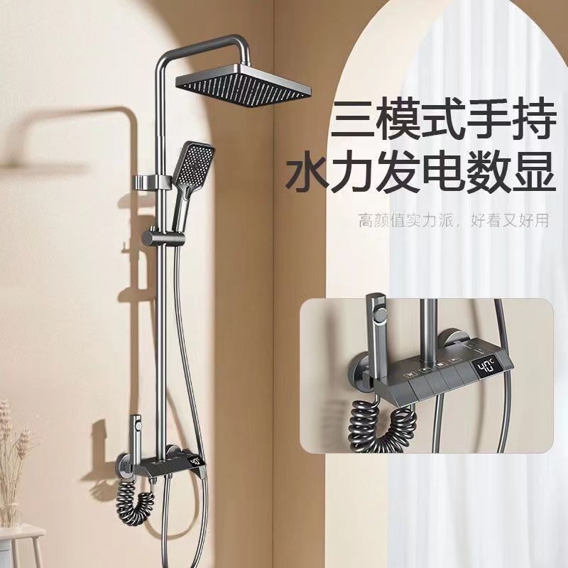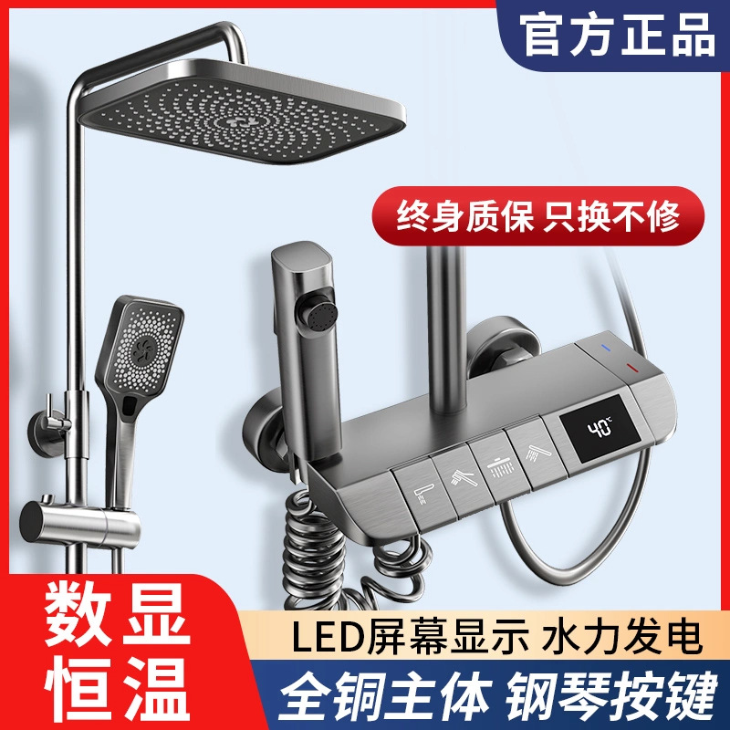 피아노 4 단계 샤워 세트 황동 과급 비 벽 총 회색 욕실 샤워 화장실 온도 조절기 샤워스토어 가기