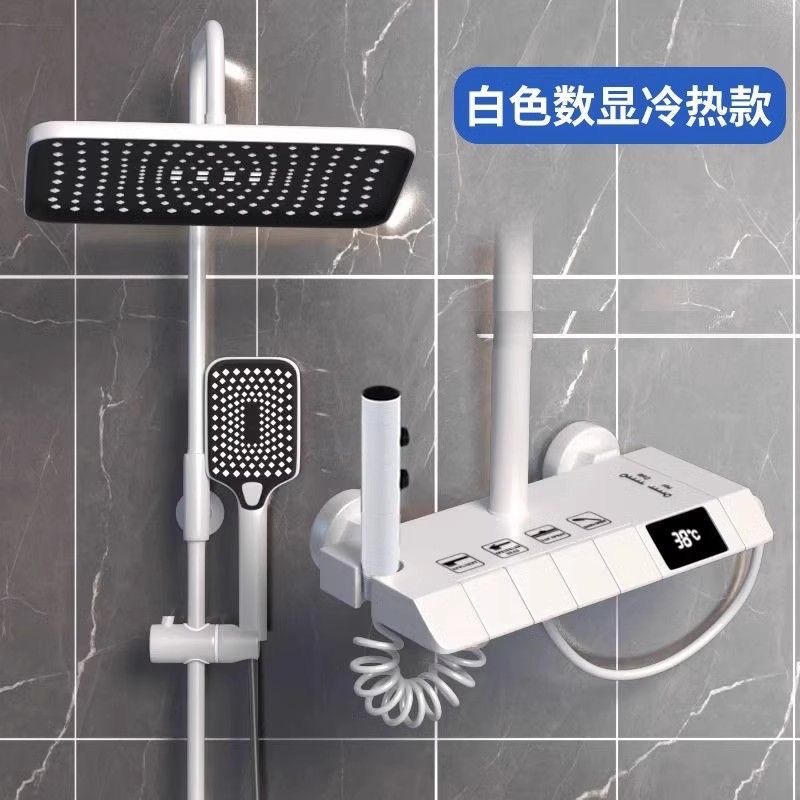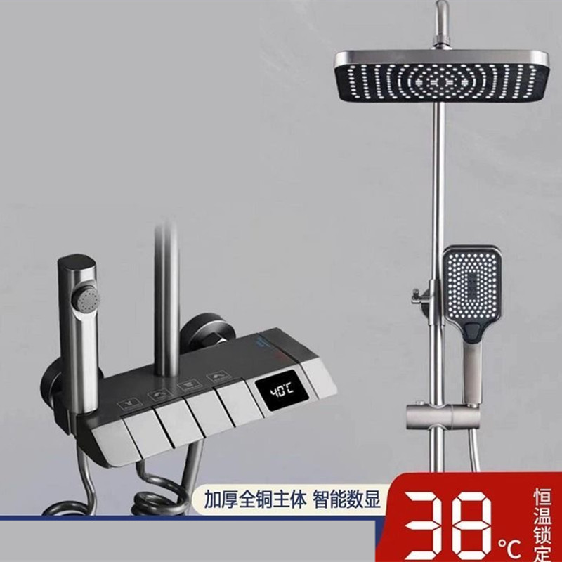 피아노 4 단계 샤워 세트 황동 과급 비 벽 총 회색 욕실 샤워 화장실 온도 조절기 샤워