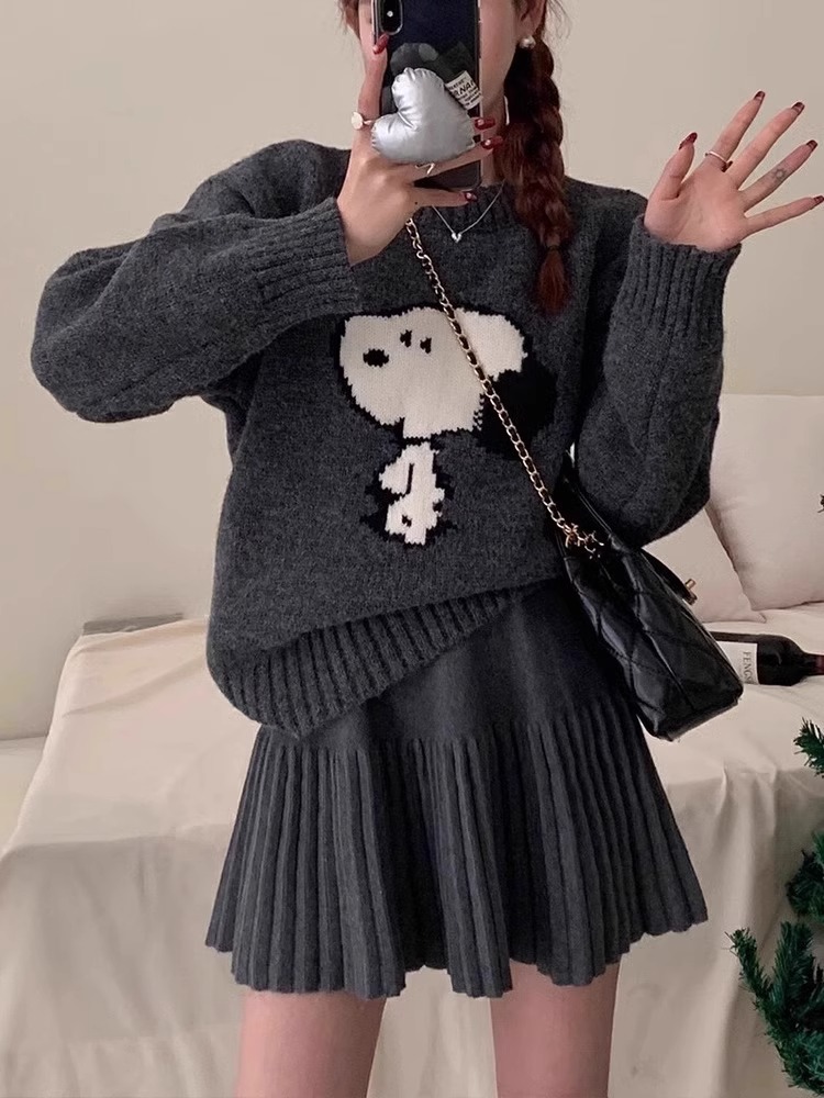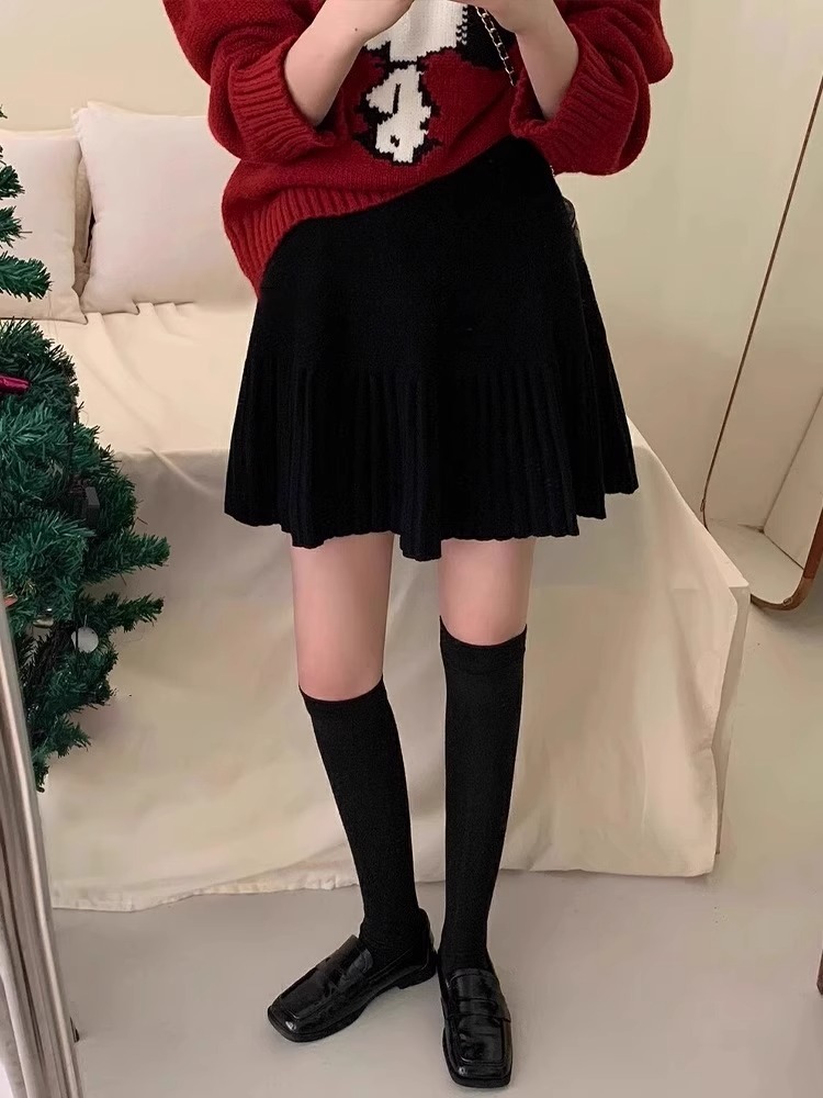 新款高级感松紧腰百搭a字百褶裙女春秋季高腰显瘦针织a字半身短裙
