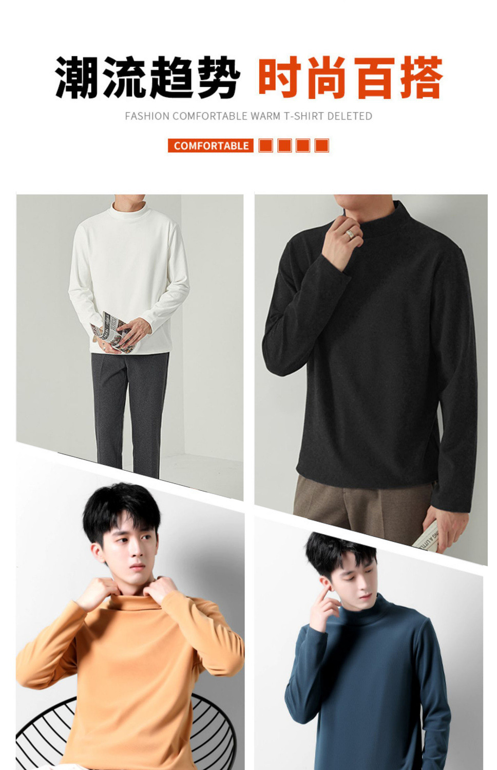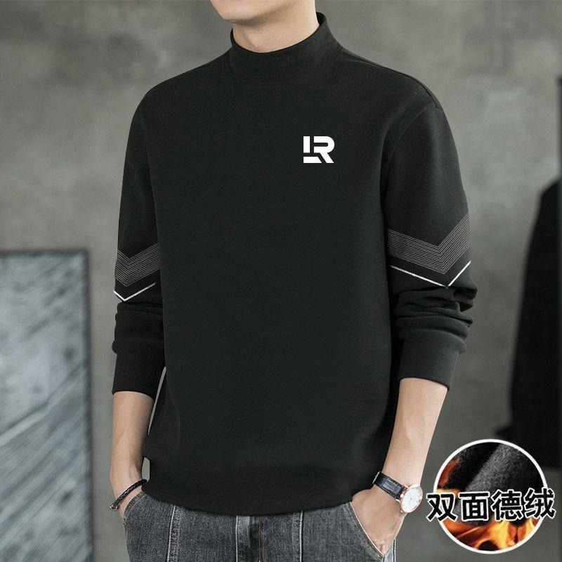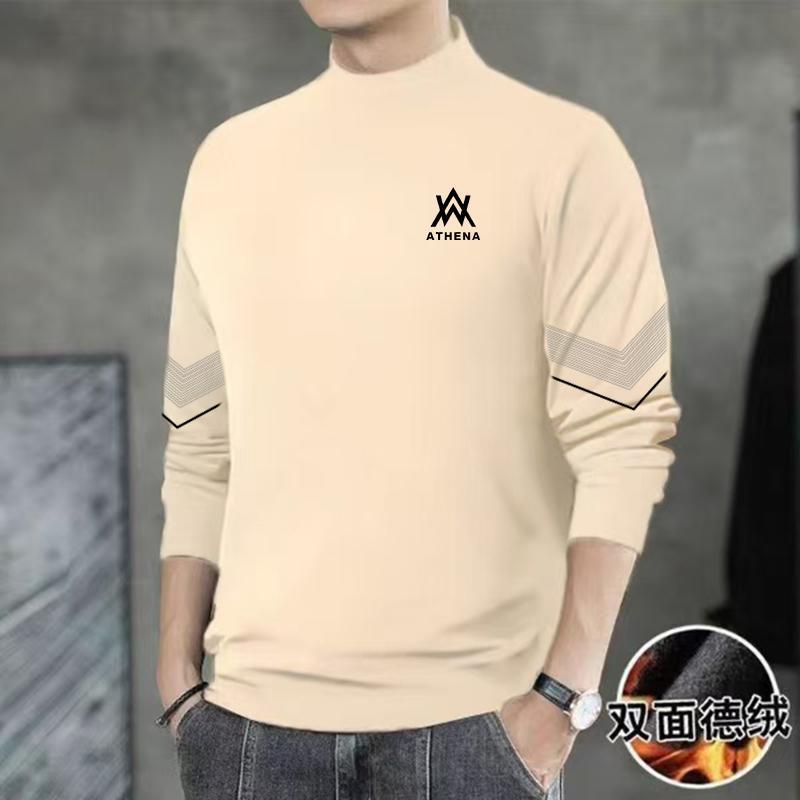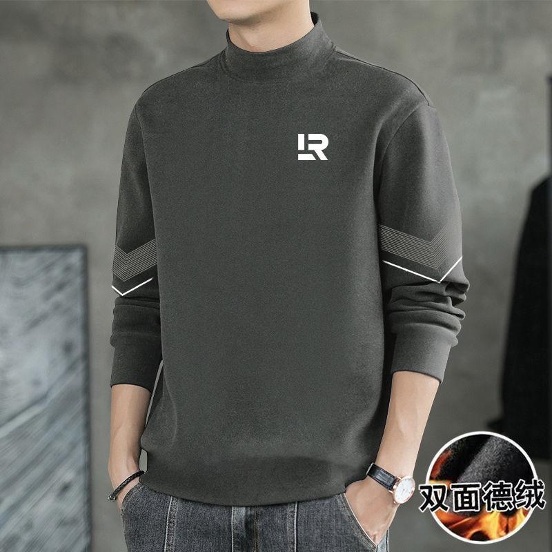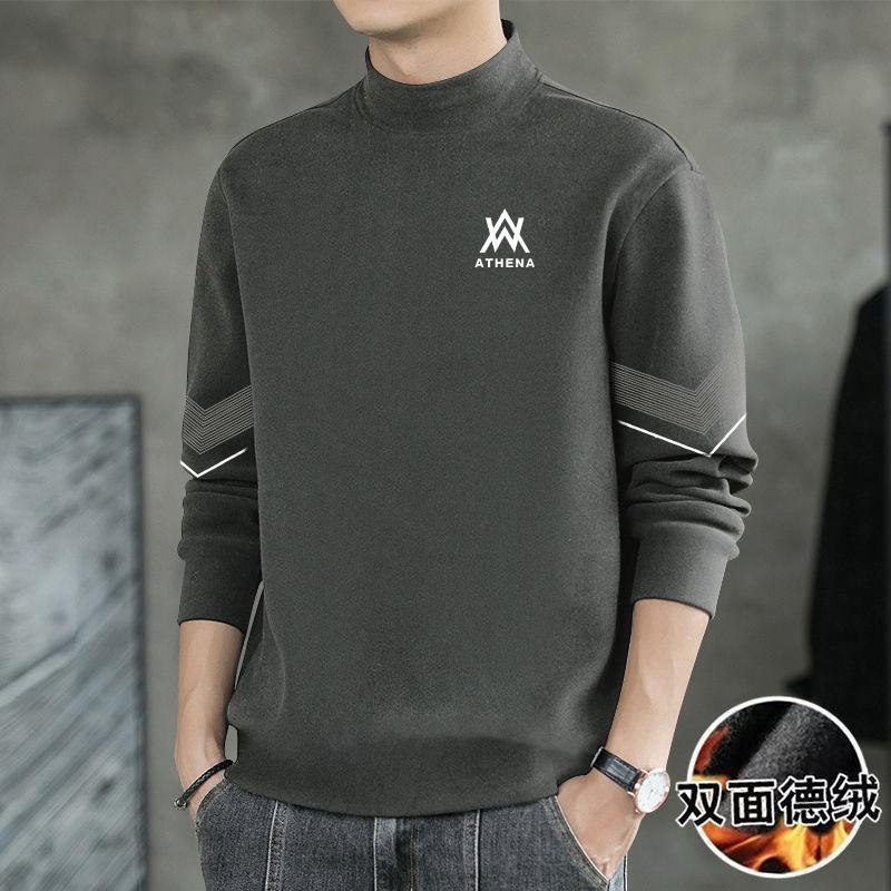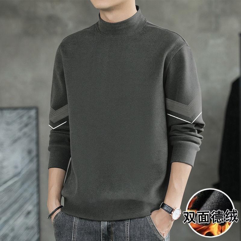 양면 벨벳베이스 셔츠 남자의 가을과 겨울 양면 벨벳 세미 하이 칼라 열 속옷 티셔츠 내부 긴 소매 티셔츠 탑스토어 가기