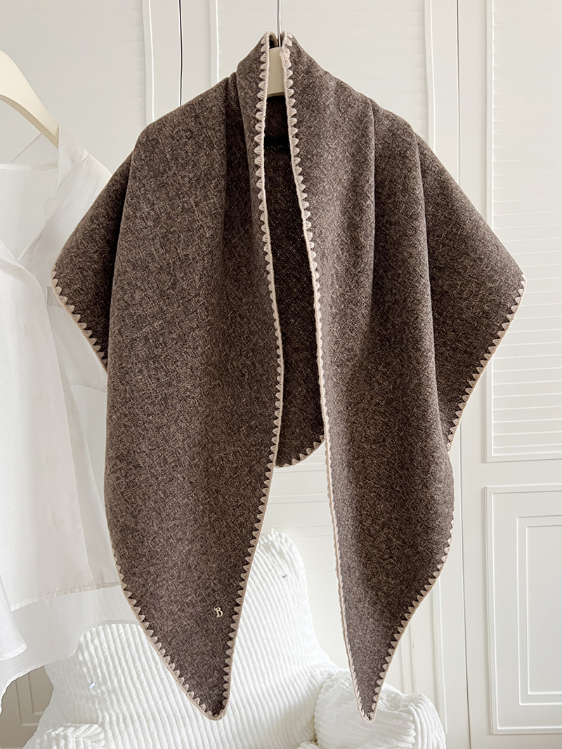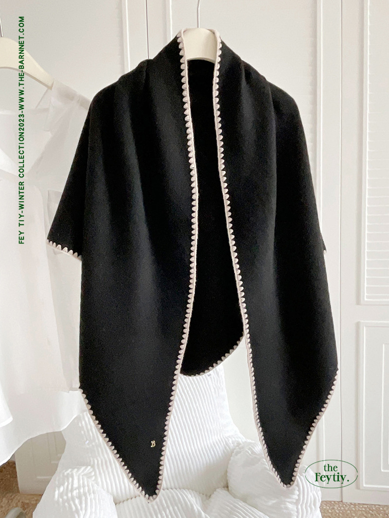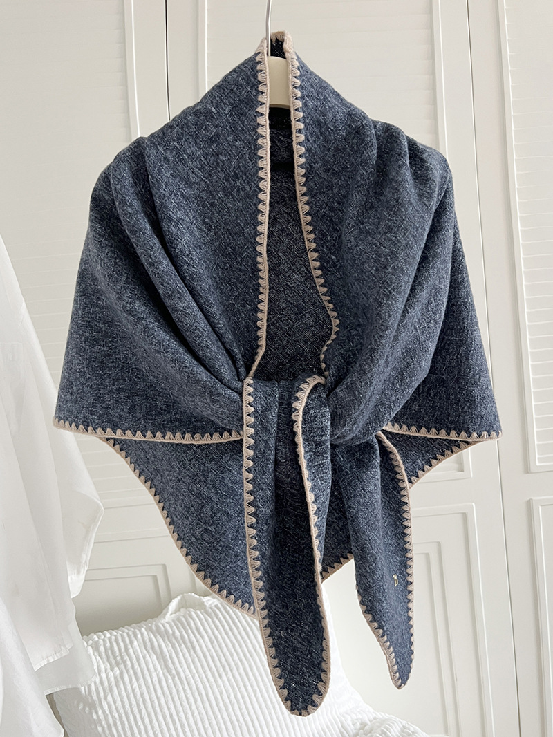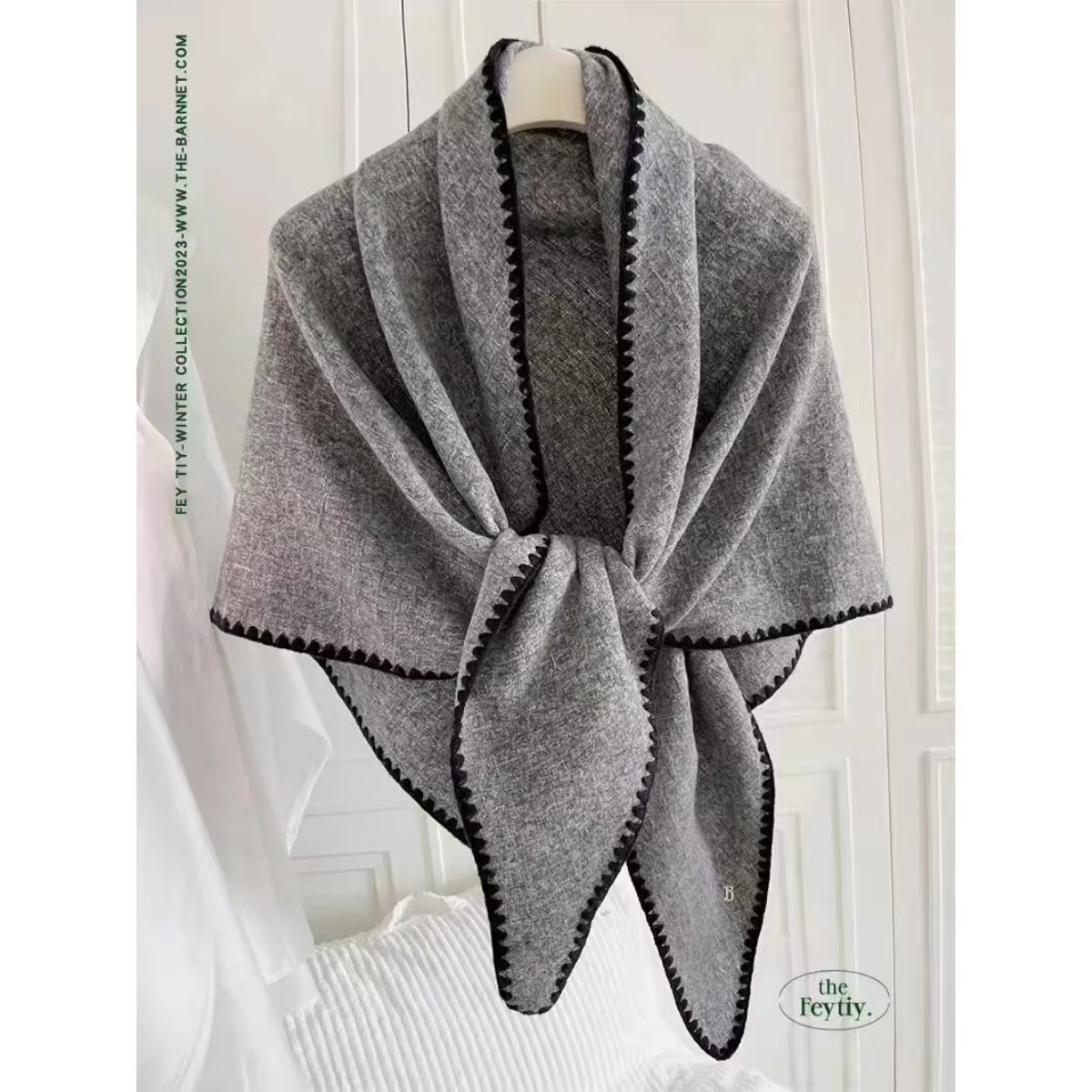 고급스러운 분위기의 작은 향기 에어컨 룸 오피스 보온 삼각 스카프 단색 니트 외투 숄 블랙 한국 스타일