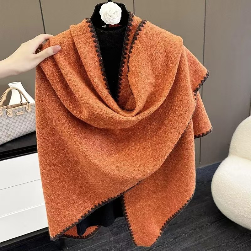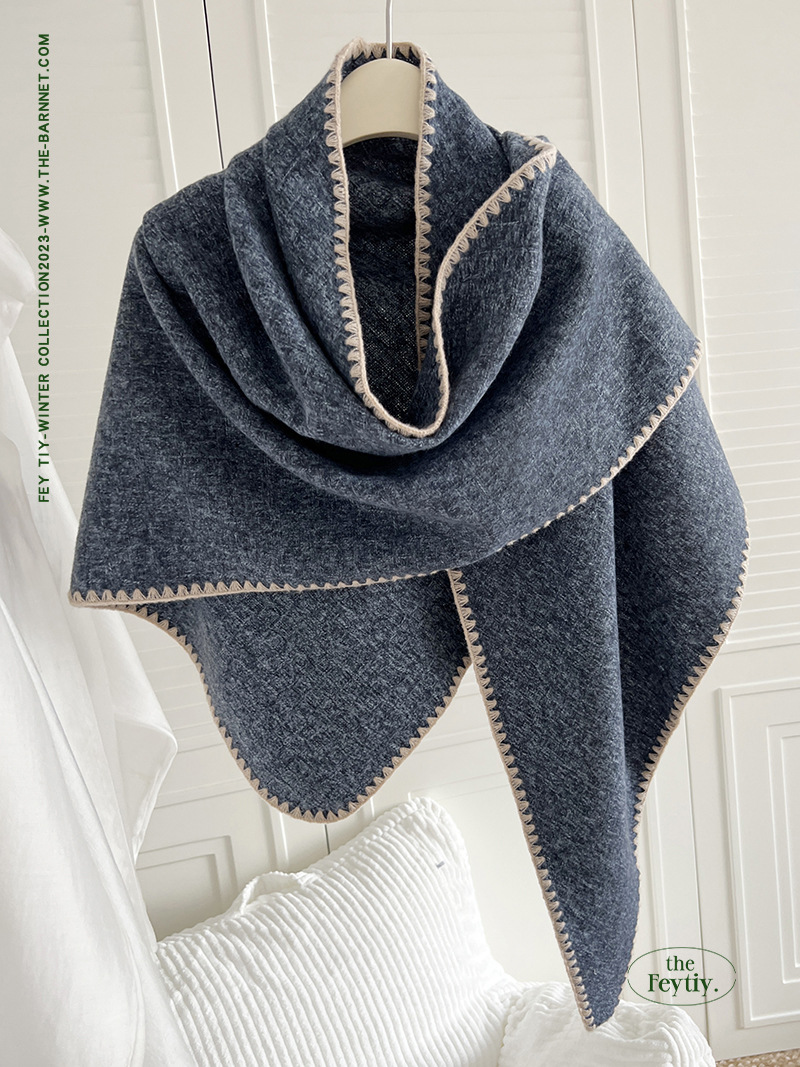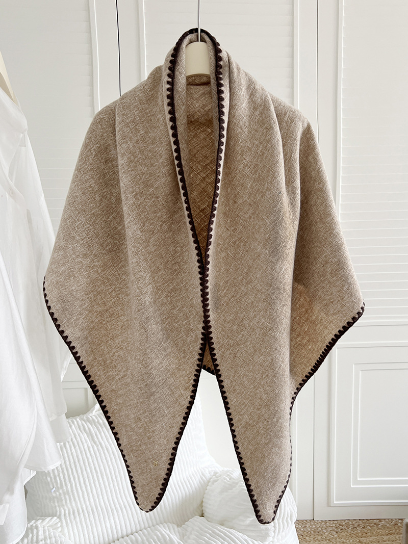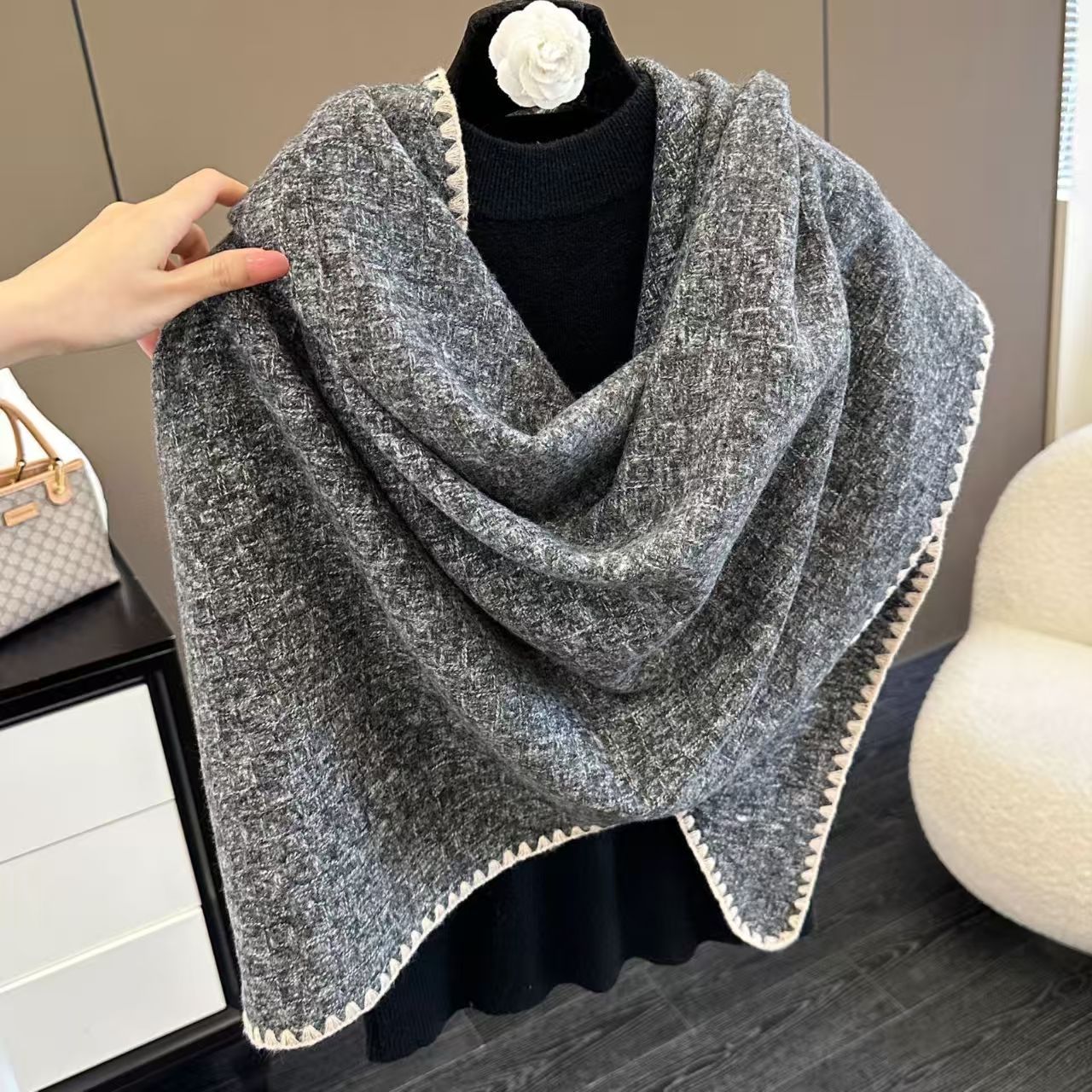 고급스러운 분위기의 작은 향기 에어컨 룸 오피스 보온 삼각 스카프 단색 니트 외투 숄 블랙 한국 스타일