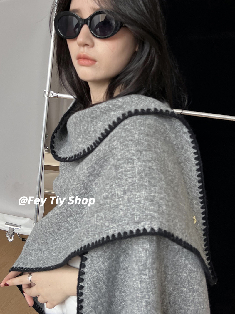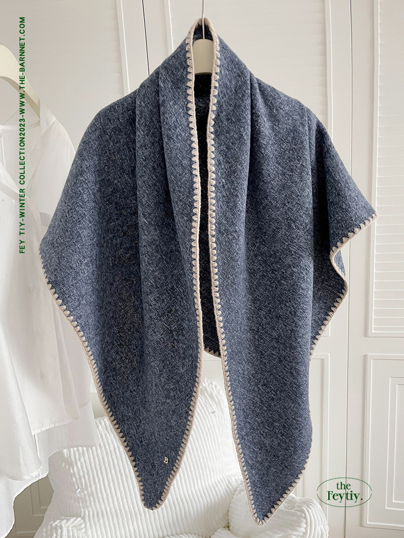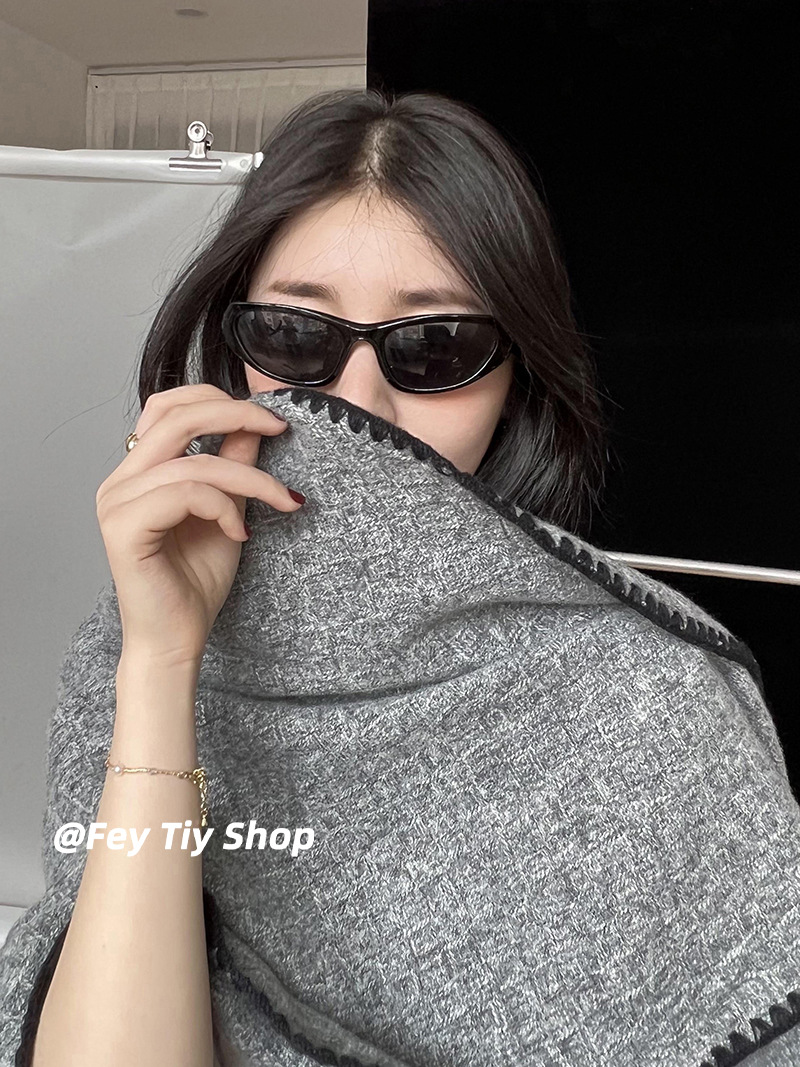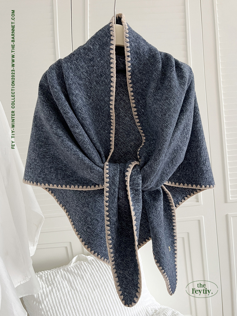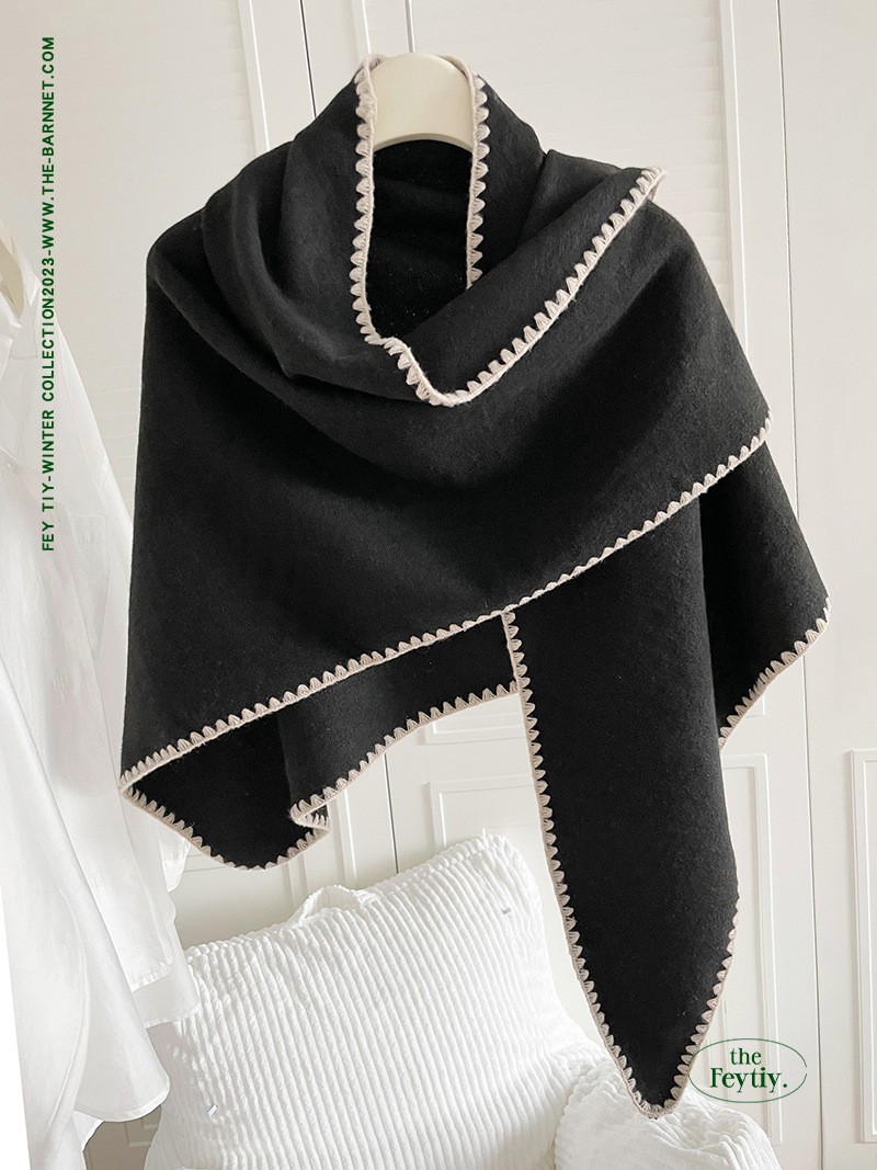 고급스러운 분위기의 작은 향기 에어컨 룸 오피스 보온 삼각 스카프 단색 니트 외투 숄 블랙 한국 스타일스토어 가기