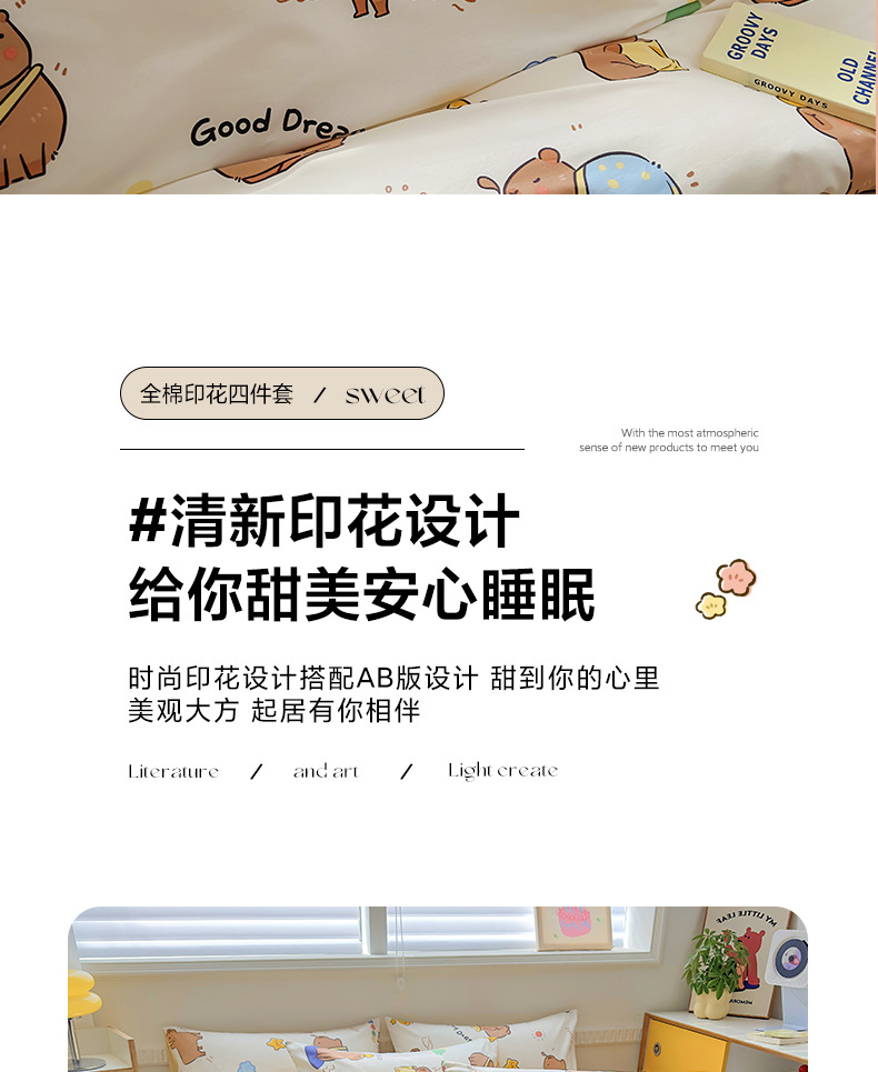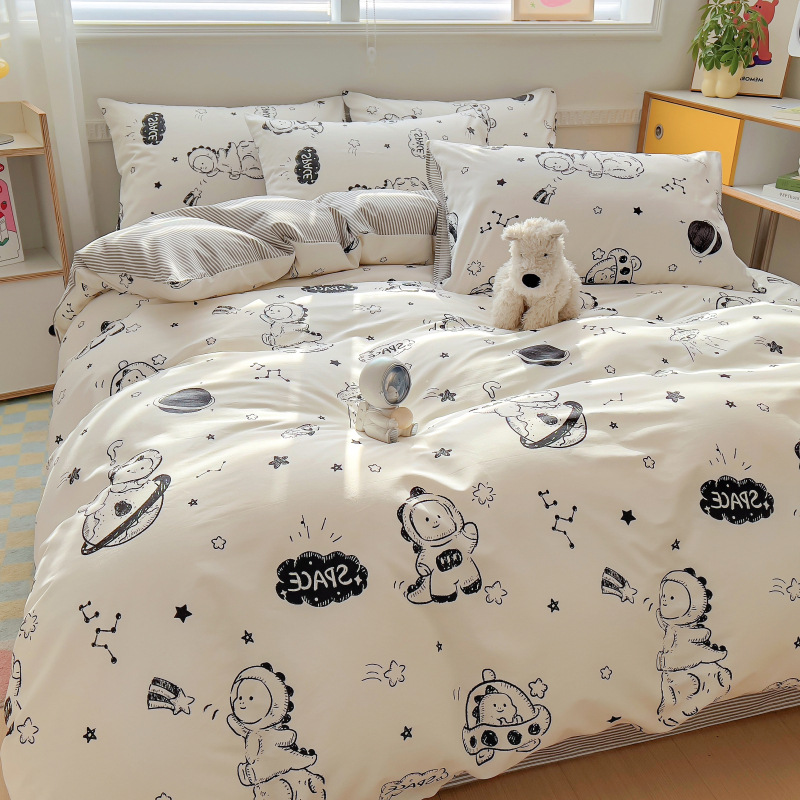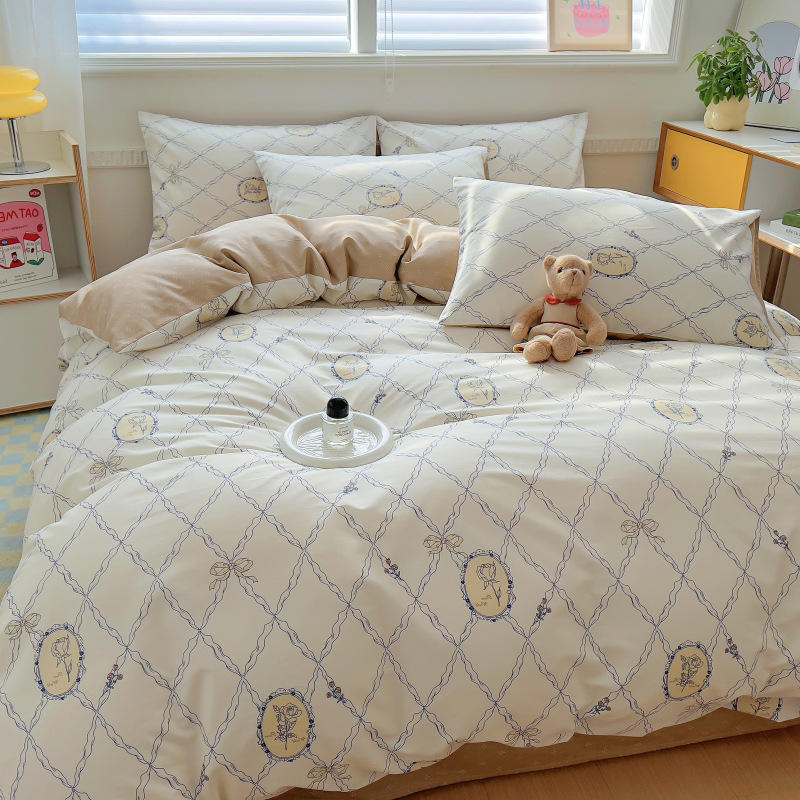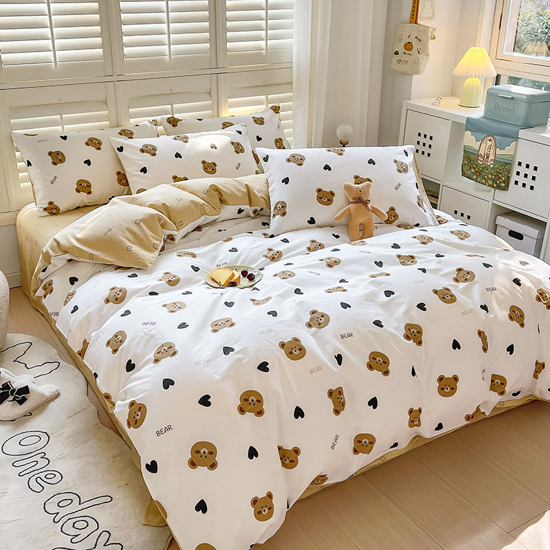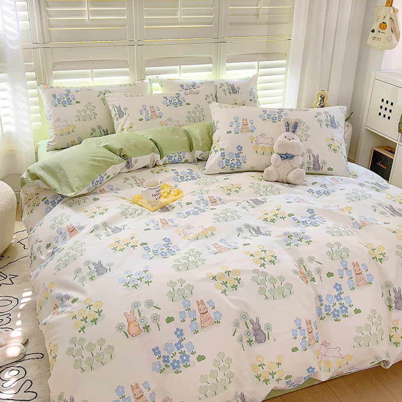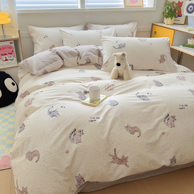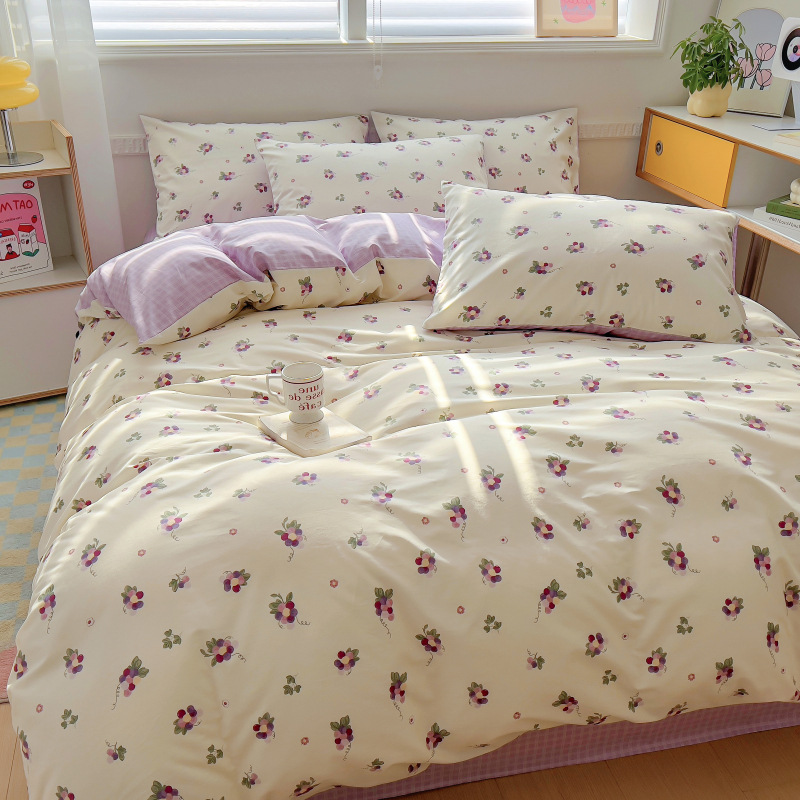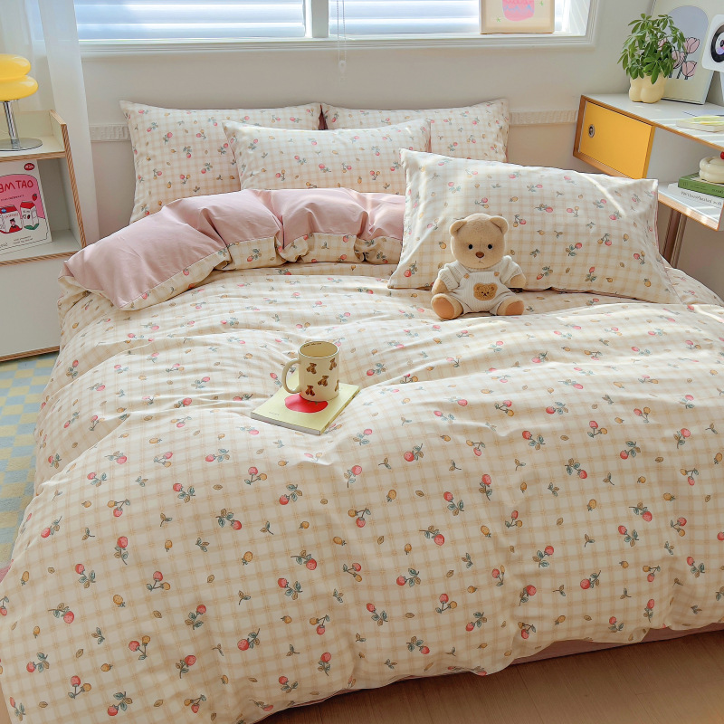 100 면 4 피스 인쇄 작은 신선한 싱글 더블 학생 기숙사 면 이불 커버 침대 시트 3 피스 세트스토어 가기