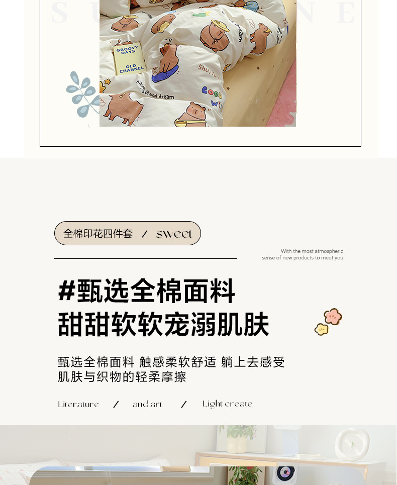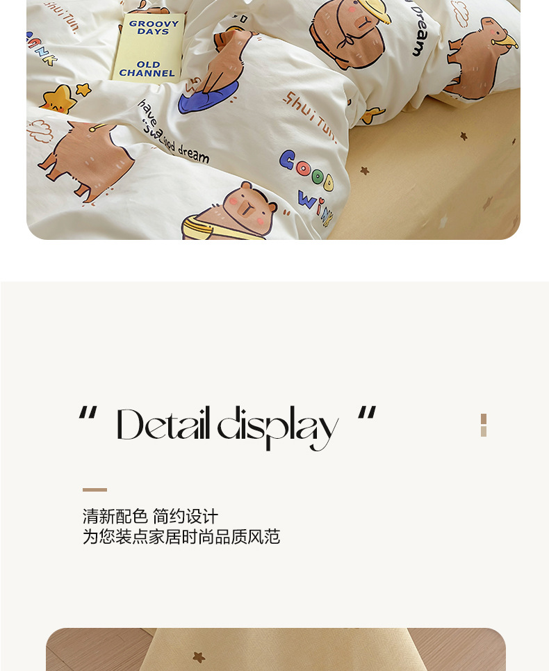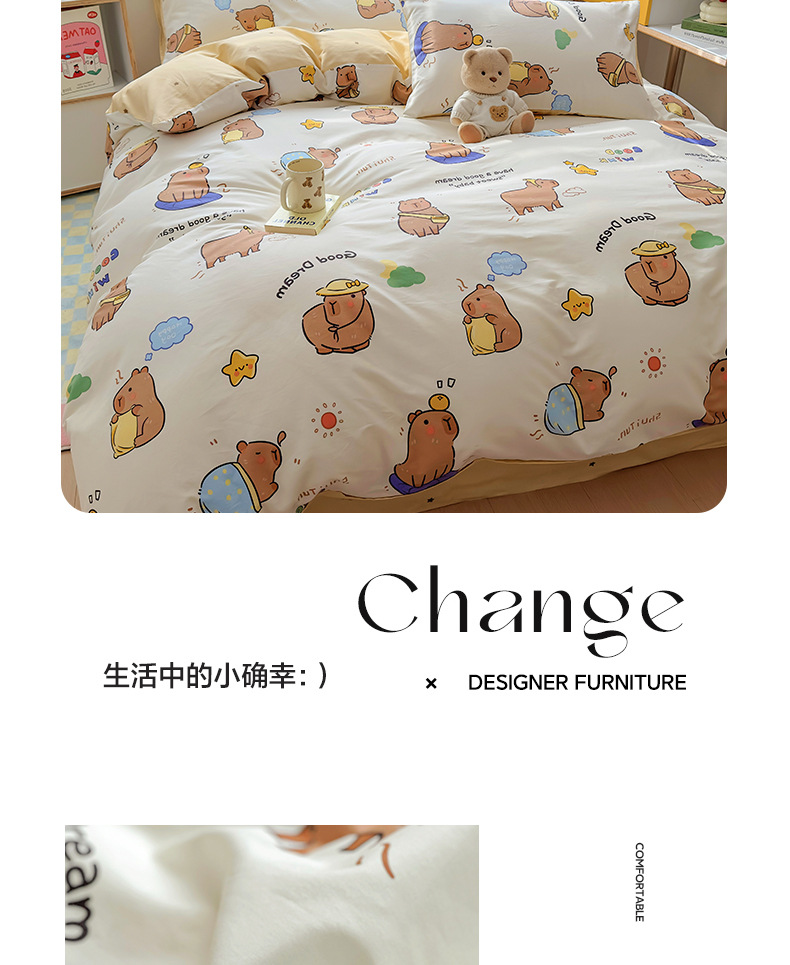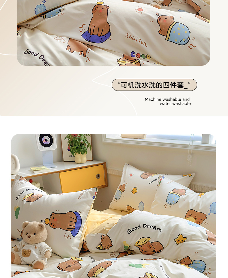 • 1.5m 침대 시트 4종 세트 [이불커버 200*230+시트 230*250+베갯잇 48*74cm 한쌍]