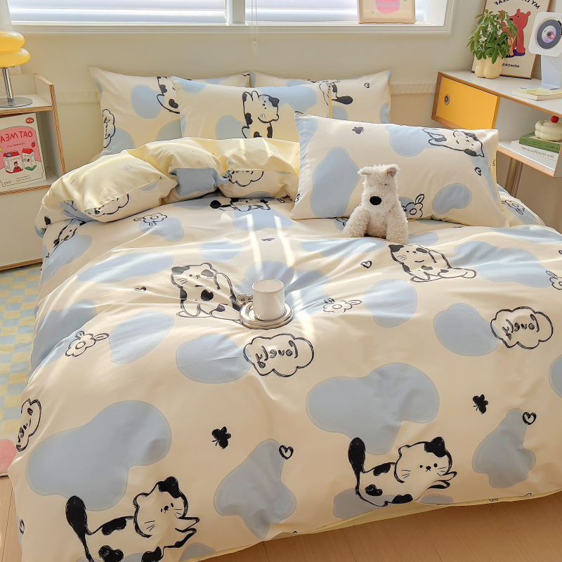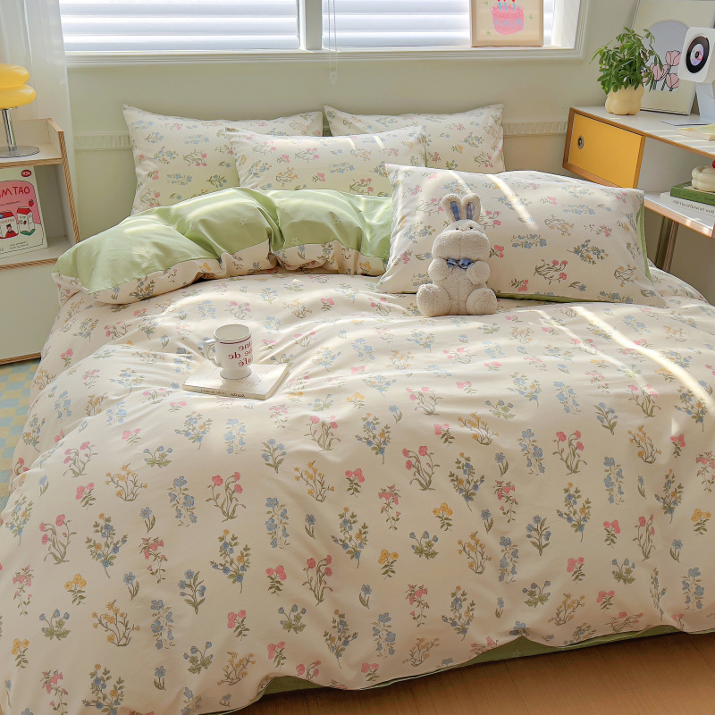 100 면 4 피스 인쇄 작은 신선한 싱글 더블 학생 기숙사 면 이불 커버 침대 시트 3 피스 세트