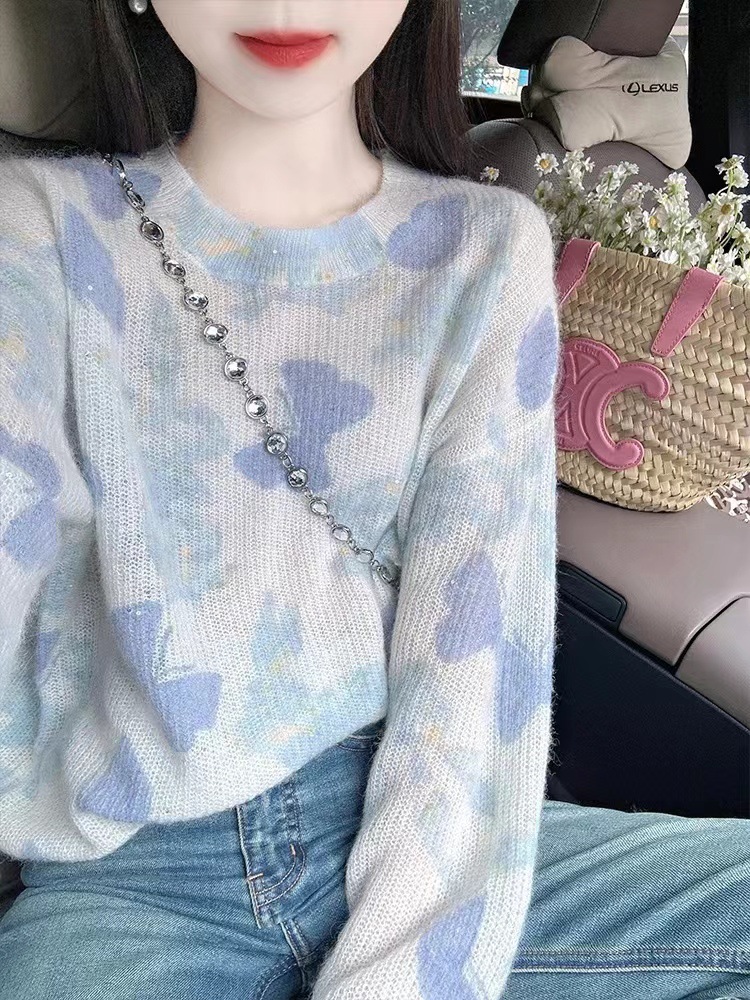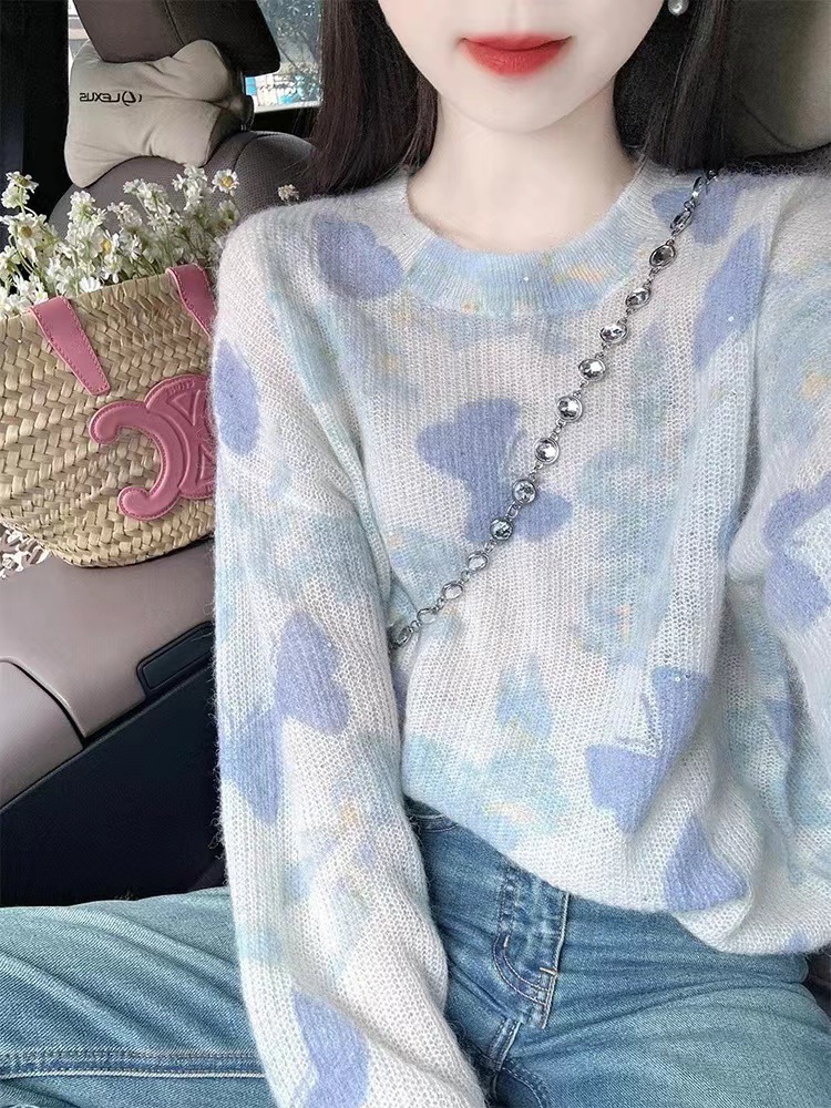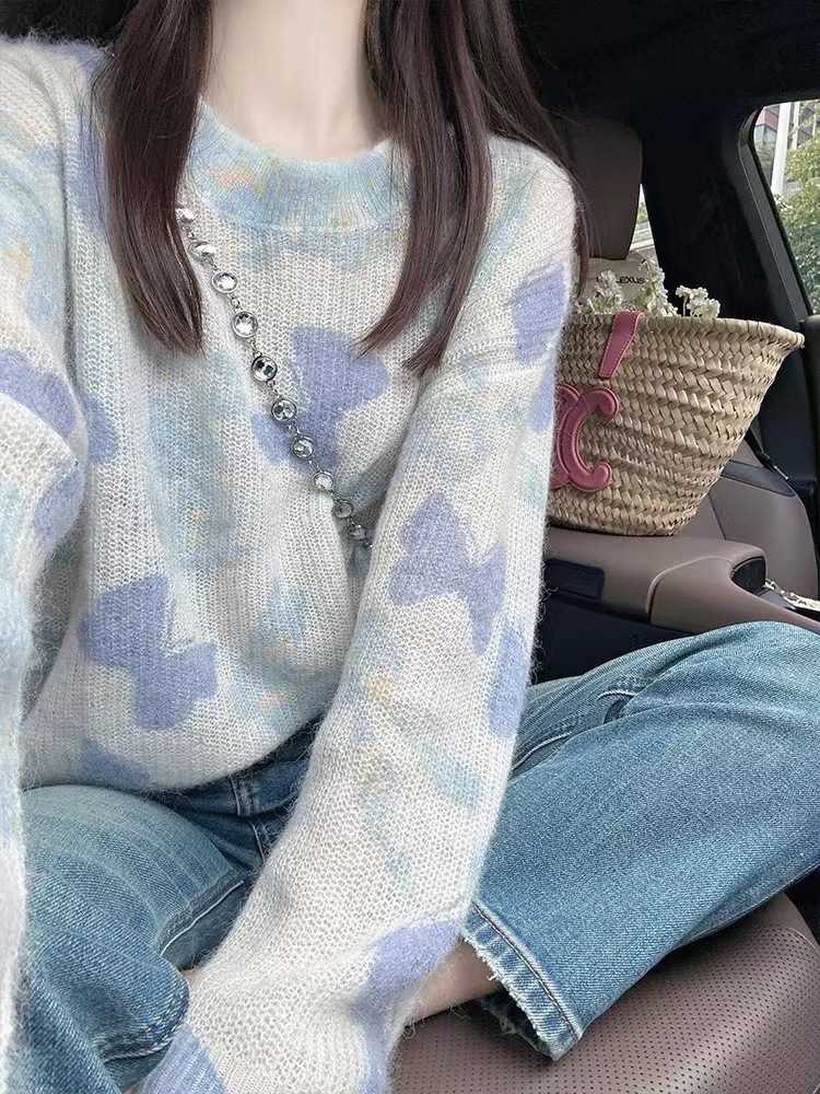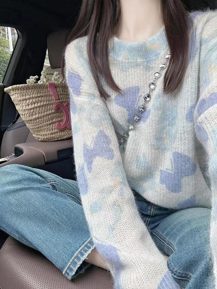 法式减龄气质圆领长袖毛衣女新款宽松高级感甜美慵懒百搭针织上衣