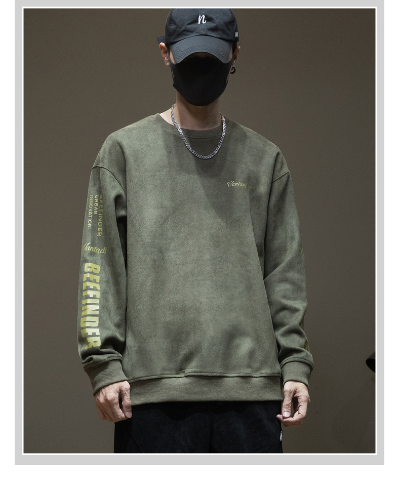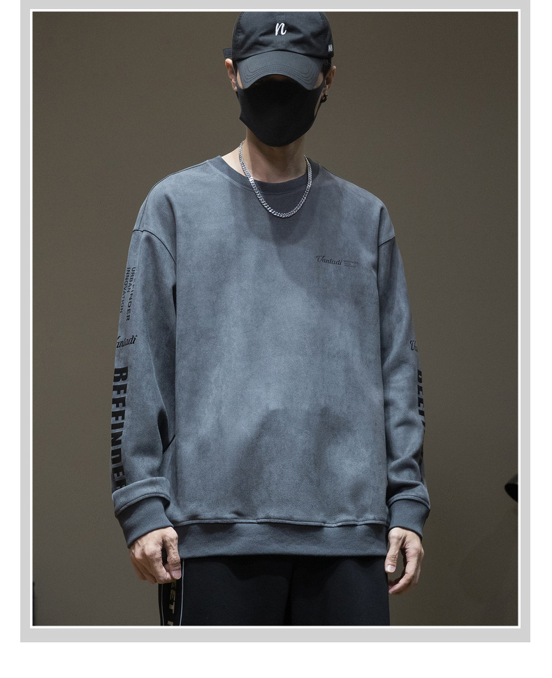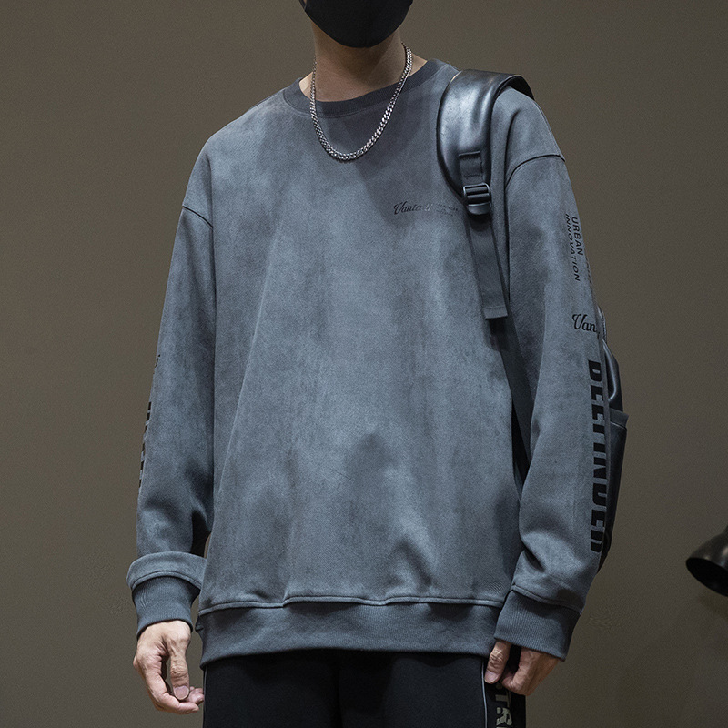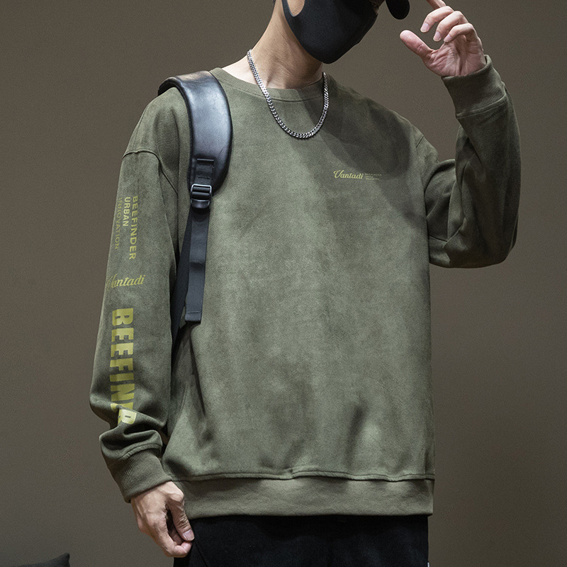 스웨이드 스웨터 미국식 긴팔 남성용 트렌디 브랜드 인베이스 셔츠 봄과 가을 최고 남성 라운드 넥 인쇄 트렌디
