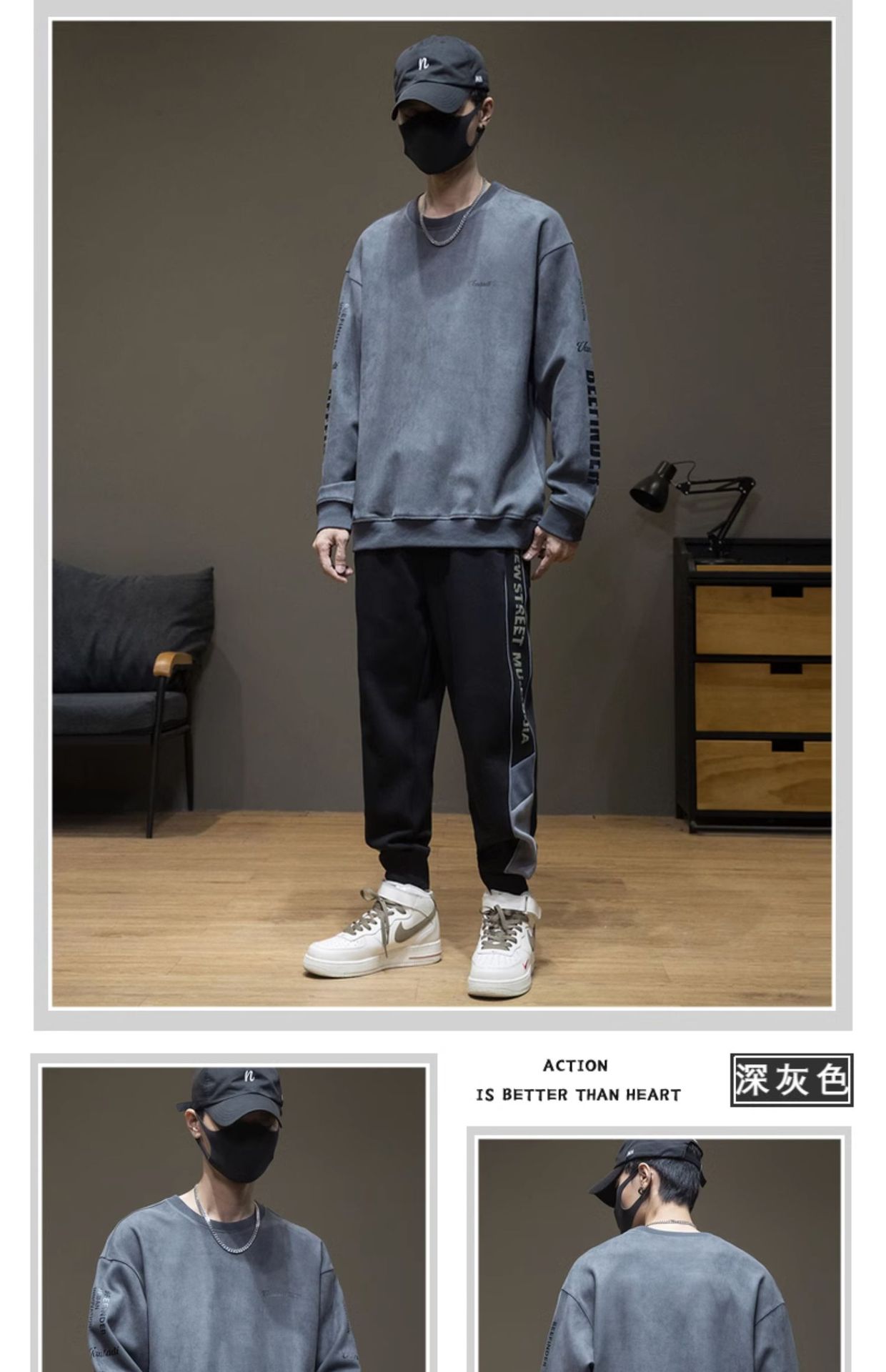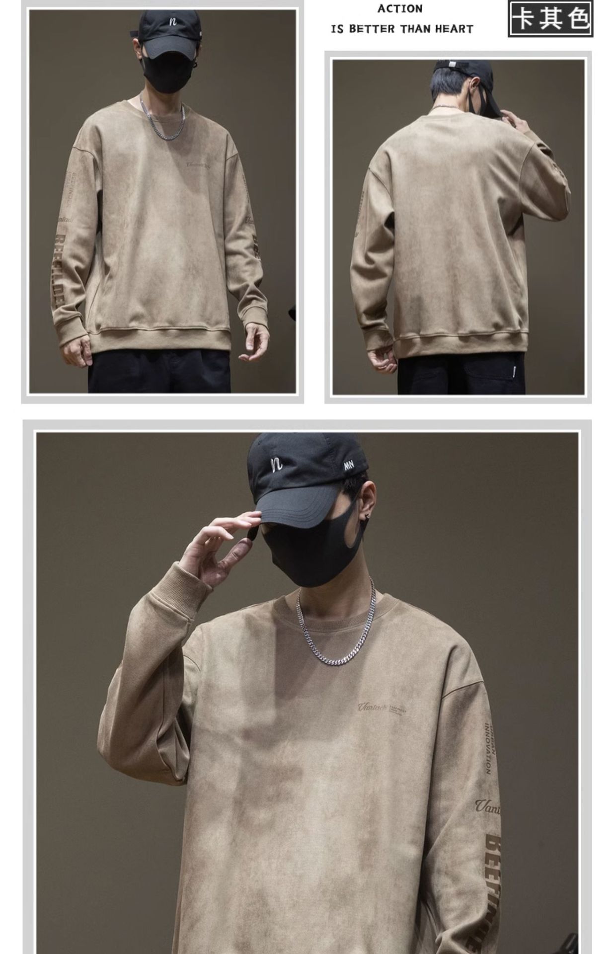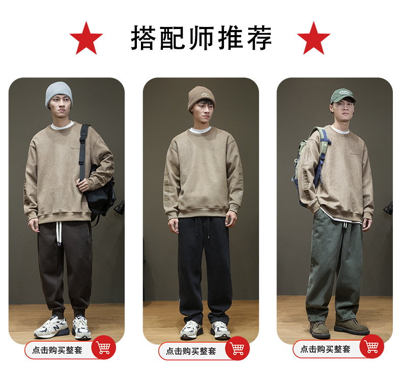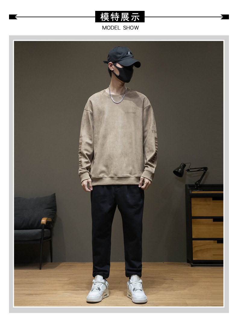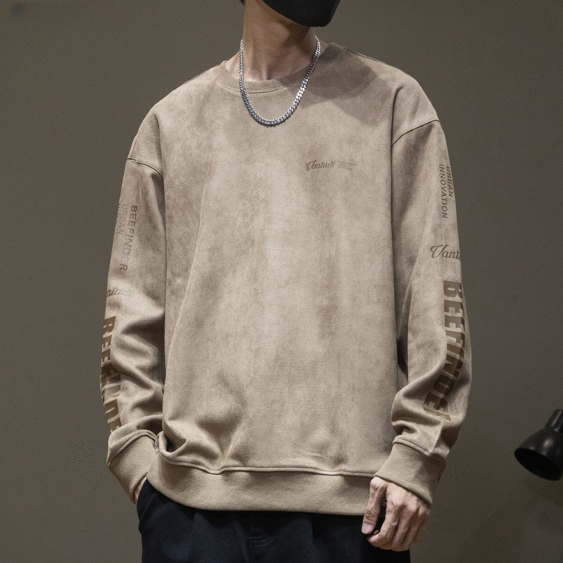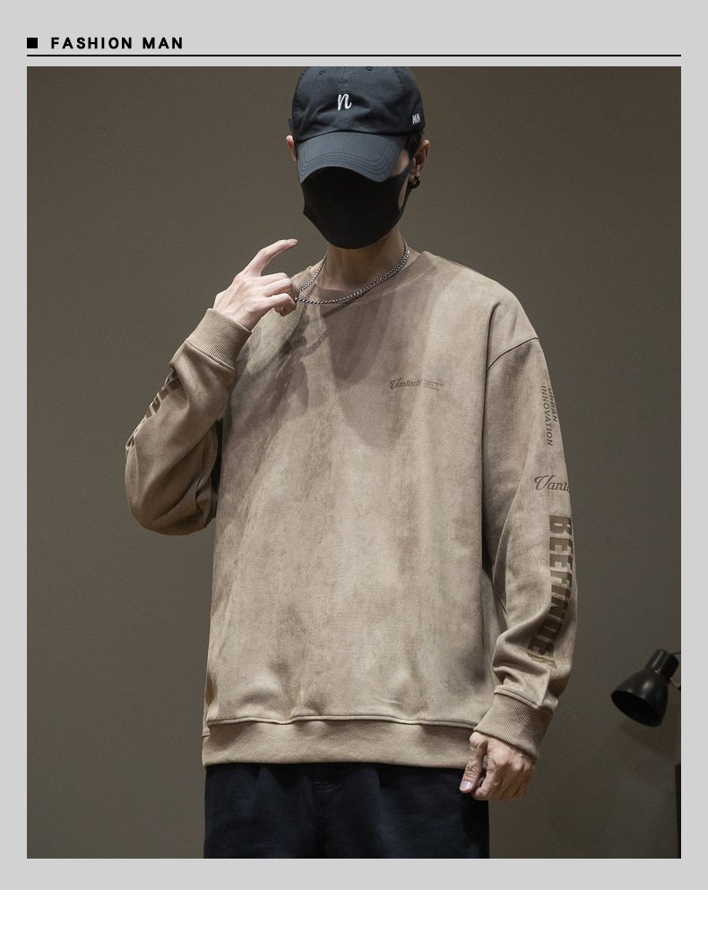 스웨이드 스웨터 미국식 긴팔 남성용 트렌디 브랜드 인베이스 셔츠 봄과 가을 최고 남성 라운드 넥 인쇄 트렌디스토어 가기