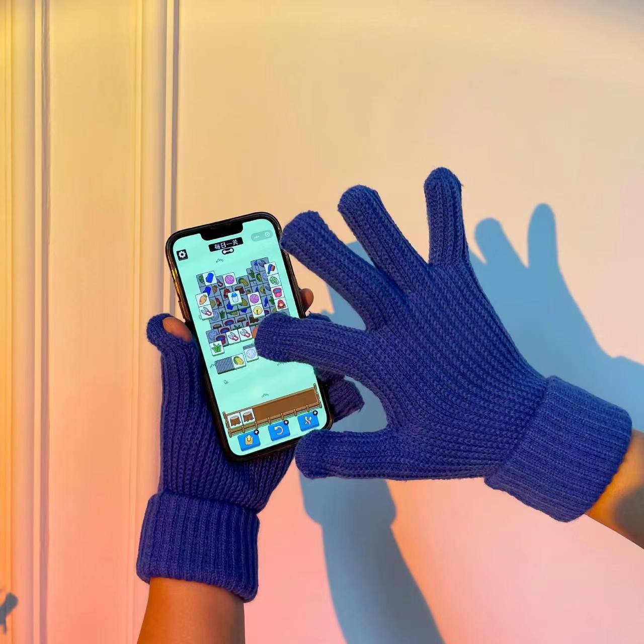 남녀공용 니트 터치스크린 장갑, 따뜻한 손가락 없는 학생용 가을 겨울 터치스크린 장갑, 성인용 방한 터치스크린 장갑스토어 가기