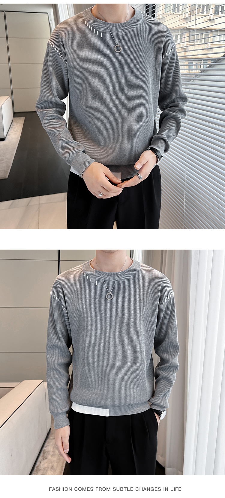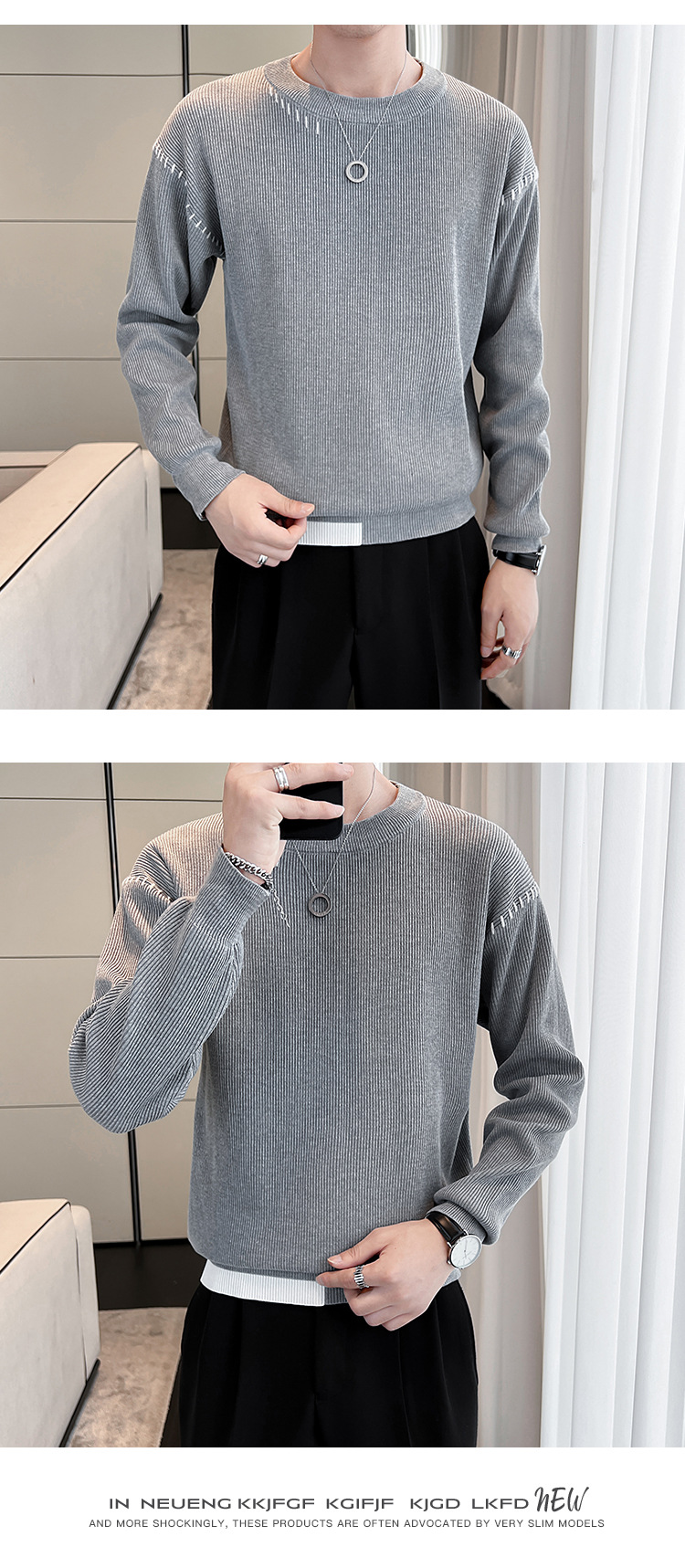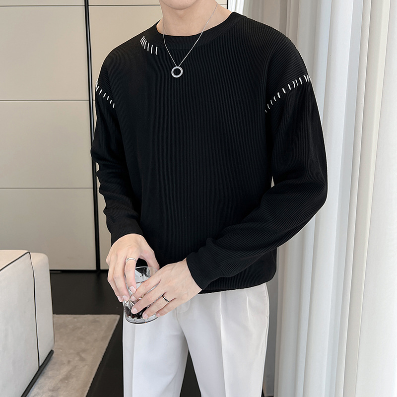 디자인 콘트라스트 컬러 크루 넥 스웨터 남자 가을 겨울 한국 스타일 유행 캐주얼 느슨한 따뜻한 풀오버 베이스 스웨터 탑스토어 가기