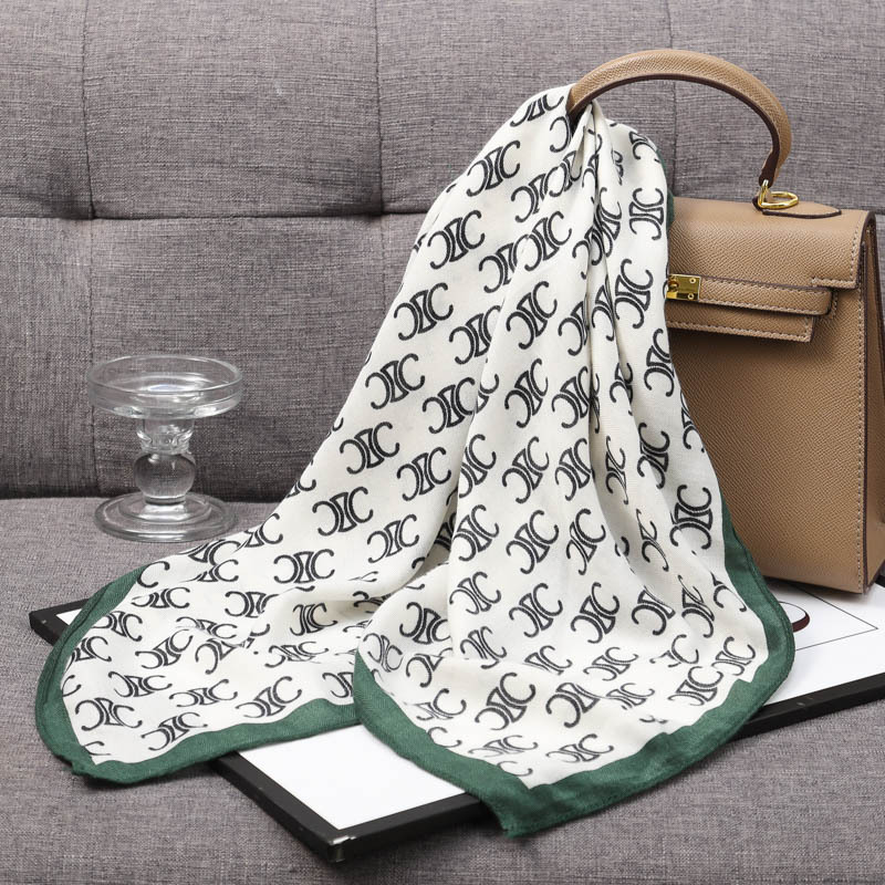 • 면과 린넨 사각 스카프-MC 그린 엣지