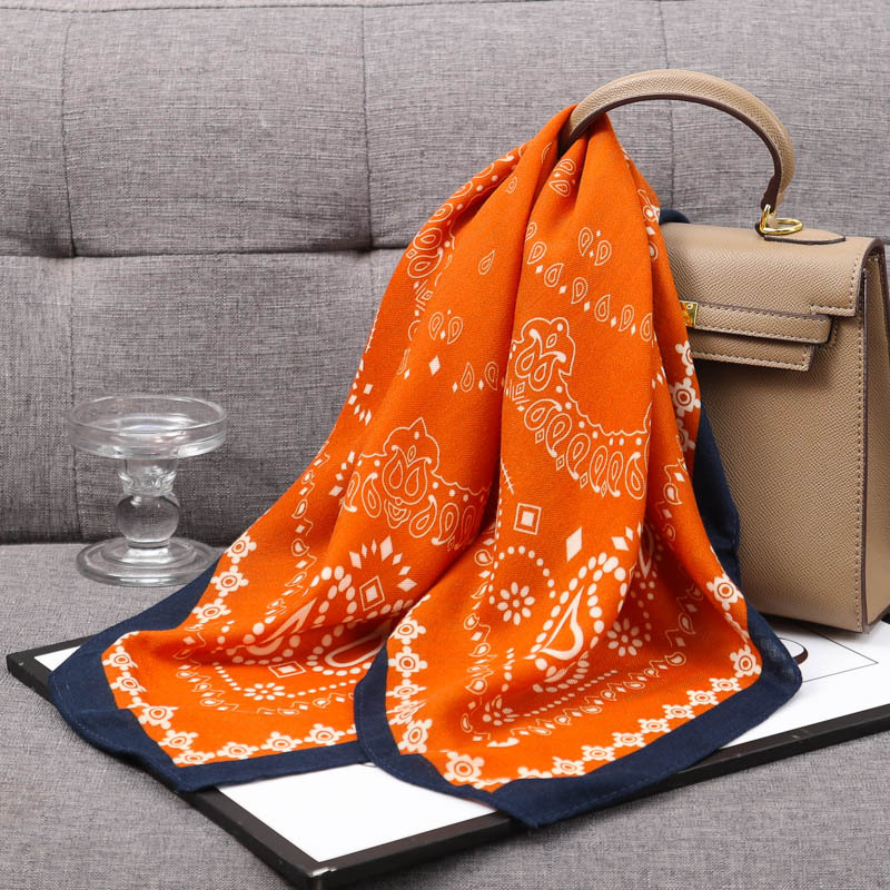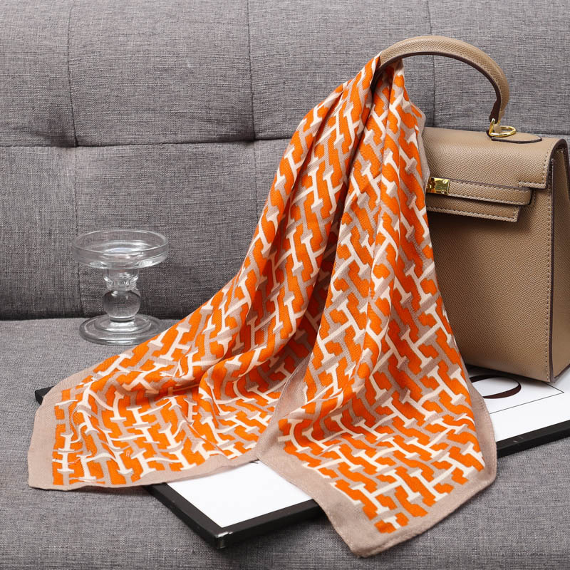 • 면과 린넨 사각 스카프-오렌지 스몰 H