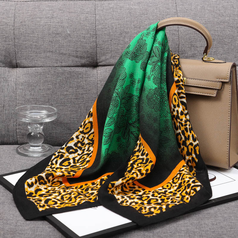 • 면과 린넨 스퀘어 스카프 - 그린 레오파드 프린트