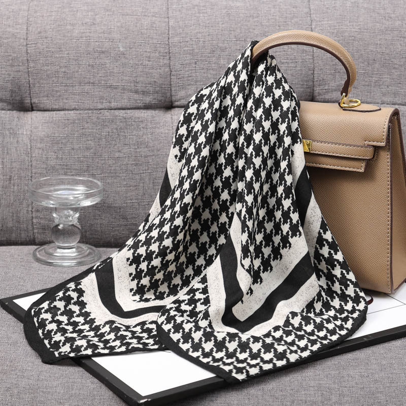 • 면과 린넨 스퀘어 스카프 - 블랙 하운드투스