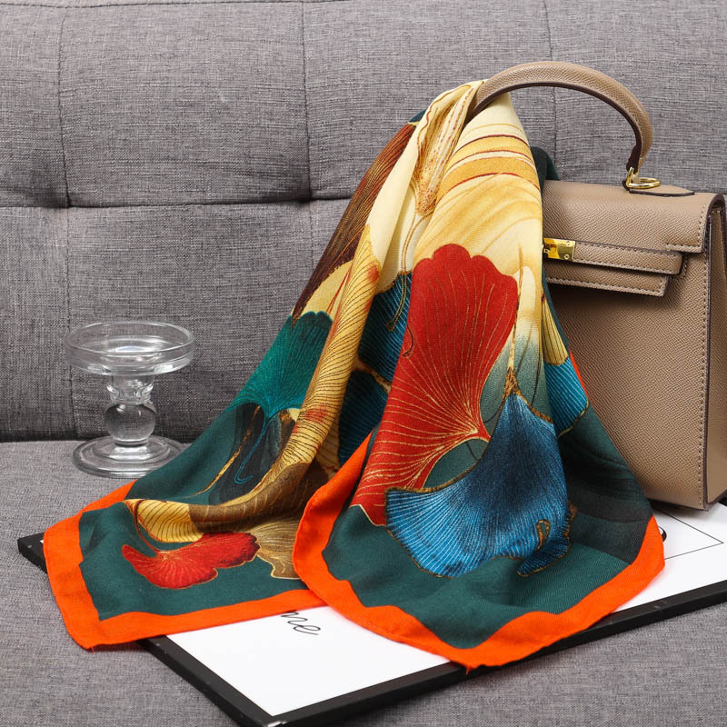 • 면과 린넨 사각 스카프-오렌지 단풍잎