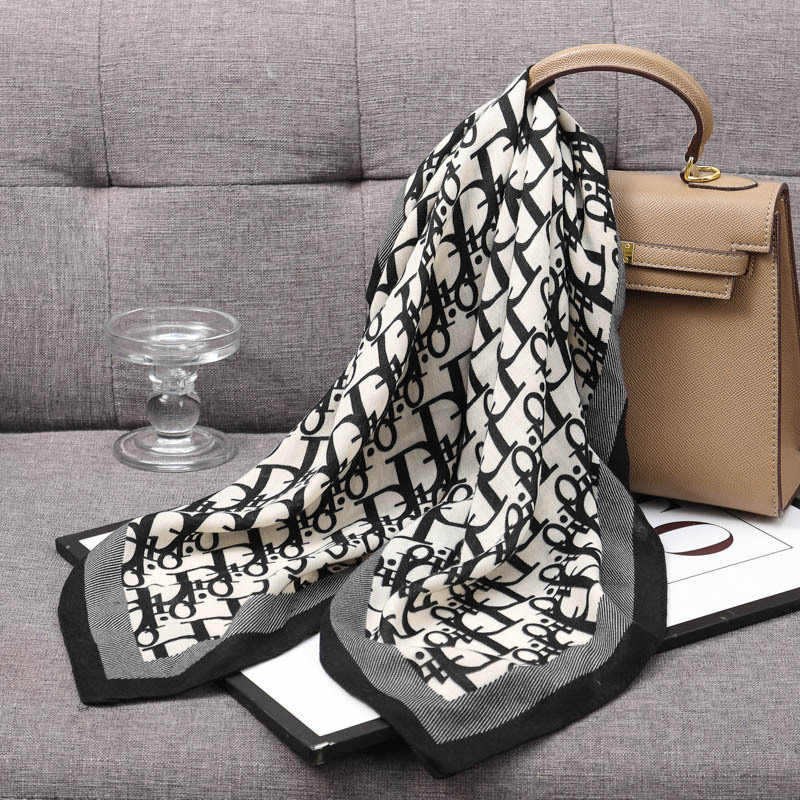 • 면과 린넨 사각 스카프-D 문자 블랙